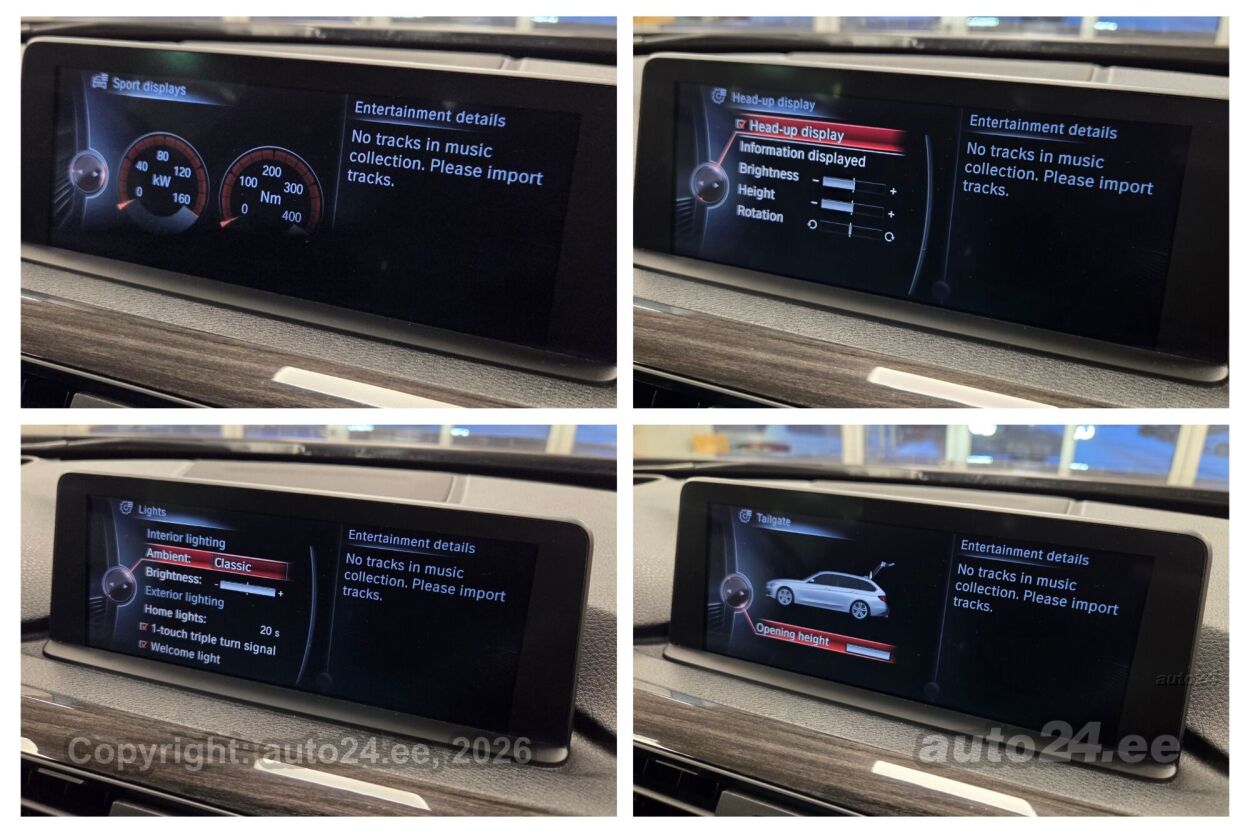 start-stopp süsteem, 12v pistikupesad, katusereelingud, jahutusega kindalaegas, välistemperatuuri näidik, tagaklaasi soojendus, pagasikate, salongi ja pakiruumi eraldusvõrk, kaubakinnituse konksud, tagaklaasi puhasti, Adaptiivsed Bi-Xenon lähi- ja kaugtuled, High Beam Assist automaatne kaugtulede ümberlülitus, Võtmeta kasutamine (Comfort Access System), Harman/Kardon Surround helisüsteem, Liiklusmärkide tuvastamise süsteem, Head Up Display, "AMBIENT" Salongivalgustus, Elektriliselt avatav ja suletav pagasiluuk(jalaviipega), Light Package - Led valgustus salongis ja uste linkidel, Rulookardinad tagaustel, Kõik hooldused teostatud margiesindustes, NB! Reg. Märk ei tule sõidukiga kaasa