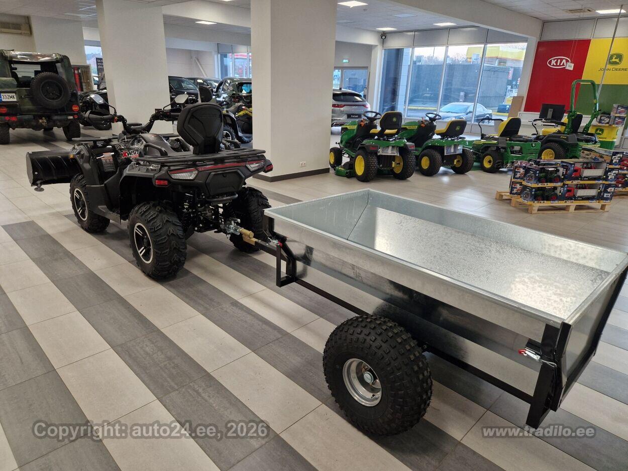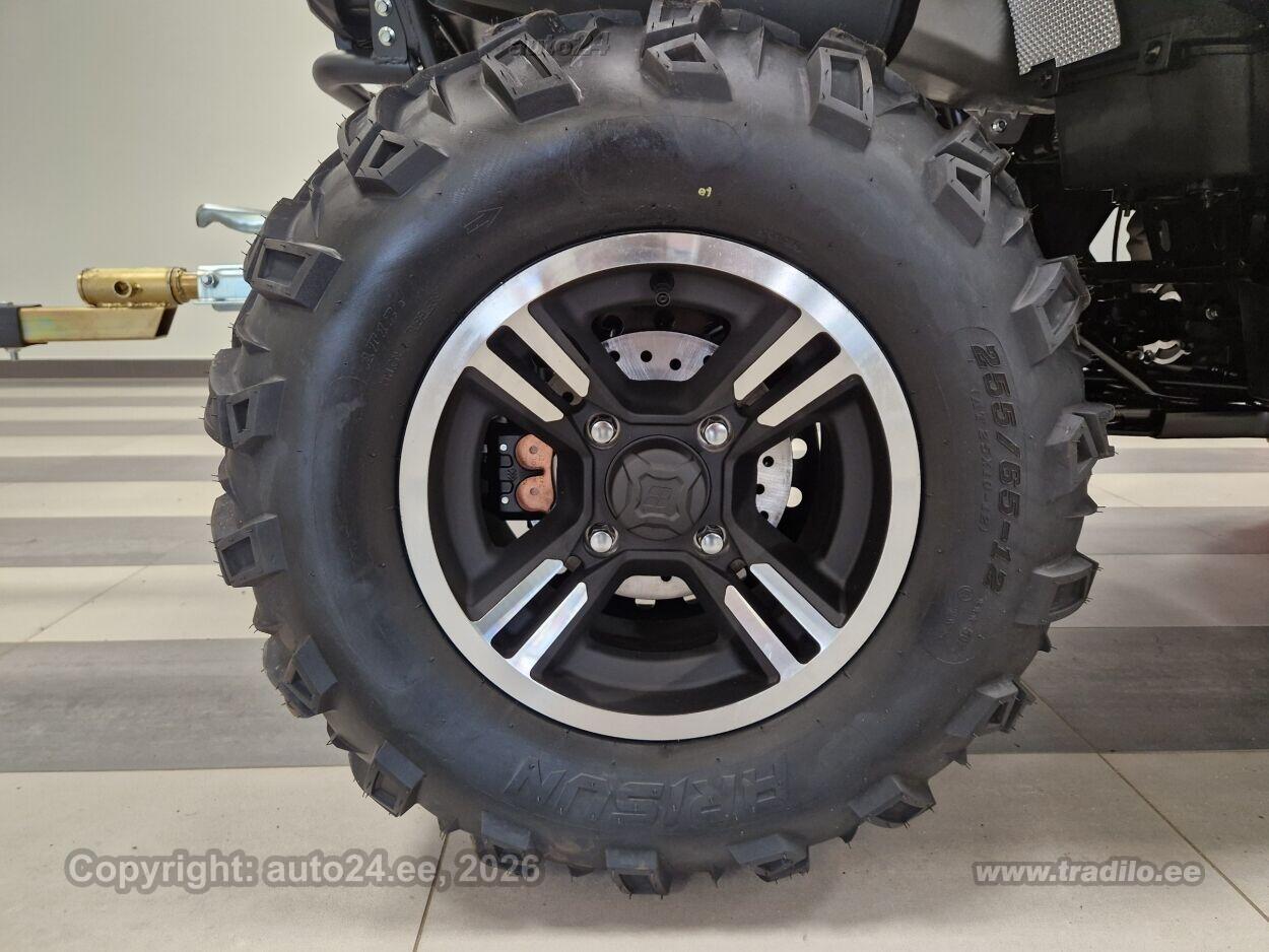 KOMPLEKTIS KIIRKINNITUSEGA RIVAL 1500 MM LUMESAHK JA HAAGIS BRONCO 800 Loncin XWOLF 550L on mitmekülgne ja võimas ATV, mis on loodud nii tööks kui ka vaba aja veetmiseks. Sellel on 499 cm3 ühe silindriga neljataktiline vedelikjahutusega mootor, mis toodab kuni 43 hj ja maksimaalse pöördemomendi 53 Nm juures 5200 p/min. ATV-l on CVT-käigukast koos madala ja kõrge käiguga, samuti tagurpidikäik ja parkimisasend. Loncin XWOLF 550L on varustatud elektroonilise kütuse sissepritse süsteemiga (BOSCH EFI), mis tagab parema kütusekulu ja vähendatud heitgaasid. Sellel mudelil on nelikvedu, mida saab vajadusel kahe- ja nelikveo vahel lülitada. Lisaks on masinal ees difrilukk, mis parandab veojõudu keerulisemates maastikutingimustes. Loncin XWOLF 550L suudab vedada kuni 620 kg haagise kaalu ja sellel on 50 mm haakekonks. Esimene vints on tõmbejõuga kuni 1134 kg. Loncin XWOLF 550L sobib nii talutöödeks, metsas sõitmiseks kui ka vaba aja veetmiseks, pakkudes tugevat jõudlust ja töökindlust eriolukordades. Standardvarustus Roolivõimendi. Kõige võimsam mootor omas klassis 43 Hj (näiteks CFMoto 520 mudelil on mootori võimus ainult 34 Hj. Loncin ATV-l on võimsust 34% ja väänet 15 % rohkem). Kahekohaline, pikem raam. Kliirens oma klassi suurim - 280 mm. Ketaspidurid kõigil neljal rattal (konkurentidel reeglina ainult 2 ees ja 1 taga). 5" LCD värvidisplei (reeglina teistel LC mustvalge). Oma klassi suurima mahutavusega kütusepaak 25 L - ei ole vaja kanistreid kaasas tassida või muretseda, et jahipidamisel kütus otsa saab. Haagise tõmbejõud uskumatu 620 kg (konkurentidel reeglina ainult 300kg). Täielik LED valgustus (esituli eriti võimsa valgustugevusega 42000CD). Stiilsed ja kerged valuveljed. Pöörderaadius ainult 3,65m. Suur veetakistuse läbimisvõime (summuti kõrgus 730mm, õhu sissevõtt 900mm). Äärmiselt kergelt lülituvad käigud. Garantii 3 aastat, madalad hoolduskulud ja varuosadehinnad. T3B väiketraktor - avalikel teedel võib sõita B- kategooria juhilubadega.