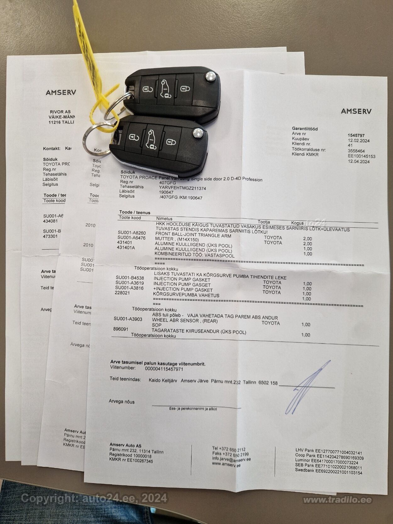 konditsioneer, roolivõimendi (kiirustundlik), kesklukustus (puldiga), ABS pidurid, turvapadi, immobilisaator, signalisatsioon (mahuanduriga), lisapidurituli, stabiilsuskontroll, pidurdusjõukontroll, veojõukontroll, vihmasensor, udutuled (eesmised, tagumine), tulede korrektor, LED (päevatuled, lähituled, kaugtuled), päevasõidutulede automaatne lülitus, suverehvid, ilukilbid, autoga antakse kaasa (Kasutatud talverehvid (naastrehvid)), reguleeritav roolisammas (kõrgus ja sügavus), stereo (MP3, USB pesaga, originaal), kõlarid, ekraan (ees), autokompuuter, Bluetooth käed vabad süsteem, jalamatid (kummist), topsihoidjad (ees), 2x istmesoojendused, käetugi ees, elektrilised välispeeglid (soojendusega, kokkuklapitavad), elektrilised akende tõstukid, püsikiiruse hoidja, Kellaga lisa diislil küte mootori eelsoojendus, Kellaga lisa diislil küte salongi eelsoojendus, salongi lisasoojendus, kohtvalgustid, parkimisandurid (taga), küljeuks, reisiarvesti, 12v pistikupesad, veokonks, välistemperatuuri näidik, esi- ja tagarataste porikummid, vahesein, , Eestist uuena ostetud, Eesti suurfirma oma (AKTSIASELTS), Kõik hooldused esinduse, Viimane hooldus 203027km ja 03.04.2024, Sõiduk TOYOTA PROACE (407GFG) on liiklusregistris registreeritud ja ei ole osalenud üheski liikluskindlustuse juhtumis., https://www.transpordiamet.ee/kasutatud-soiduki-ostjale |