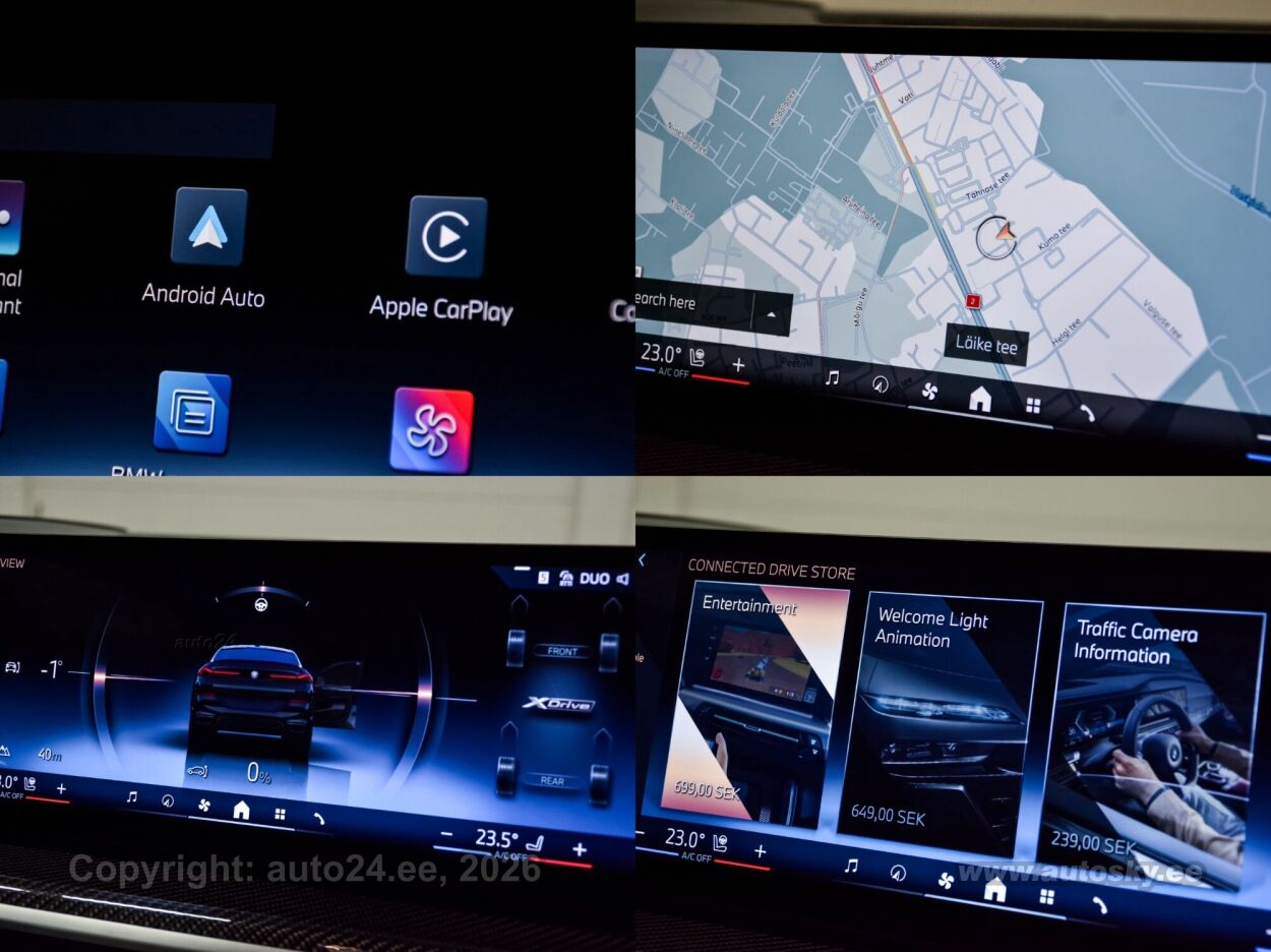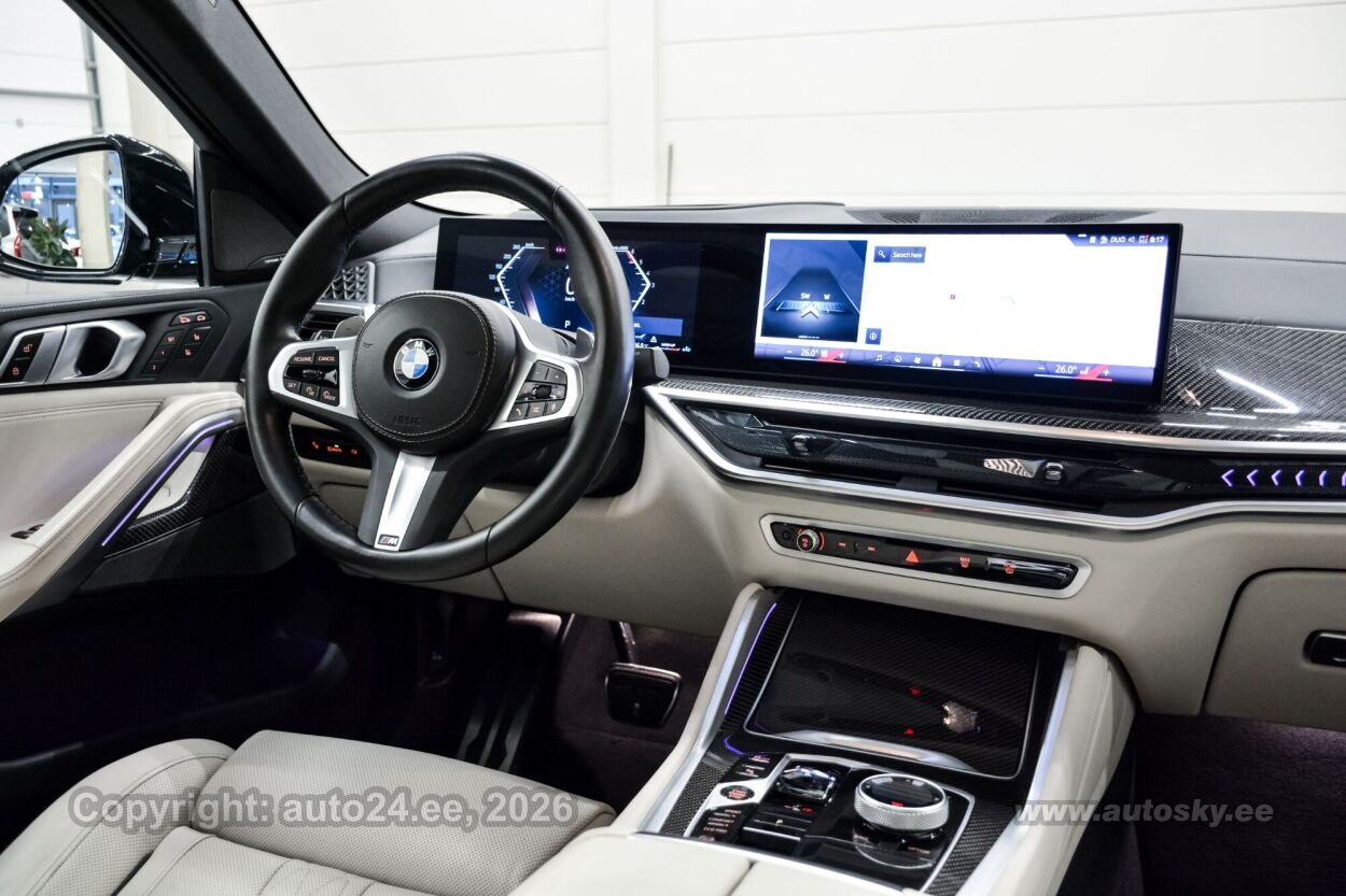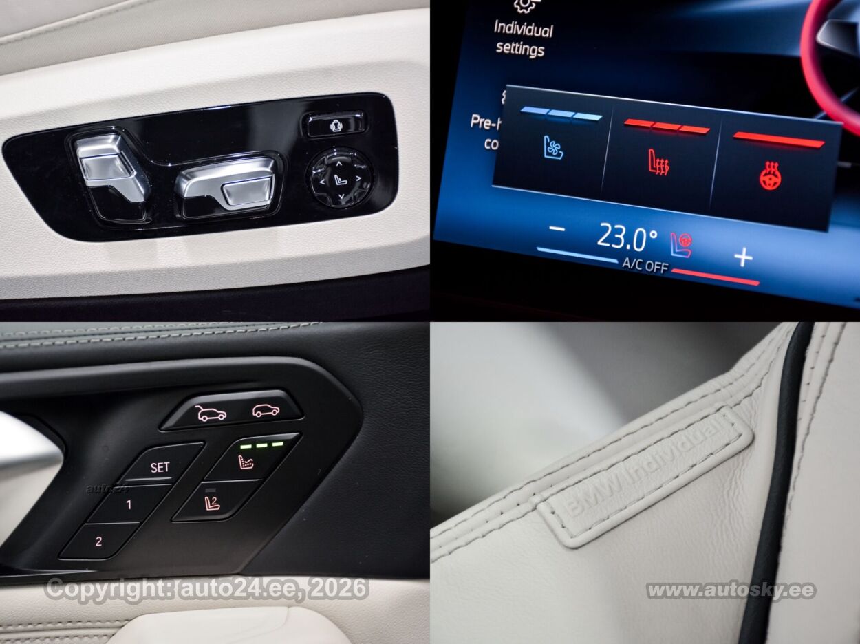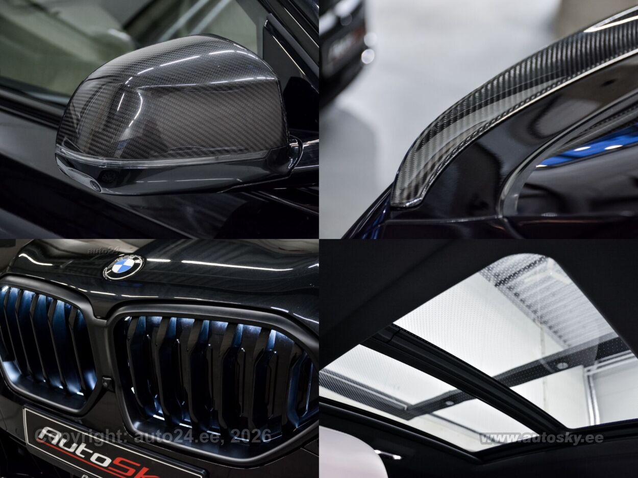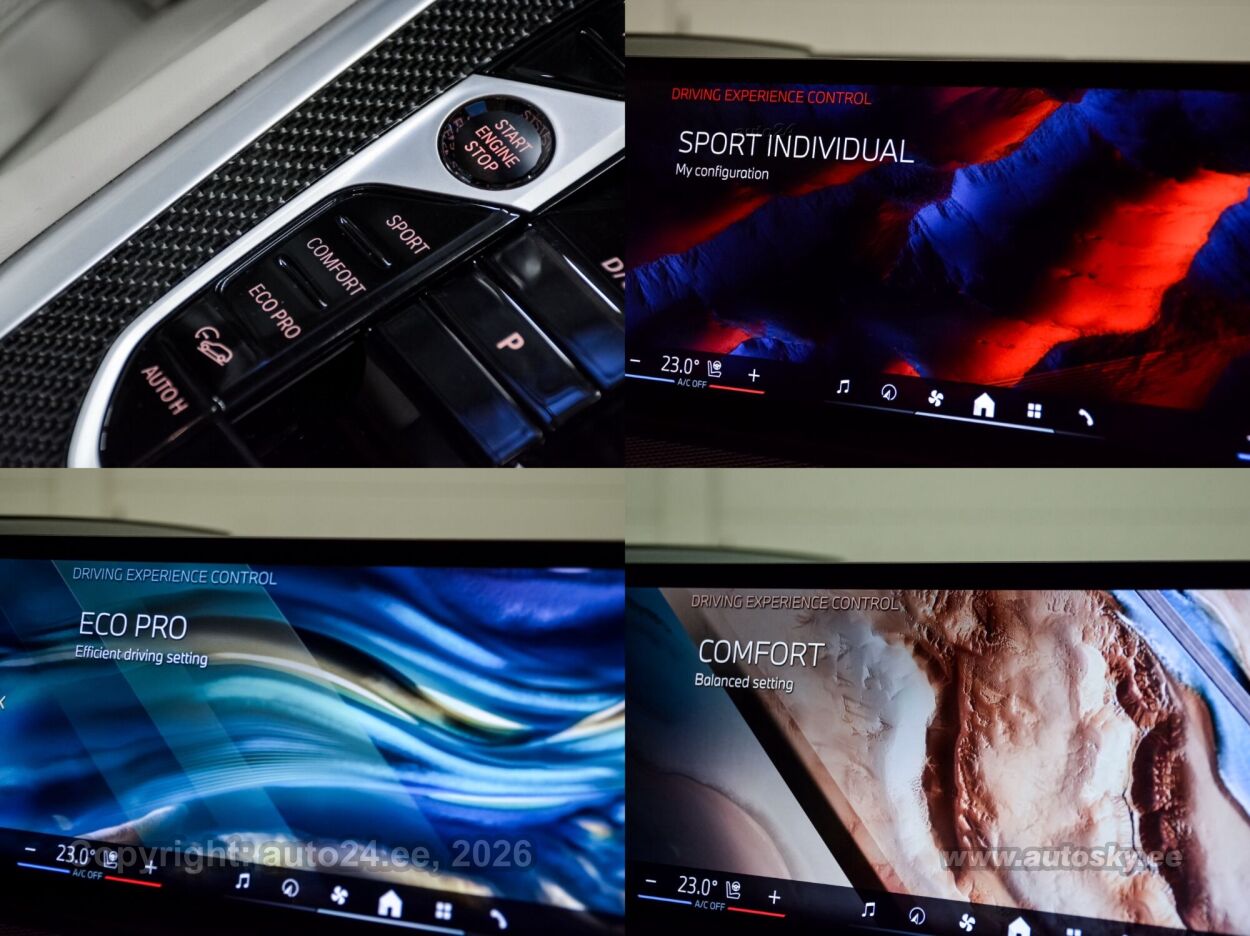 start-stopp süsteem, katusereelingud, 12v pistikupesad, jahutusega kindalaegas, rehviparanduskomplekt, välistemperatuuri näidik, tagaklaasi soojendus, aknapesupihustite sulatus, kaubakinnituse konksud, tagaklaasi puhasti, veokonks (elektriline, teisaldatav), haagise stabiliseerimissüsteem, reisiarvesti, M Sport Exhaust System, Adaptiv M Suspension, Comfort Access System, M Sport Package Pro, Trailer Tow Hitch, Bmw Niere Iconic Glow, Acoustic Comfort Glazing, M Sport Brake, Red High-gloss, Ind.roof Rails High-gloss Shadow L, M Carbon Mirror Caps, Bmw Individual Shadowline Lights, M Carbon Heckspoiler, Panorama Glass Roof Sky Lounge, Roller Sunblind, Rear Side Windows, Luggage Compartment Package, Sun Protection Glazing, Cup Holder Temperature-adjustable, Active Seat Ventilation, Front, Comfort Seats, Electric. Adjustable, Glassapplication Craftedclarity F.i, Travel & Comfort System, M Seat Belts, Seat Heating Front And Rear, Heat Komfort Package Front, Ind. Instrument Finished In Leathe, Interior Trim Finishers Carbon Fibre, Massage Function For Driver And Pas, Expanded Exteriror Mirror Package, Auxiliary Heating, Adaptive Led Headlight, Autom. High-beam Headlights Control, Driving Assistant Professional, Parking Assistant Professional, Harman/kardon Surround Sound System, Dab Tuner, Connectedpackage Professional I, Wireless Charging Tray, Bmw Live Cockpit Professional, M Leather Steering Wheel, M Aerodynamics Package, Individual High-gloss Satin Chrome, Individual Roof-lining Anthracite, Bmw Individual High-gloss Shadowline Exterior Trim With Extended Features, Innovation Package, Comfort Package, Exclusive Package