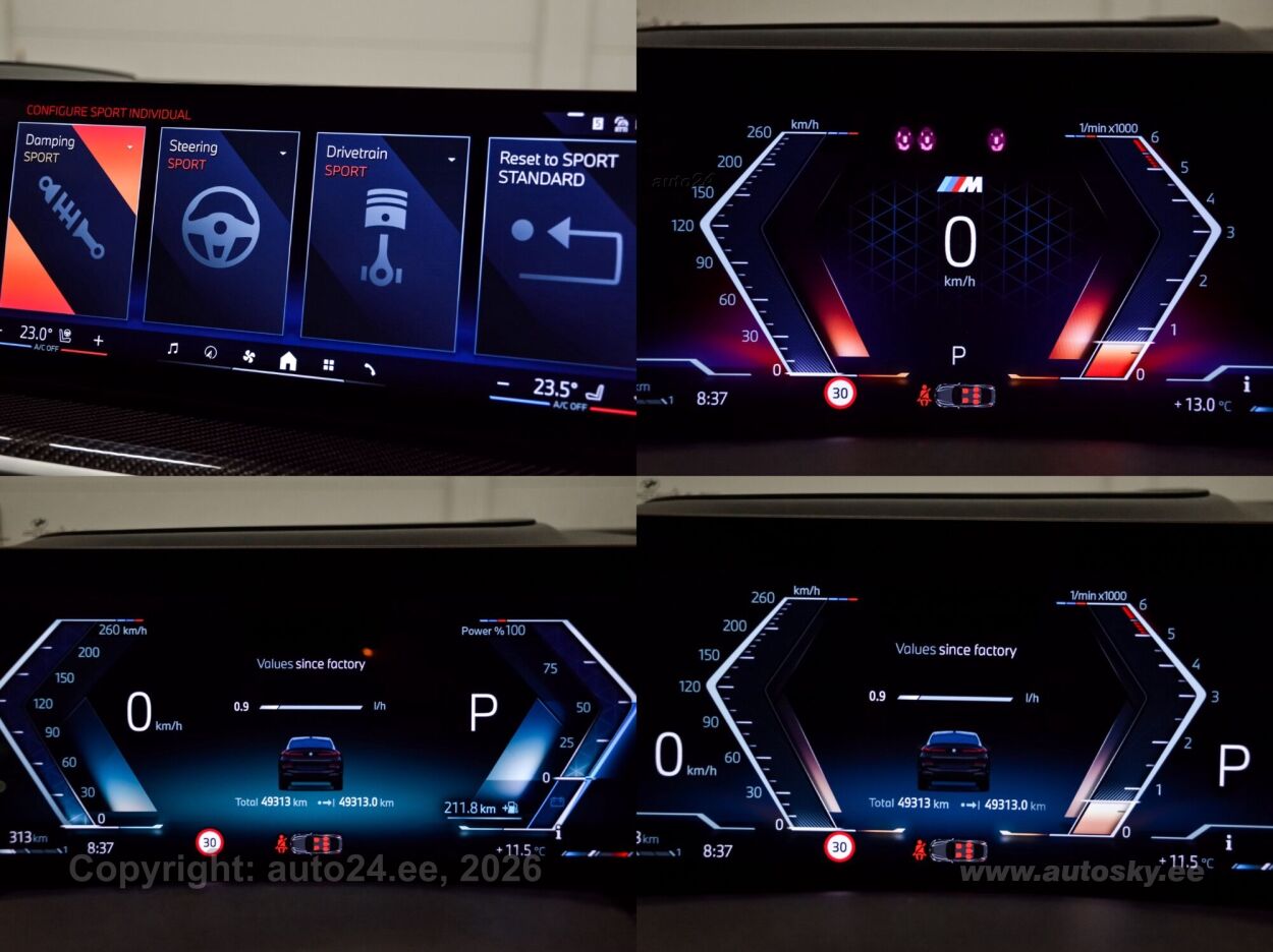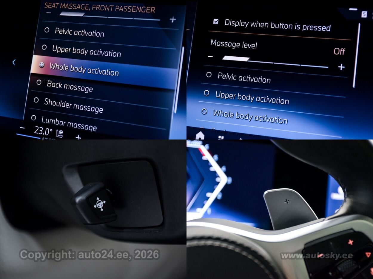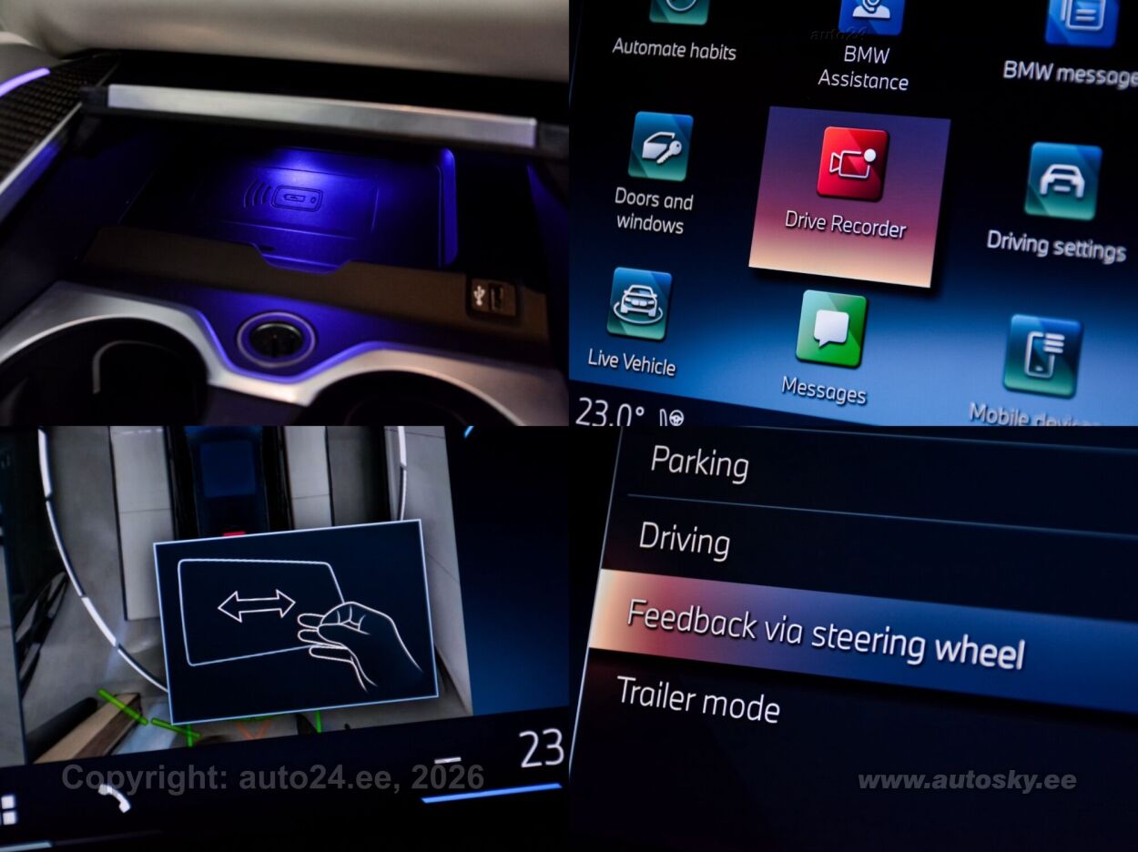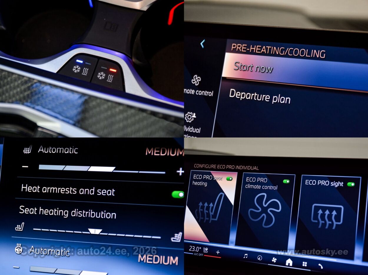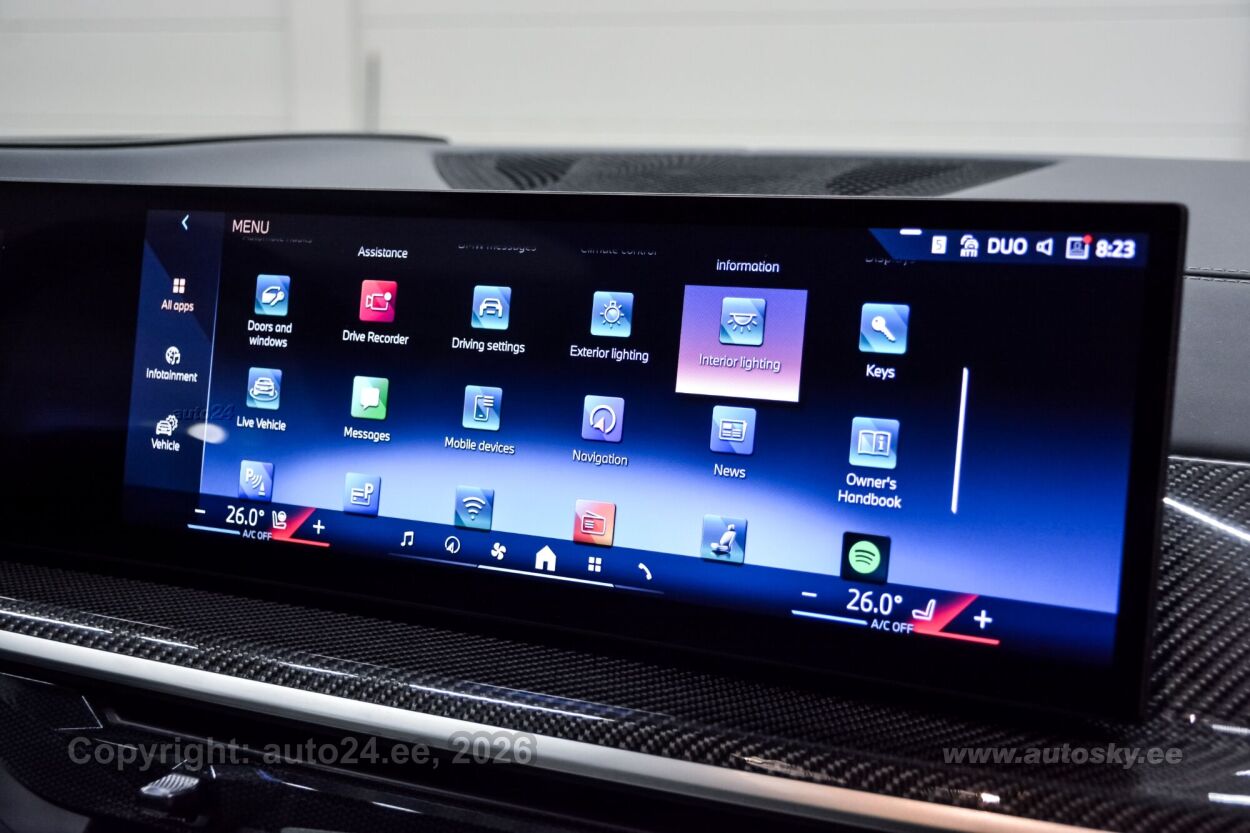 start-stopp süsteem, katusereelingud, 12v pistikupesad, jahutusega kindalaegas, rehviparanduskomplekt, välistemperatuuri näidik, tagaklaasi soojendus, aknapesupihustite sulatus, kaubakinnituse konksud, tagaklaasi puhasti, veokonks (elektriline, teisaldatav), haagise stabiliseerimissüsteem, reisiarvesti, M Sport Exhaust System, Adaptiv M Suspension, Comfort Access System, M Sport Package Pro, Trailer Tow Hitch, Bmw Niere Iconic Glow, Acoustic Comfort Glazing, M Sport Brake, Red High-gloss, Ind.roof Rails High-gloss Shadow L, M Carbon Mirror Caps, Bmw Individual Shadowline Lights, M Carbon Heckspoiler, Panorama Glass Roof Sky Lounge, Roller Sunblind, Rear Side Windows, Luggage Compartment Package, Sun Protection Glazing, Cup Holder Temperature-adjustable, Active Seat Ventilation, Front, Comfort Seats, Electric. Adjustable, Glassapplication Craftedclarity F.i, Travel & Comfort System, M Seat Belts, Seat Heating Front And Rear, Heat Komfort Package Front, Ind. Instrument Finished In Leathe, Interior Trim Finishers Carbon Fibre, Massage Function For Driver And Pas, Expanded Exteriror Mirror Package, Auxiliary Heating, Adaptive Led Headlight, Autom. High-beam Headlights Control, Driving Assistant Professional, Parking Assistant Professional, Harman/kardon Surround Sound System, Dab Tuner, Connectedpackage Professional I, Wireless Charging Tray, Bmw Live Cockpit Professional, M Leather Steering Wheel, M Aerodynamics Package, Individual High-gloss Satin Chrome, Individual Roof-lining Anthracite, Bmw Individual High-gloss Shadowline Exterior Trim With Extended Features, Innovation Package, Comfort Package, Exclusive Package