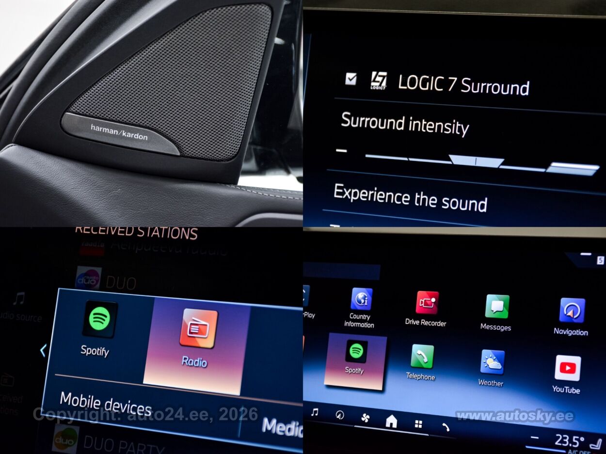 Harman/Kardon stereo (originaal), helivõimendi, kõlarid, subwoofer, Apple CarPlay, Android Auto, ekraan (ees), navigatsiooniseade (kaardiga), autokompuuter, käed vabad süsteem