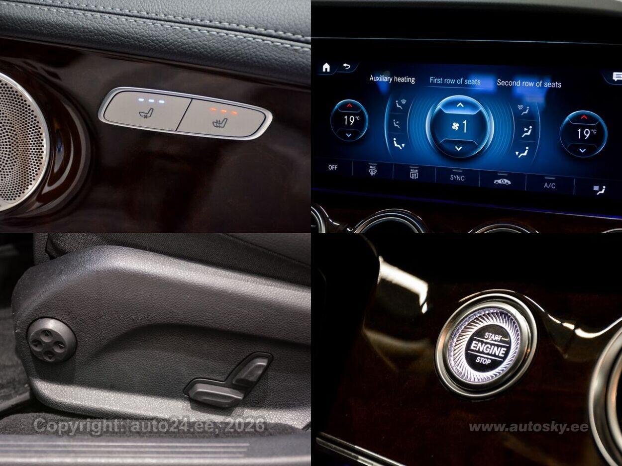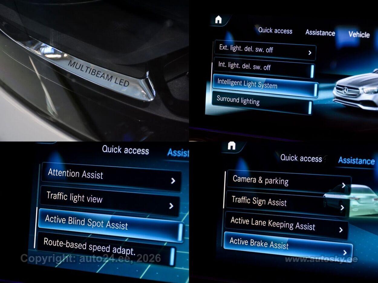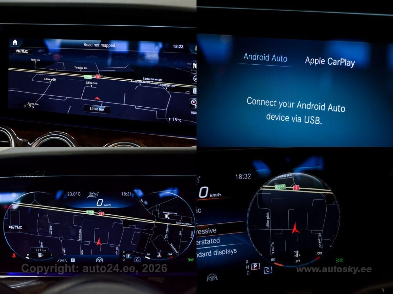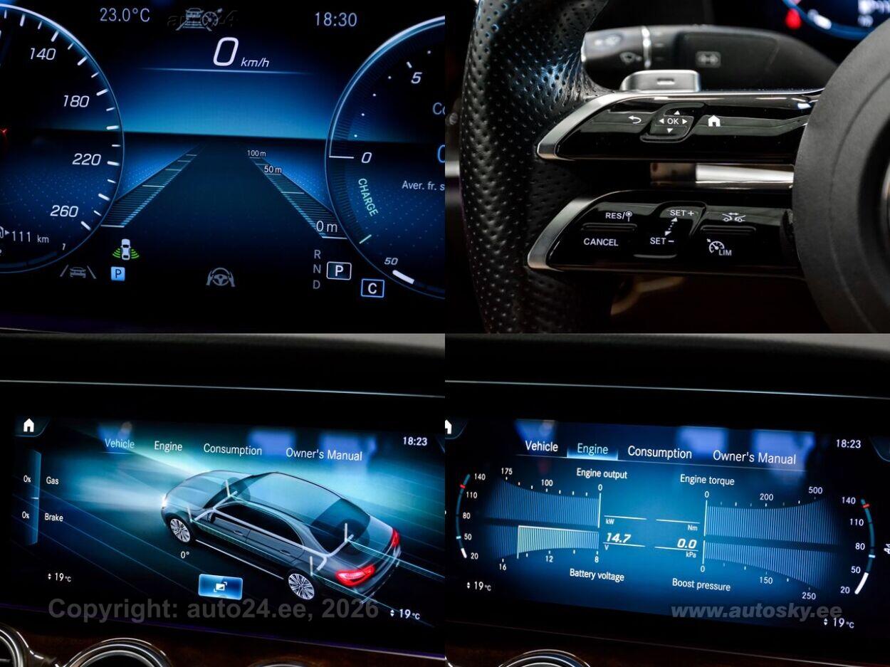 reguleeritav vedrustus, õhkvedrustus, start-stopp süsteem, 12v pistikupesad, rehviparanduskomplekt, välistemperatuuri näidik, tagaklaasi soojendus, aknapesupihustite sulatus, reisiarvesti, Smartphone integration package, Adaptive cruise control Plus (DISTRONIC PLUS), Active Parking Assist, Active Stop-and-Go Assist, DISTRONIC PLUS transverse support (DTR+Q), Climatised front seat, Front visual display (head-up display), AIRMATIC DC / semi-active air suspension, 360 camera, Road sign recognition system, Digital Radio standard DAB, Automatic high beam control plus (IHC+), Dynamic LED headlamps, right-hand traffic, AMG styling - Front spoiler, side skirts, Wider wheel arch for AMG wheels, Center console in high-gloss burl walnut wood, Burmester Premium sound, Heated windscreen washer system, Interior lighting package, KEYLESS-GO, Premium ambiance illumination, Front wireless telephone charging and antenna, Assistance system steering wheel control changeover, Drive program selection switch (Agility Select), Supersport steering wheel - leather deep-embossed, Driving assistance package, Interior AMG Line / interior AMG sport package, Exterior AMG Line / exterior AMG sport package, Parking Package High, Mirror package, Light Package, Ergonomics package, MBUX Navigation Plus, AMG double-spoke wheels 19", Sport brake system