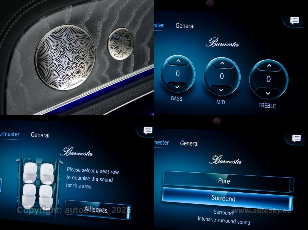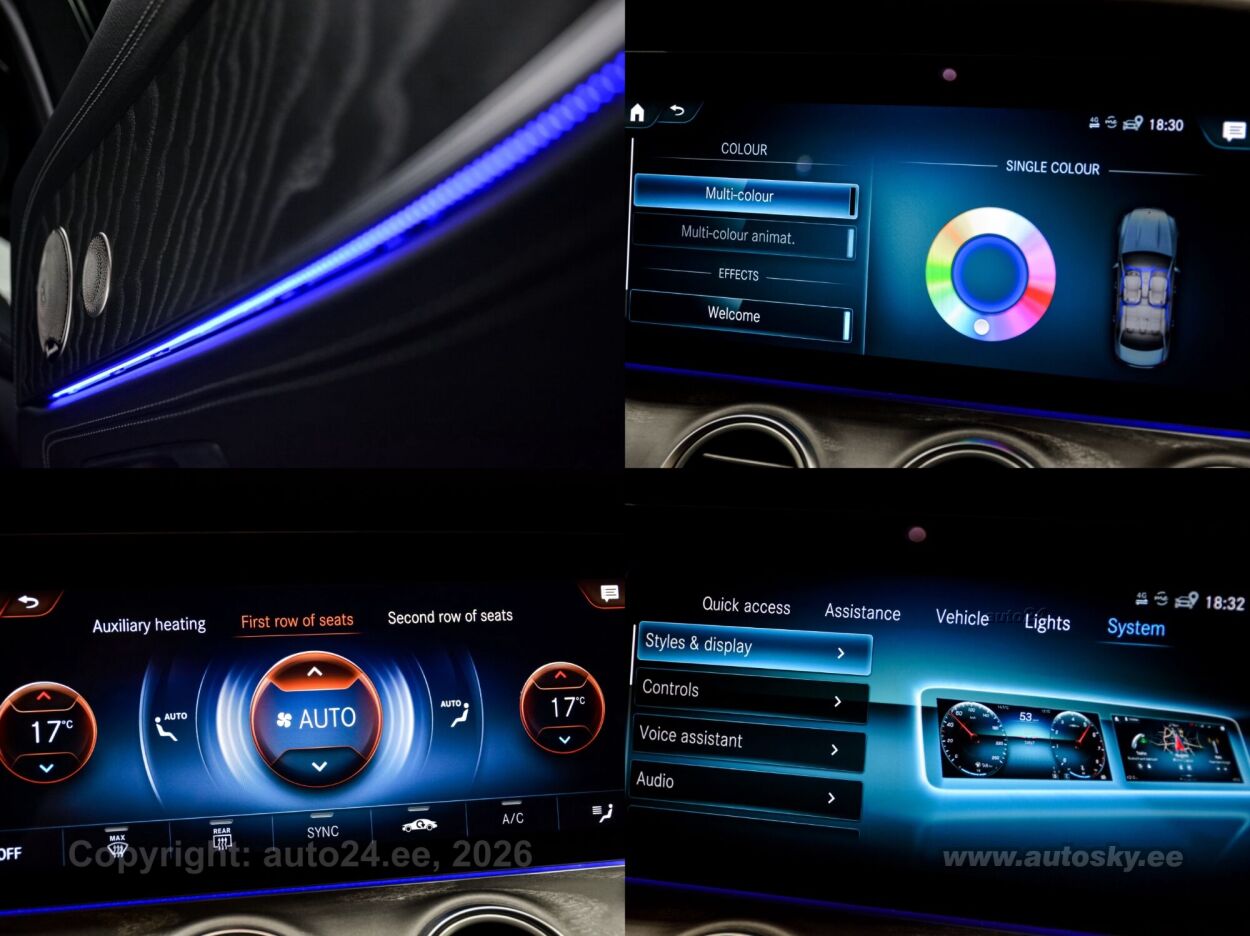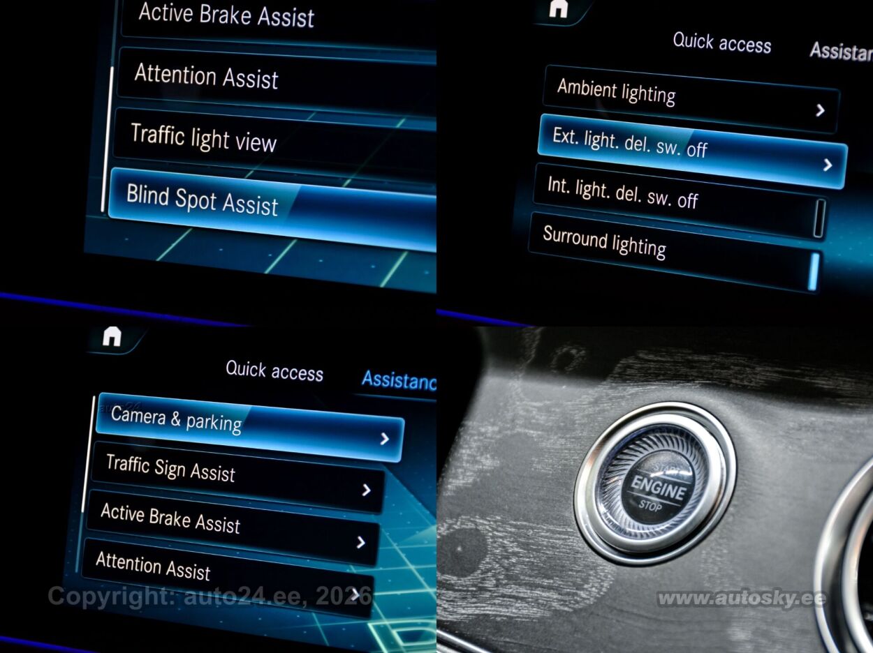 start-stopp süsteem, 12v pistikupesad, rehviparanduskomplekt, välistemperatuuri näidik, tagaklaasi soojendus, aknapesupihustite sulatus, veokonks (teisaldatav), reisiarvesti, Smartphone integration package, Additional warm water heating, Blind Spot Monitoring, Active Parking Assist, 360 camera, Road sign recognition system, Automatic high beam control (IHC), Headlamps, LED, AVANTGARDE/standard suspension, AMG styling - Front spoiler, side skirts, Wider wheel arch for AMG wheels, Burmester Premium sound system, Seat heaters for driver and front passenger, Heated windscreen washer system, KEYLESS-GO, Premium ambiance illumination, Front wireless telephone charging, Assistance system steering wheel control changeover, Trim elements - Silver open-pore ash wood, Supersport steering wheel - leather deep-embossed, Interior AMG Line / interior AMG sport package, Exterior AMG Line / exterior AMG sport package, Parking Package High, Night package, Ergonomics package, AMG multi-spoke wheels 20, Leather-clad instrument panel and beltline, Sport brake system, AMG spoiler lip