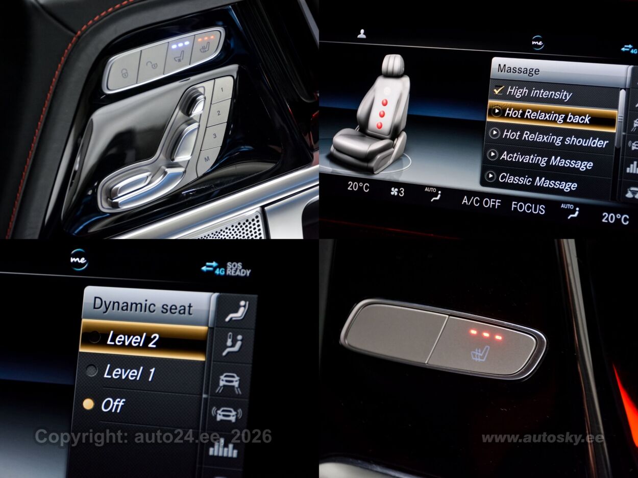 nahkpolster, 2x elektriliselt reguleeritavad istmed (2x mäludega), istmed reguleeritava kõrgusega (juhiiste, kõrvalistuja iste), reguleeritava kumerusega seljatugi (juhiiste, kõrvalistuja iste), 2x istmesoojendused, ventileeritavad istmed (ees), massaažifunktsiooniga istmed (juhil, kõrvalistmel), taskud esiistmete seljatugedes, tagaistme seljatugi allaklapitav, nahkkattega rool, sportrool, multifunktsionaalne rool, käiguvahetus roolilt, reguleeritav roolisammas (kõrgus ja sügavus, elektriliselt, mäluga), tume laepolster, käetugi ees (laekaga), käetugi taga (laekaga), topsihoidjad (ees, taga), Carbon iluliistud salongis, jalamatid (veluurist)
