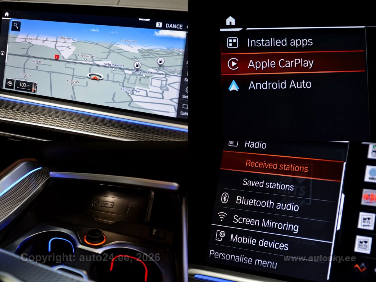 Harman/Kardon stereo (originaal), helivõimendi, kõlarid, Apple CarPlay, Android Auto, ekraan (ees), navigatsiooniseade (kaardiga), autokompuuter, käed vabad süsteem