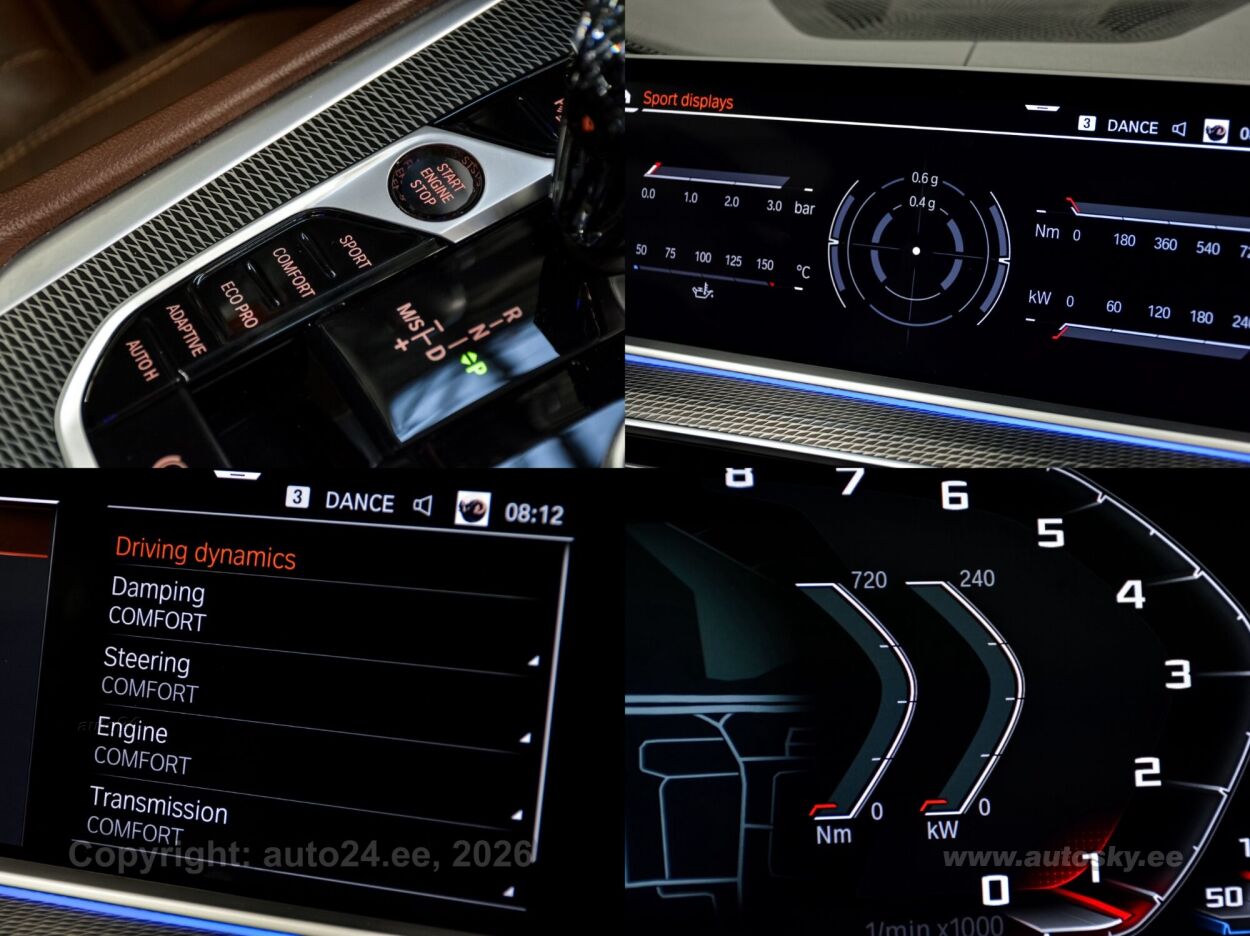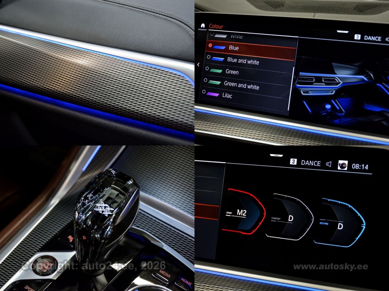 reguleeritav vedrustus (elektriliselt, jäikus), start-stopp süsteem, 12v pistikupesad, rehviparanduskomplekt, välistemperatuuri näidik, tagaklaasi soojendus, aknapesupihustite sulatus, pagasikate, kaubakinnituse konksud, reisiarvesti, M Sport Exhaust System, M Sportbrake, Adaptiv M Suspension, Comfort Access System, Soft Close Automatic System For Doors, M Sport Package, Bmw Display Key, Acoustic Comfort Glazing, Panorama Glass Roof, Luggage Compartment Package, Sun Protection Glazing, Cup Holder Temperature-adjustable, Comfort Seats, Electric. Adjustable, Glassapplication Craftedclarity F.i, Travel & Comfort System, Heat Komfort Package Front, Interior Trim M Aluminium Tetragon, Ambient Light, Auxiliary Heating, Led-fog Lights, Autom. High-beam Headlights Control, Driving Assistant, Bmw Laser Light: Parking Assistant Plus, Head Up Display, Dab Tuner, Harman/kardon Surround Sound System, Connectedpackage Professional, Telephony With Wireless Charging, Bmw Live Cockpit Professional, Wifi Hotspot, M Leather Steering Wheel, M Aerodynamics Package, Individual High-gloss Satin Chrome, Individual Roof-lining Anthracite, Bmw Individual High-gloss Shadowline Exterior Trim With Extended Features, Innovation Package, Winter Joy Package, Entertainment Package