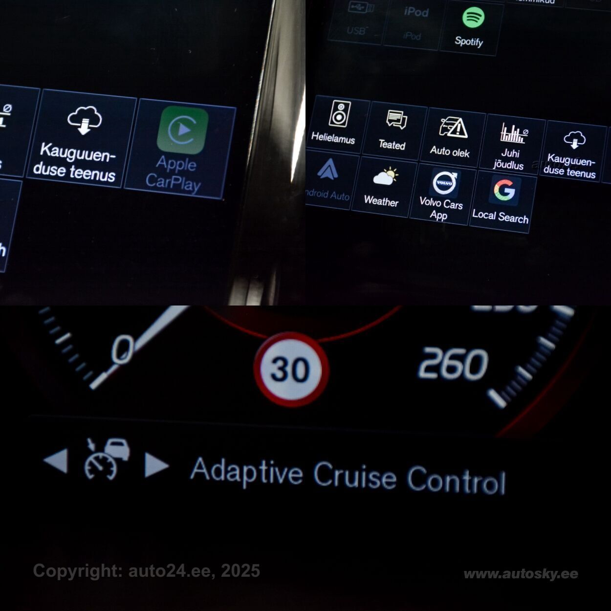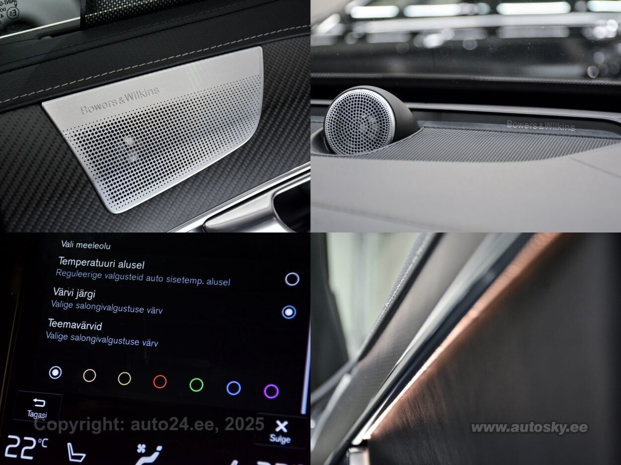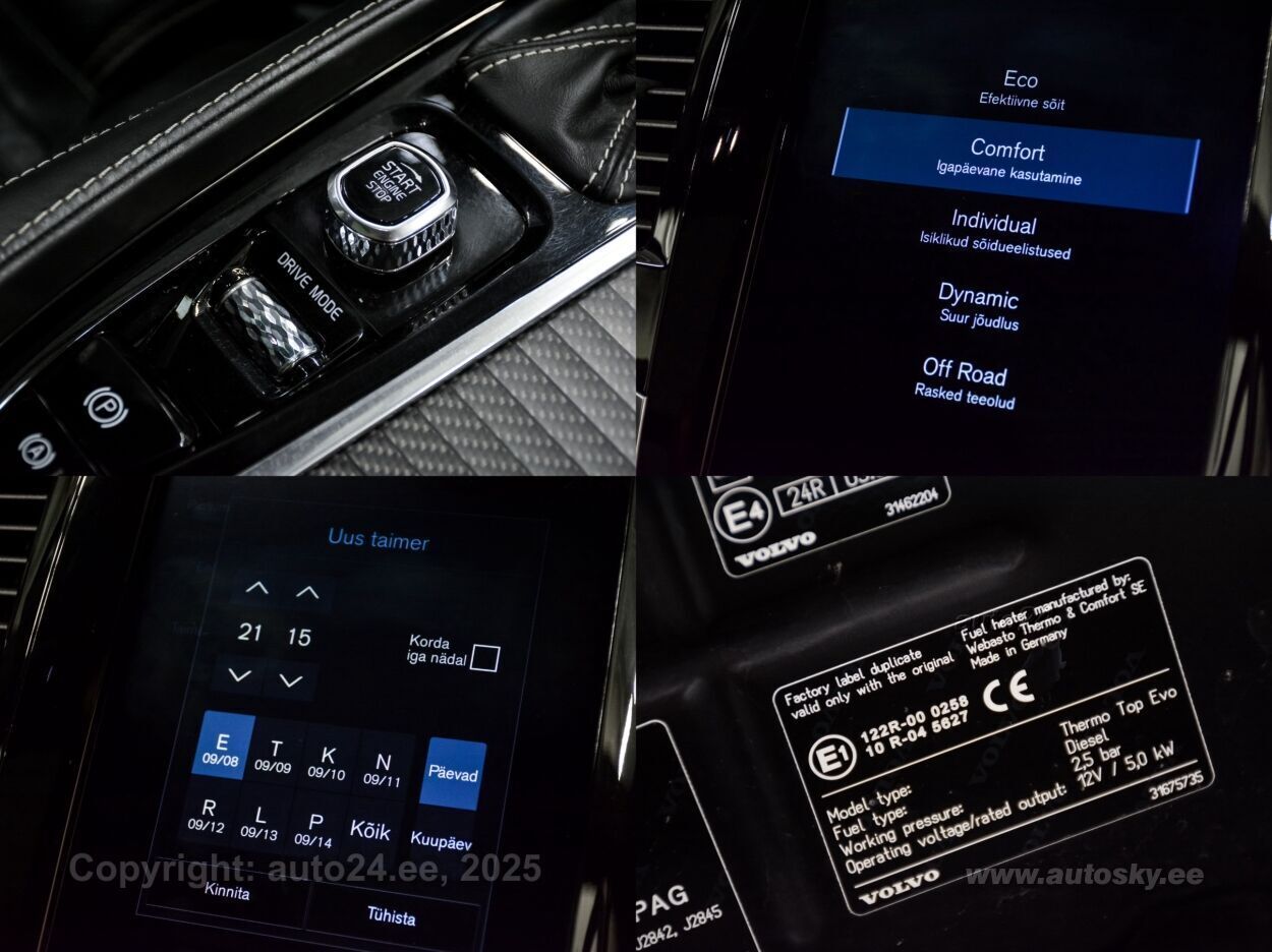 reguleeritav vedrustus, õhkvedrustus, start-stopp süsteem, katusereelingud, 12v pistikupesad, rehviparanduskomplekt, välistemperatuuri näidik, tagaklaasi soojendus, aknapesupihustite sulatus, pagasikate, kaubakinnituse konksud, tagaklaasi puhasti, veokonks (elektriline, teisaldatav), reisiarvesti, 4C - Aktiivne õhkvedrustus koos reguleeritava kõrgusega, Keyless Start võtmevaba käivitus, Panoraamkatus, elektrilise katuseluugi ja -päikesesirmiga, ACC - Adaptiivne ees sõitva sõidukiga distantsi hoidev püsikiirus koos Stop & Go ummikuassistendi ja automaatpidurdusega, Pilot Assist - autonoomne ummikuassistent, Full-LED esituled, koos kurvitule funktsiooniga ja aktiivsete ees sõitvaid ja vastu tulevaid sõidukeid "väljalõikavate" aktiivsete kaugtuledega, Bowers & Wilkins Premium Sound w. Subwoofer stereo, Lane-Keeping Aid - Akiivne sõiduraja hoidmise abisüsteem, Traffic Sign information, City Safety avariiennetus koos automaatpidurdusega, 2 x Elektriliselt reguleeritavad esiistmed, 2x mäludega, Webasto autonoomne eelsoojendus, Volvo On-Call plokk (ja liitudes mobiiliäppi tellimusega võimalik sõiduki funktsioone distantsilt juhtida), Digitaalne näidikutetabloo, Sensus navigatsiooniseade, Smartphone integration - Apple Carplay & Android Auto - Waze, Gmaps jne keskkonsoolis, USB kaudu, Drive Mode sõiduseadete valik, Veokonks, originaal pool-elektriline, Ambient salongivalgustus, Nahatatud armatuur ja küljepolstrid