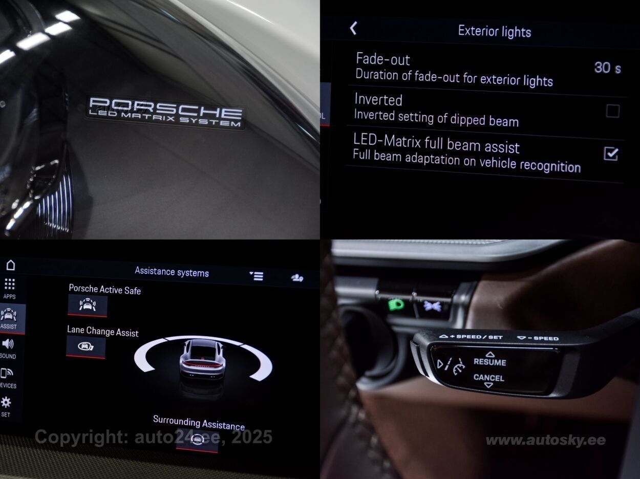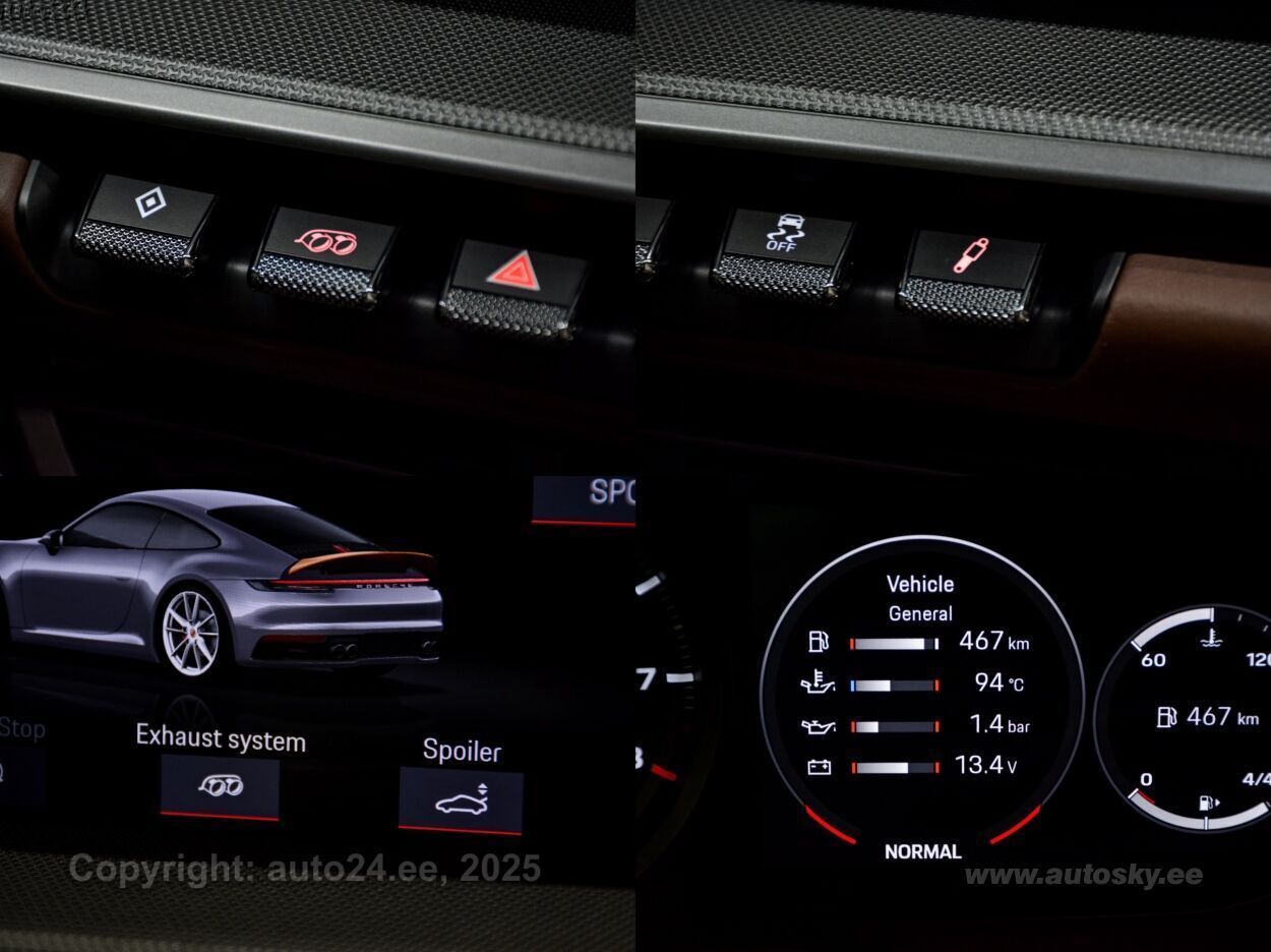 reguleeritav vedrustus (elektriliselt, jäikus), start-stopp süsteem, välistemperatuuri näidik, tagaklaasi soojendus, aknapesupihustite sulatus, reisiarvesti, Sportlik väljalaskesüsteem koos häälfunktsiooniga, Aktiivvedrustus Porsche Active Suspension Management (PASM) koos 10 mm võrra madalama kliirensiga, SportDesign esispoiler, Logo "911" kere tagaosal värvitud läikivmusta värvi, 21" Carrera Exclusive Design veljed, Porsche Entry & Drive - võtmeta sisenemine ja käivitus, Mustal põhjal LED-Matrix esituled koos dünaamilise valgustuspaketiga Porsche Dynamic Light System Plus (PDLS Plus), Sport Chrono: paigaltstardi kiirenduse funktsioon Launch Control, režiimilüliti roolil sõiduomaduste seadistamiseks, SPORT Response funktsioon, BOSE Surround Sound System, 12 kõlarit, aktiivsubwoofer, koguvõimsus 570W, Vihmasensor ja automaatselt tumenevad küljepeeglid ja tahavaatepeegel salongis, Porsche Active Safe, Lane Change Assist