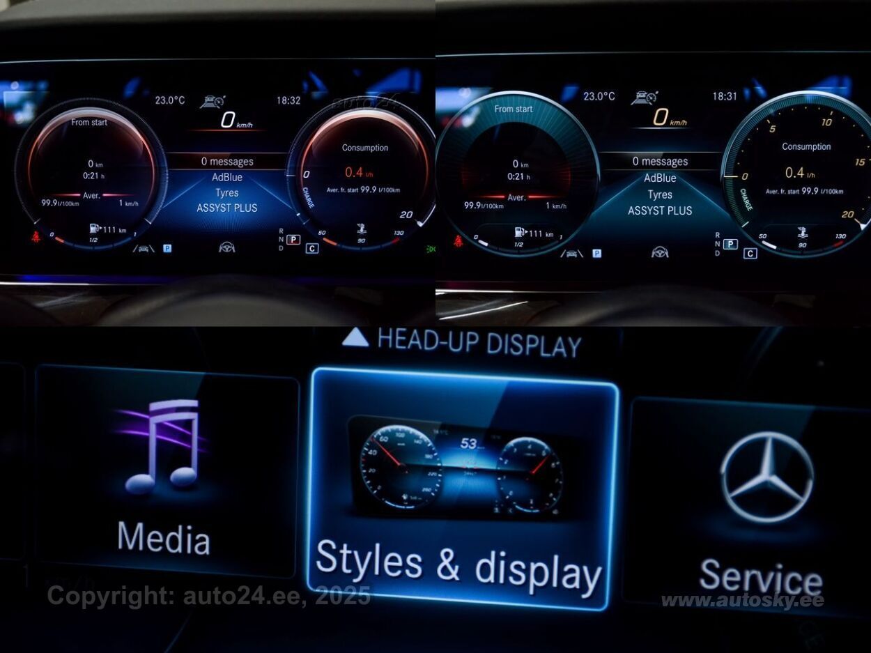 reguleeritav vedrustus, õhkvedrustus, start-stopp süsteem, 12v pistikupesad, rehviparanduskomplekt, välistemperatuuri näidik, tagaklaasi soojendus, aknapesupihustite sulatus, reisiarvesti, Smartphone integration package, Adaptive cruise control Plus (DISTRONIC PLUS), Active Parking Assist, Active Stop-and-Go Assist, DISTRONIC PLUS transverse support (DTR+Q), Climatised front seat, Front visual display (head-up display), AIRMATIC DC / semi-active air suspension, 360 camera, Road sign recognition system, Digital Radio standard DAB, Automatic high beam control plus (IHC+), Dynamic LED headlamps, right-hand traffic, AMG styling - Front spoiler, side skirts, Wider wheel arch for AMG wheels, Center console in high-gloss burl walnut wood, Burmester Premium sound, Heated windscreen washer system, Interior lighting package, KEYLESS-GO, Premium ambiance illumination, Front wireless telephone charging and antenna, Assistance system steering wheel control changeover, Drive program selection switch (Agility Select), Supersport steering wheel - leather deep-embossed, Driving assistance package, Interior AMG Line / interior AMG sport package, Exterior AMG Line / exterior AMG sport package, Parking Package High, Mirror package, Light Package, Ergonomics package, MBUX Navigation Plus, AMG double-spoke wheels 19", Sport brake system