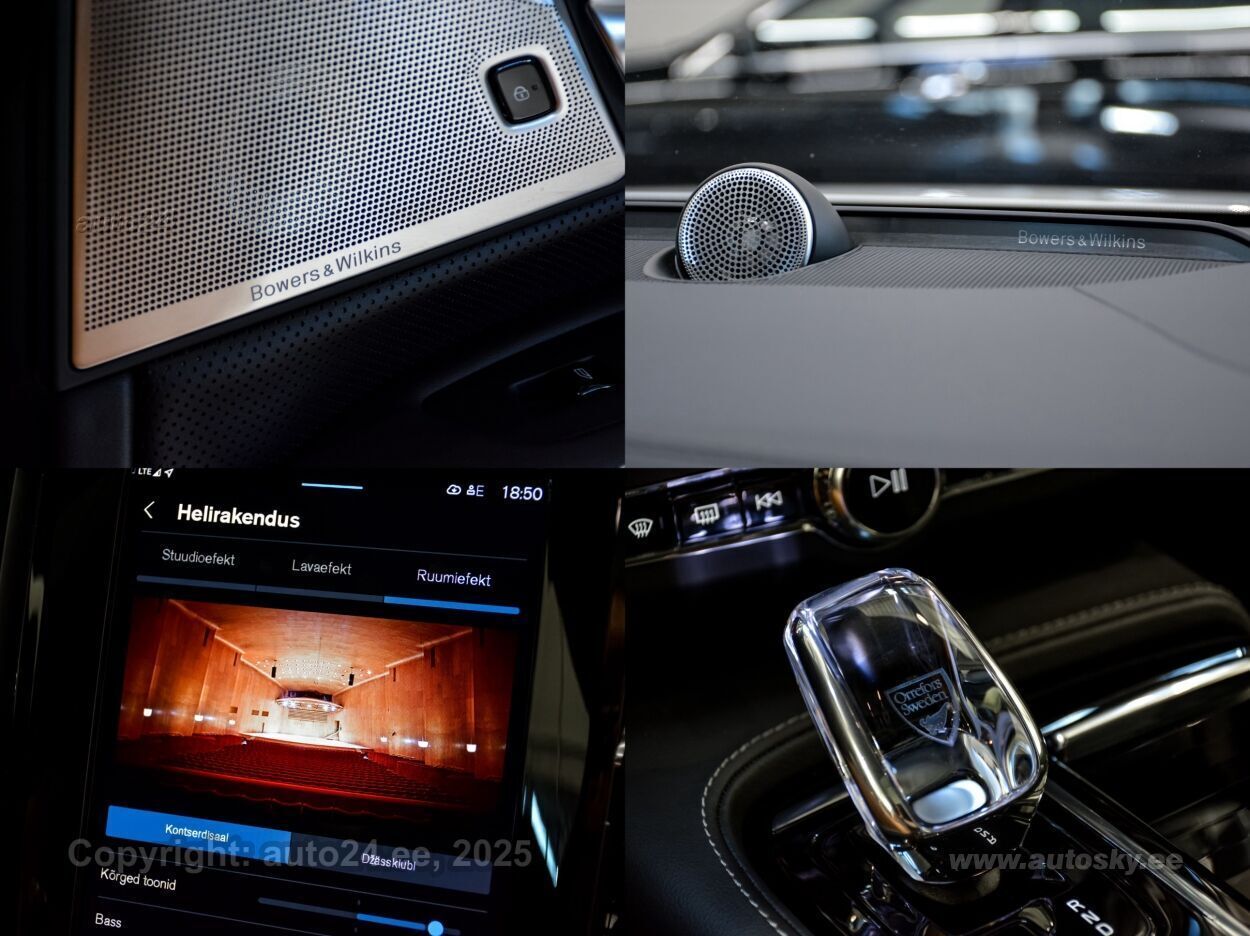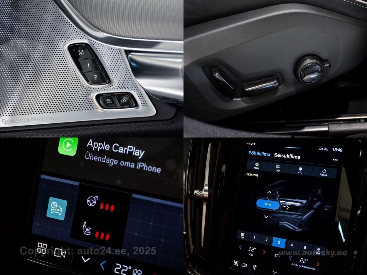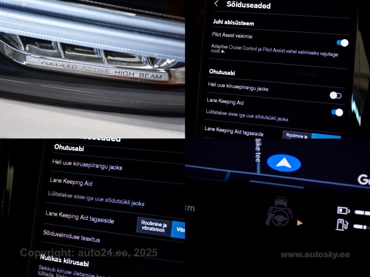 HUD - Head-Up display info kuvamine esiklaasile, Bowers & Wilkins Premium Sound w. Subwoofer, Keyless Entry & Start võtmevaba sisenemine ja käivitus koos jalaviipega pagasiluugi avamisega, Intelli Safe PRO package, Full-LED esituled, koos kurvitule funktsiooniga ja aktiivsete ees sõitvaid ja vastu tulevaid sõidukeid väljalõikavate aktiivsete kaugtuledega, PILOT Assist - Pool-autonoomne juhtimissüsteem, Stop & Go aktiivne ummikuassistent, ACC - Adaptiivne ees sõitva sõidukiga distantsi hoidev püsikiirus, Lane-Keeping Aid - Akiivne sõiduraja hoidmise abisüsteem, Traffic Sign information, BLIS - Info sõidukite kohta pimealas Cross-Traffic alert- ristuva liikluse hoiatus, Kokkupõrke vältimise süsteem, Parkimisandurid ees, külgedel ja taga, Parkimiskaamera Top View 360 kraadi, Klaasist katuseluuk, päikesesirmiga, 2 x päikesekardinad küljeakendele, Päikesekardin tagaaknal, elektriline, Nappa "Charcoal" must lisapolstritega nahkpolster, 2 x Täis-elektriliselt reguleeritavad esiistmed, mäludega, Reguleeritav nimmetugi ja istmepadi, Winter package, Roolisoojendus, 4 x Istmesoojendused ees ja taga, Volvo On-Call saatja & mobiiliäppiga liitumise võimalus sõiduki funktsioonide distantsilt juhtimiseks, Park Heater / Volvo originaal autonoomne eelsoojendus, Apple Carplay - Smartphone integration Waze, Gmaps jne keskkonsoolis, Inscription nahatatud armatuurlaud ja küljed, Comfort / Käed-vaba elektriline pagasiluuk nupust, jalaviipega & puldist, 20" Volvo valuvelg