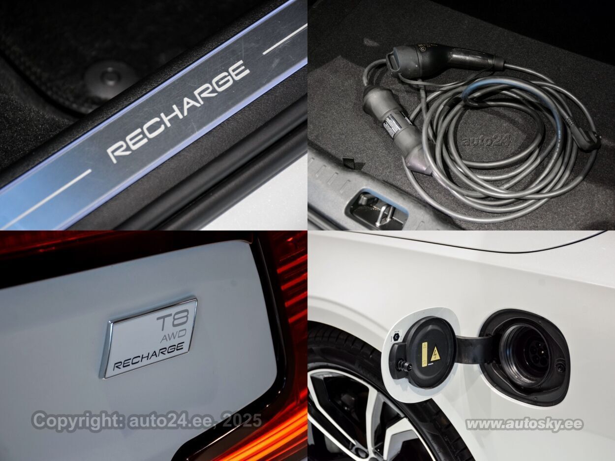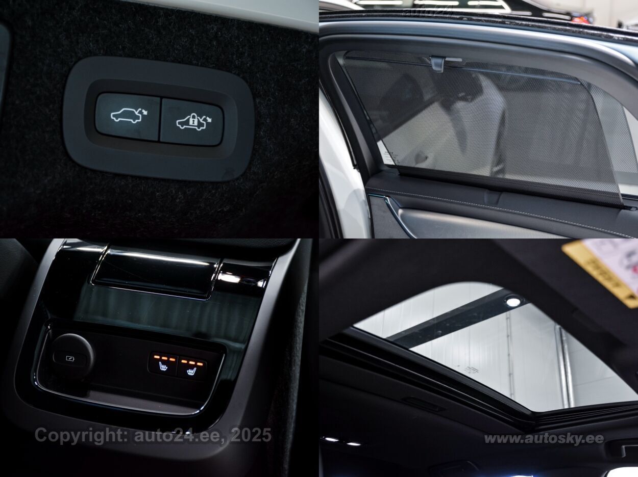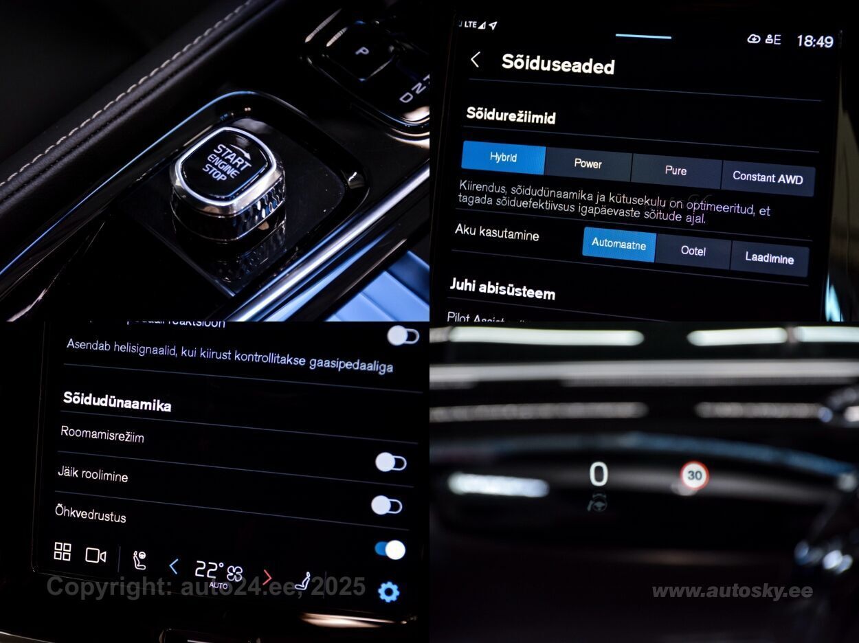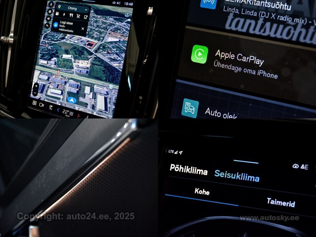 HUD - Head-Up display info kuvamine esiklaasile, Bowers & Wilkins Premium Sound w. Subwoofer, Keyless Entry & Start võtmevaba sisenemine ja käivitus koos jalaviipega pagasiluugi avamisega, Intelli Safe PRO package, Full-LED esituled, koos kurvitule funktsiooniga ja aktiivsete ees sõitvaid ja vastu tulevaid sõidukeid väljalõikavate aktiivsete kaugtuledega, PILOT Assist - Pool-autonoomne juhtimissüsteem, Stop & Go aktiivne ummikuassistent, ACC - Adaptiivne ees sõitva sõidukiga distantsi hoidev püsikiirus, Lane-Keeping Aid - Akiivne sõiduraja hoidmise abisüsteem, Traffic Sign information, BLIS - Info sõidukite kohta pimealas Cross-Traffic alert- ristuva liikluse hoiatus, Kokkupõrke vältimise süsteem, Parkimisandurid ees, külgedel ja taga, Parkimiskaamera Top View 360 kraadi, Klaasist katuseluuk, päikesesirmiga, 2 x päikesekardinad küljeakendele, Päikesekardin tagaaknal, elektriline, Nappa "Charcoal" must lisapolstritega nahkpolster, 2 x Täis-elektriliselt reguleeritavad esiistmed, mäludega, Reguleeritav nimmetugi ja istmepadi, Winter package, Roolisoojendus, 4 x Istmesoojendused ees ja taga, Volvo On-Call saatja & mobiiliäppiga liitumise võimalus sõiduki funktsioonide distantsilt juhtimiseks, Park Heater / Volvo originaal autonoomne eelsoojendus, Apple Carplay - Smartphone integration Waze, Gmaps jne keskkonsoolis, Inscription nahatatud armatuurlaud ja küljed, Comfort / Käed-vaba elektriline pagasiluuk nupust, jalaviipega & puldist, 20" Volvo valuvelg