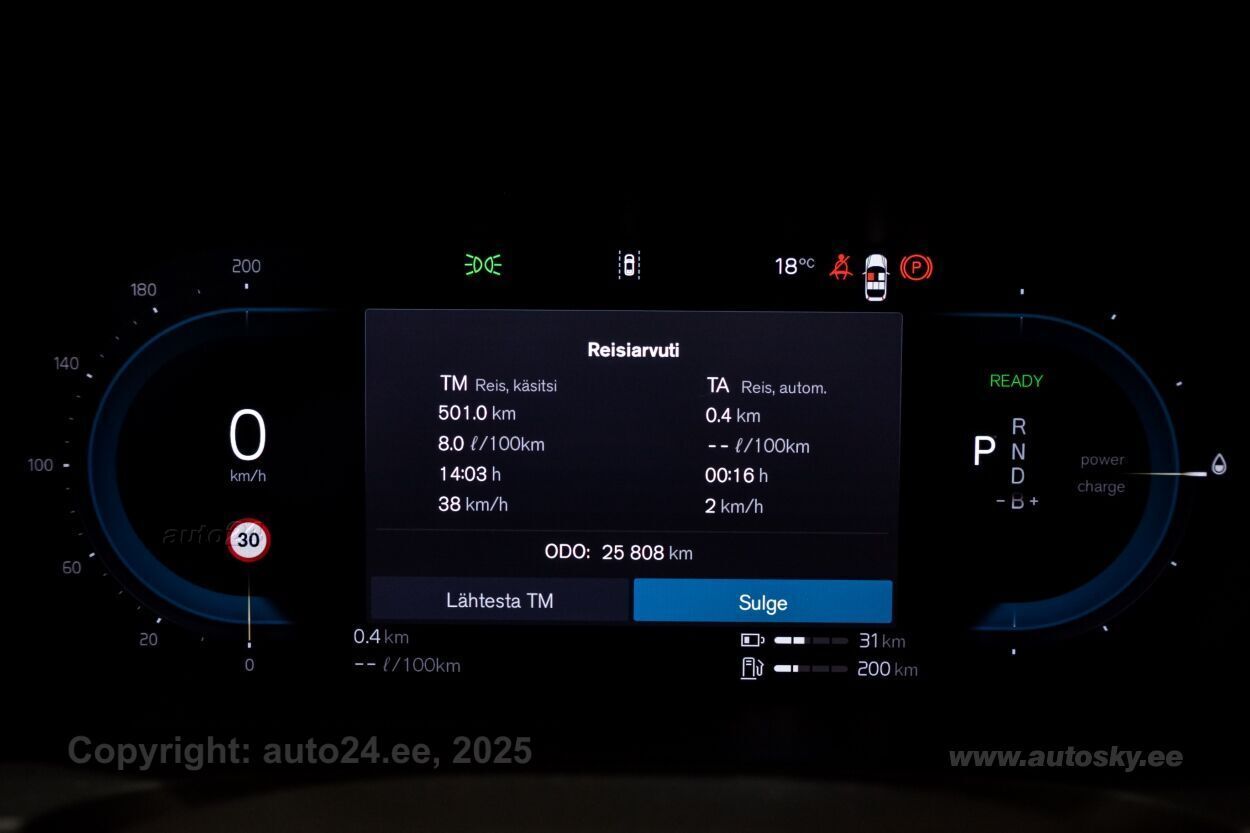 reguleeritav vedrustus, õhkvedrustus, start-stopp süsteem, 12v pistikupesad, rehviparanduskomplekt, välistemperatuuri näidik, tagaklaasi soojendus, aknapesupihustite sulatus, reisiarvesti, Volvo S90 T8 AWD Recharge pistikhübriid 228kW bensiin + elekter,