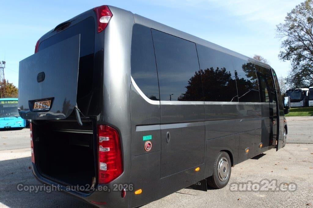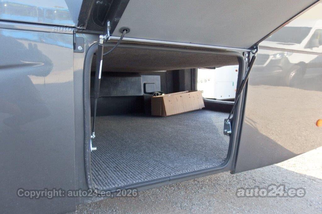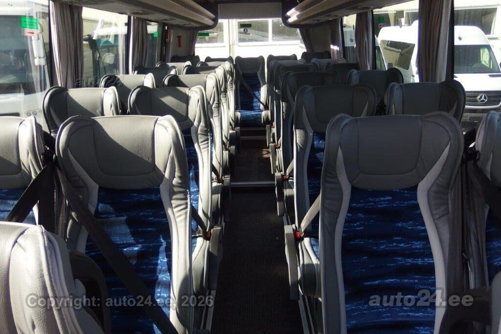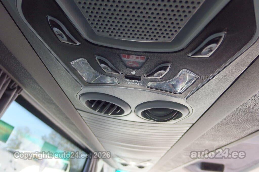 | Varustus: | 33+1+1 istekohta, kombineeritud istmepolster - nahk + tekstiil istmed poodiumil, retarder, Topeltklaasid , tumedad, juhikonditsioneer, salongi konditsioneer, Webasto Madrid 15 kw, salongiriiulid koos kohtventilatsiooni ja valgustusega, pagaziruum, taga ja küljel kardinad, tagurduskaamera, raadio-mikrofon-võimendi, USB pistik iga istme jaoks, lisaaku, digitaalne kell, külmik, |