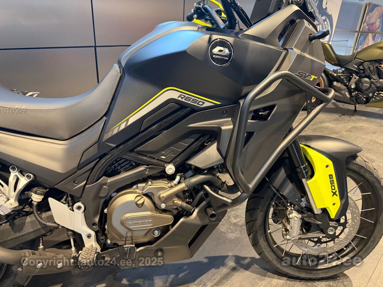 Avasta QJMotor SVT 650 X – keskkaalu adventure-touring mootorratas, mis ühendab modernse disaini, sportliku soorituse ja praktilise mitmekülgsuse. See on ideaalne ratas sõitjale, kes otsib usaldusväärsust, dünaamilisust ja emotsiooni igast kilomeetrist!, SVT 650 on väänderohke V2 645 cm3 mootoriga (V-Strom 650), Mootori võimsus 56.8 kW @ 9000 p/min, Pöördemoment 65 Nm @ 8000 p/min, Kütusepaak 20 liitrit, SVT 650 standardvarustus:, Kodarveljed, ilma siselohvita (ees 19, taga 17), Brembo pidurid, Marzocchi esiamordid, Rehvirõhu andurid, Käepideme soojendused, Sadula elektriline soojendus, Kukkumiskaitse raamid, LED tuled, Metallkaarega käekaitsed, USB voolupesa, LCD ekraan koos Bluetooth telefoniühendusega, Käigunäidik armatuuris, Reguleeritava kõrgusega esiklaas, Mootorratta hind koos kohvrikomplektiga 6990.- EUR, Lisainfo: https://qjmotor.ee/, Proovisõidu võimalus., Võimalus jätta vana mootorratas sissemaksuks., Bikepoint on QJ motori ametlik edasimüüja. Garantii 3 aastat!, |