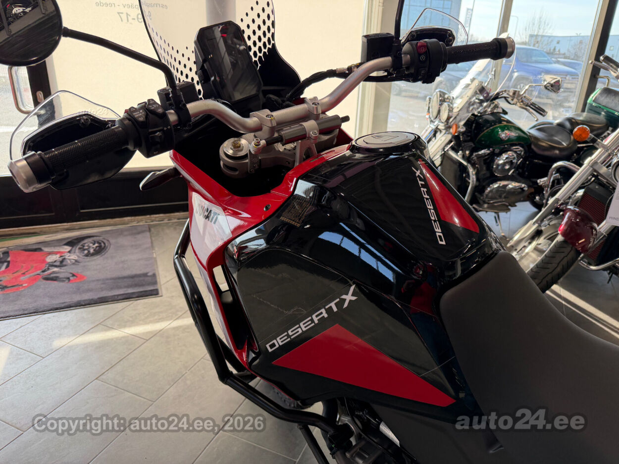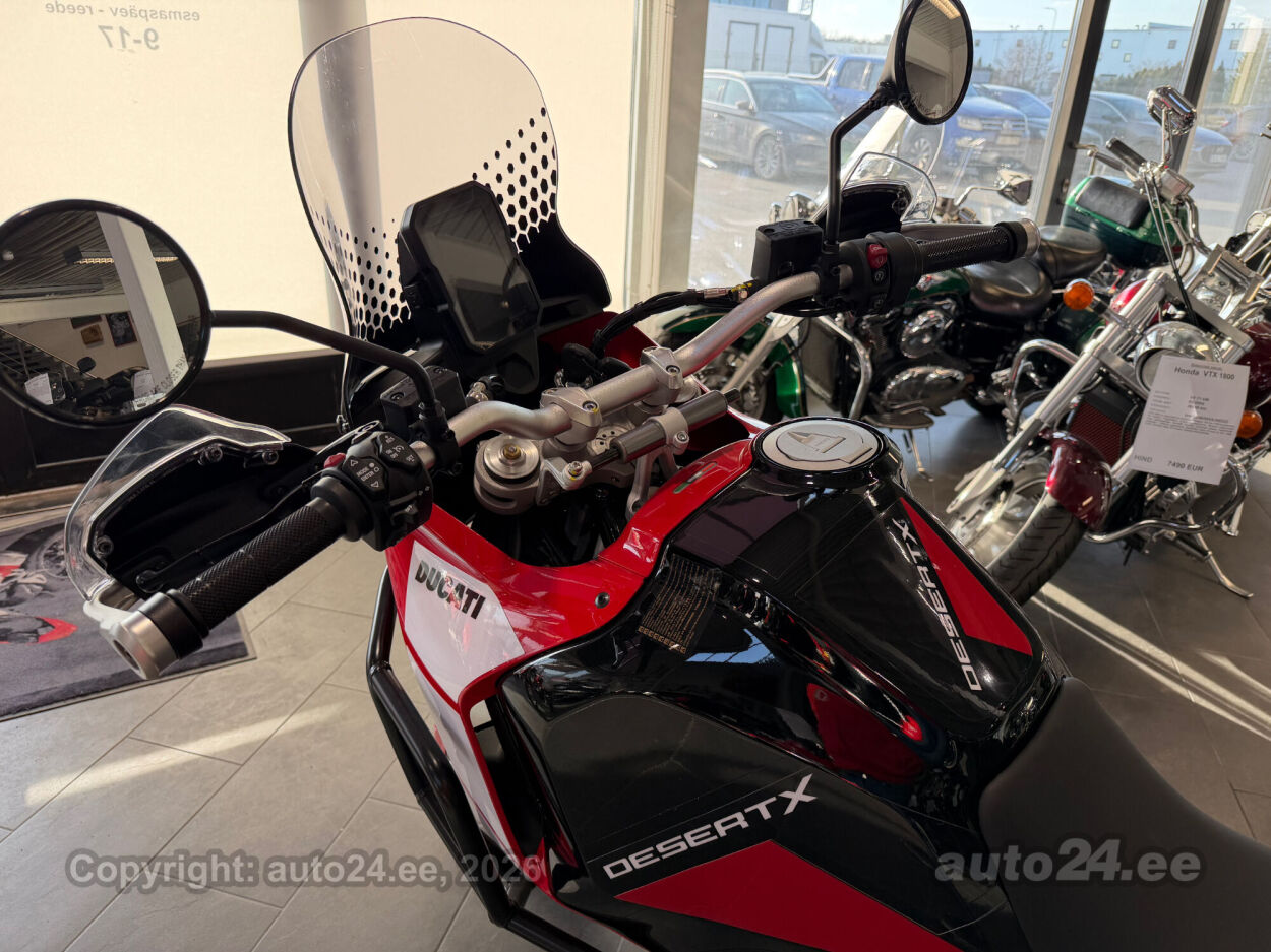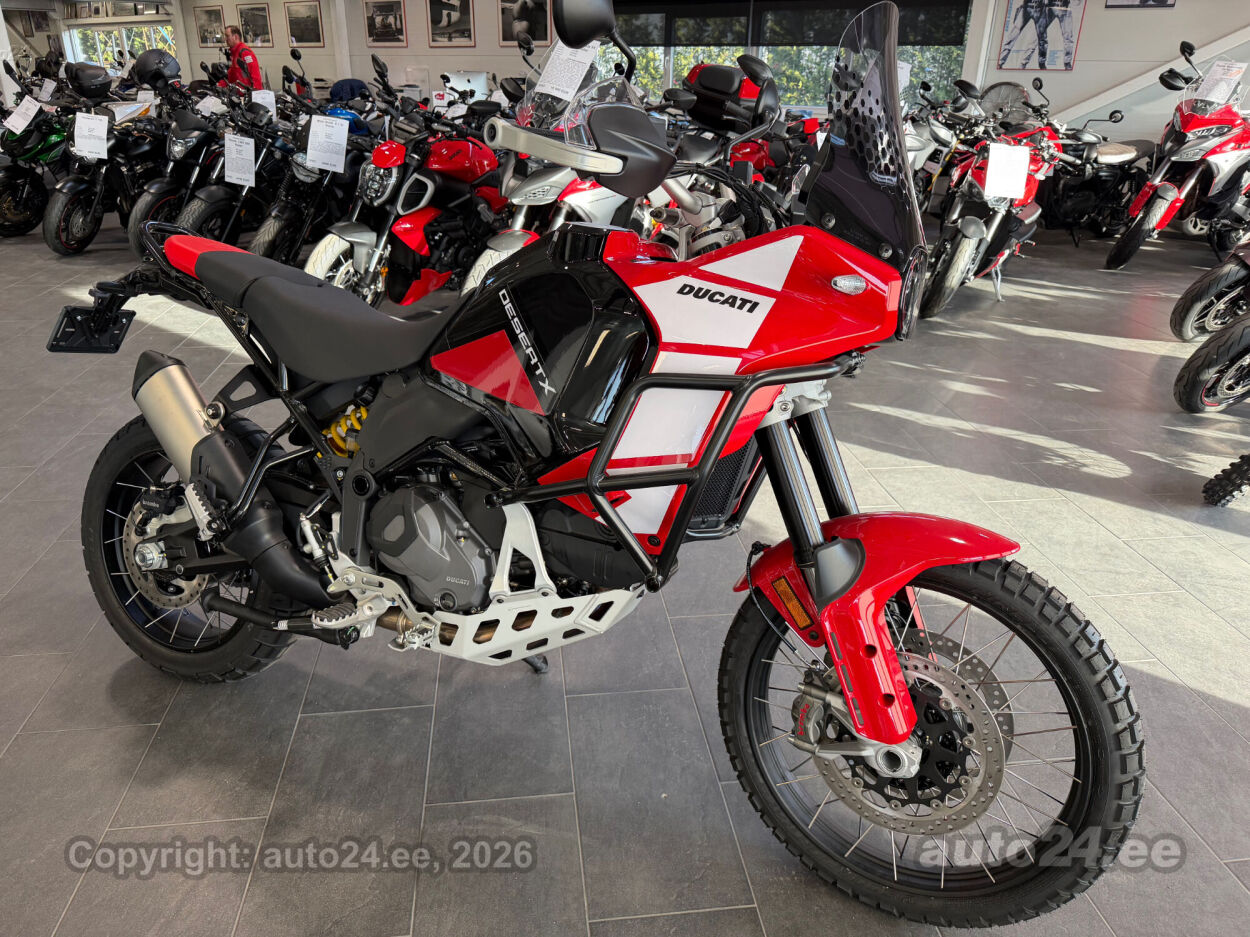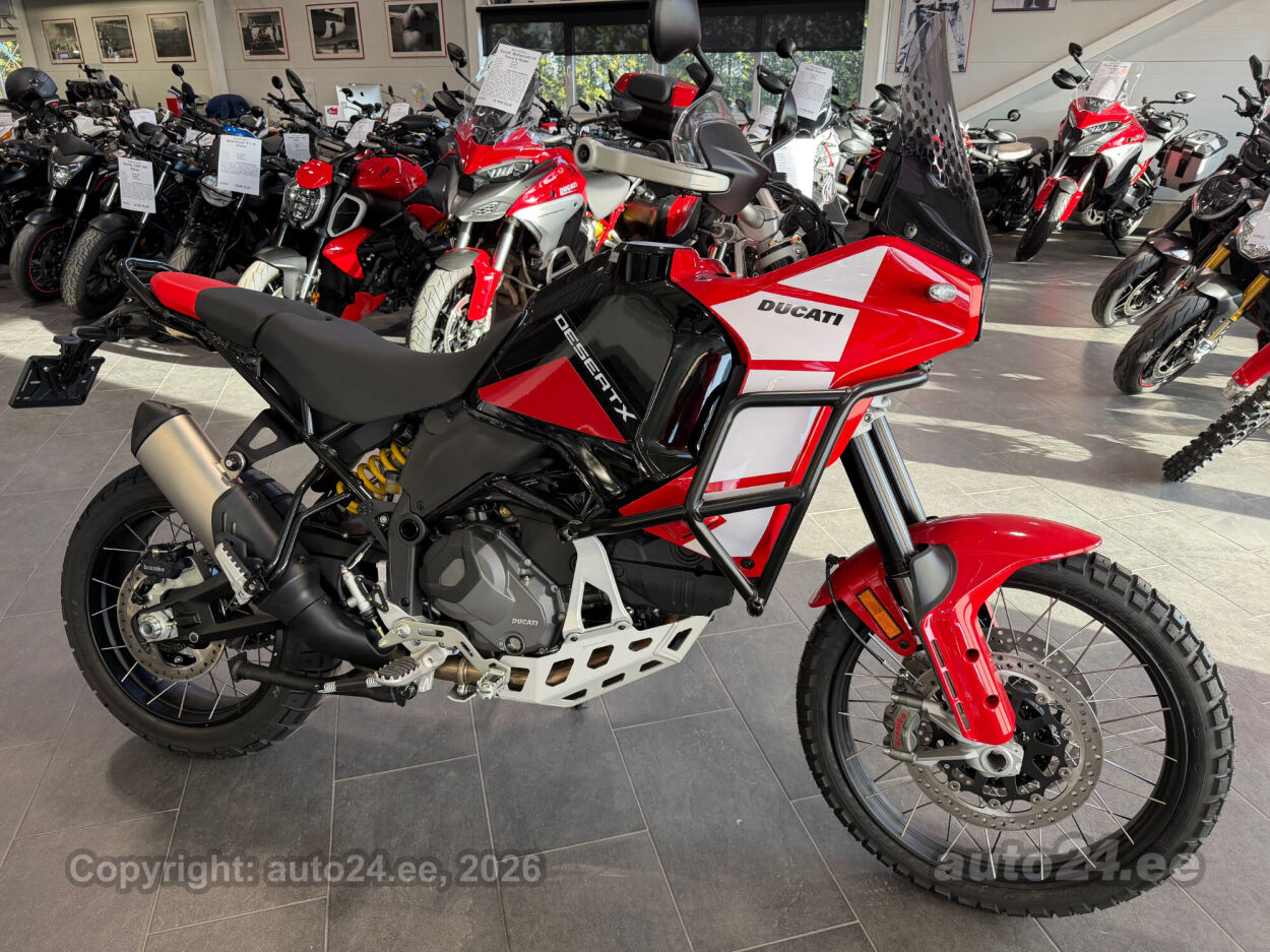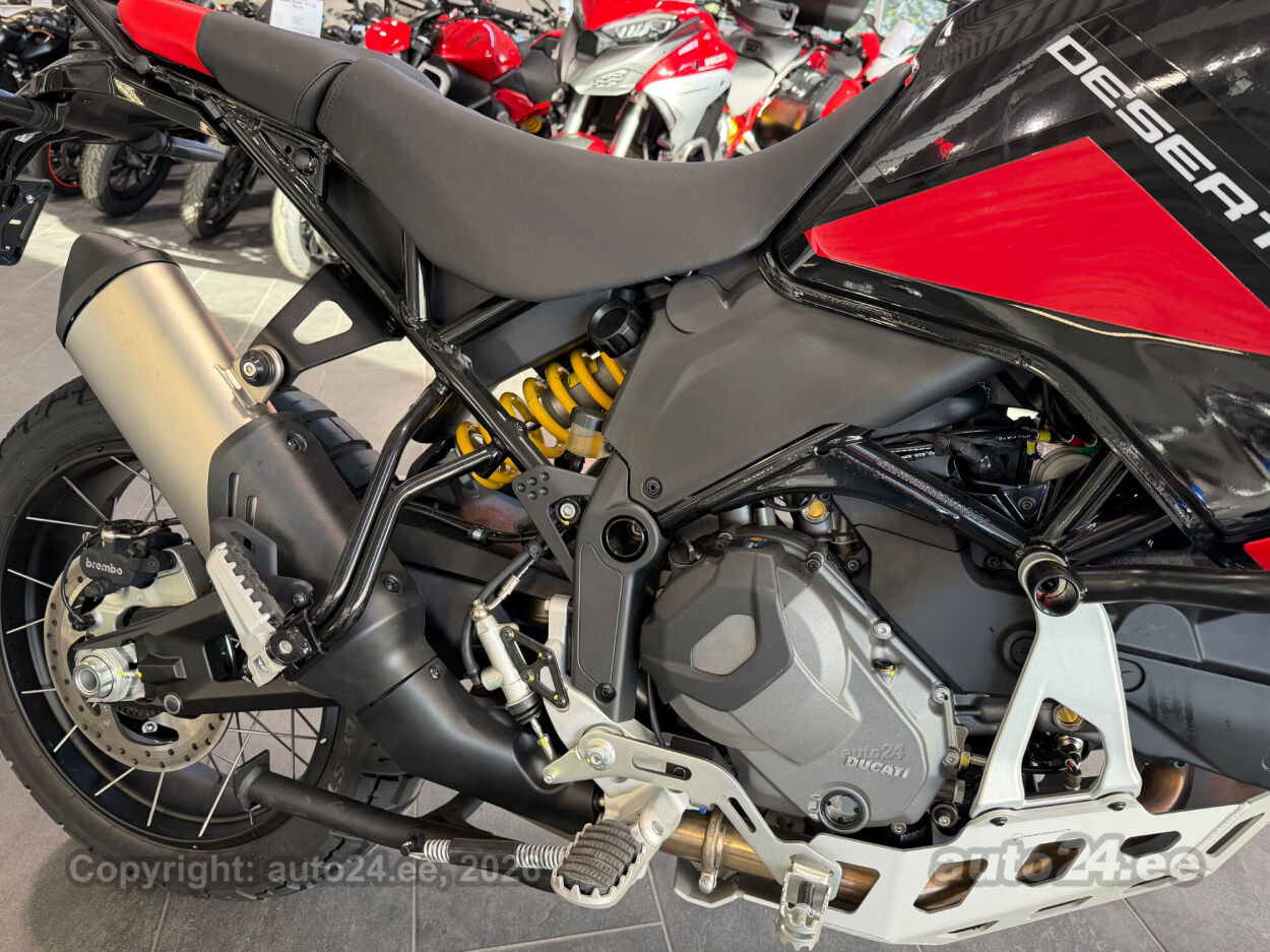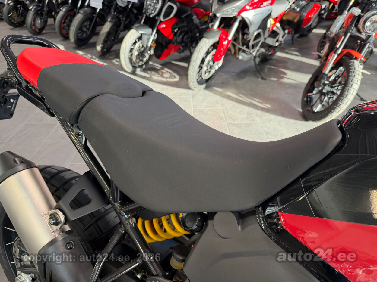 Discovery lisavarustus võrreldes tavamudeliga:, Käepidemesoojendused, Paksust alumiiniumist põhjakaitse, Keskhark, Kõrgem tuuleklaas, Kaitserauad, Lisaks korralik standardvarustuse pakett, mis sisaldab:, Seadistatavad sõidurezhiimid Rally, Enduro, Touring, Sport, Urban, Wet, Enduro, Kõikidel sõidurezhiimidel erinevad mootori võimsuse, mootori pidurdusjõu, wheelie, veojõukontrolli, ABS, QS seadistuse võimalused, Tagaratta ABS väljalülitatav, Elekrooniline gaas RbW, Ducati Safety Pack sis. Bosch kurvi-ABS ja veojõukontroll DTC, Ducati Wheelie Control DWC, Ducati QuickShifter DQS üles/alla, LED tuled, Püsikiirusehoidja, Automaatne suunatulede väljalülitus, Rooliamort, Ducati Brake Light äkkpidurduse hoiatus (DBL), USB voolupesa, Esiratas 21", rehvimõõt 90/90 R21, Tagaratas 18", rehvimõõt 150/70 R18, Ducati multimeediasüsteem DMS valmidus, Alarmivalmidus, "Turn by turn" navigatsioonisüsteemi valmidus, Tehasegarantii 4 aastat!!! |