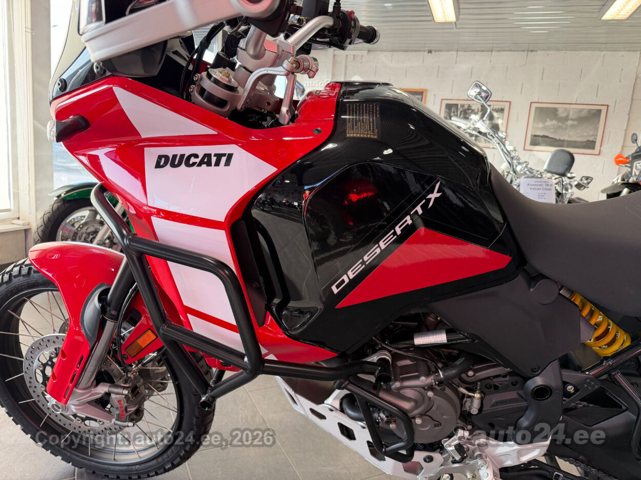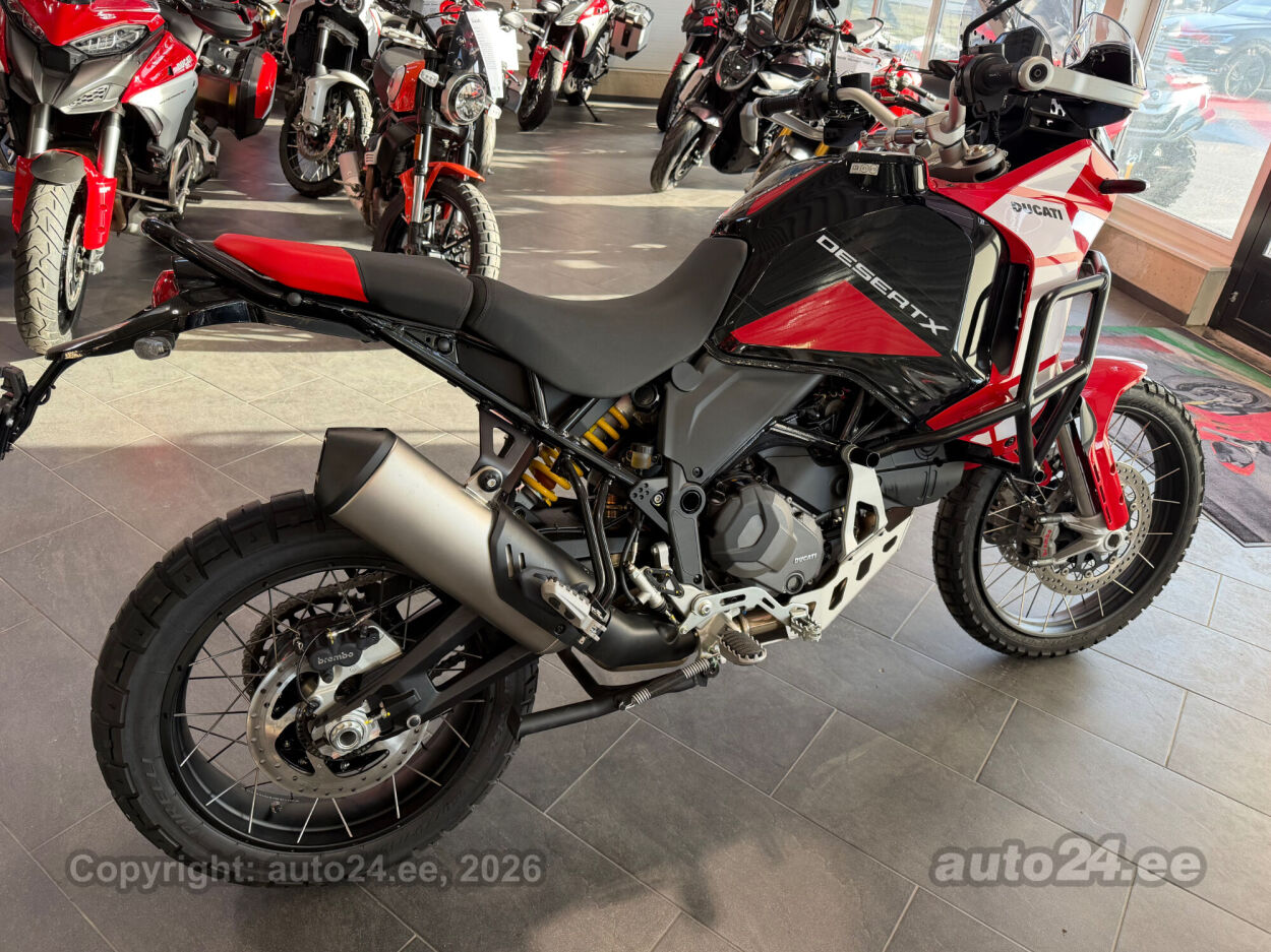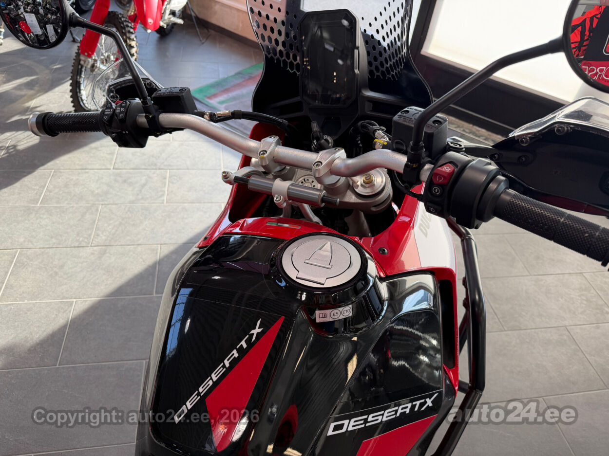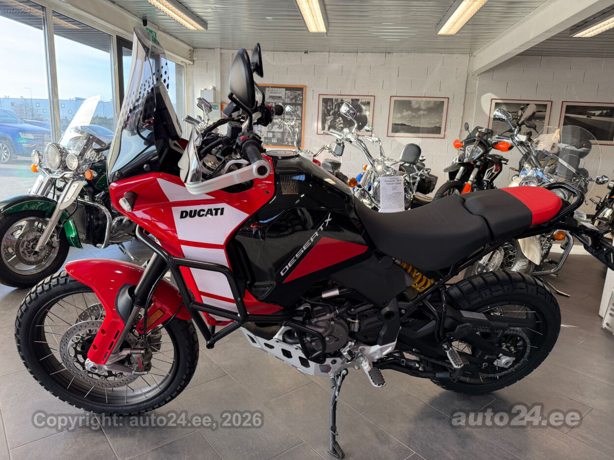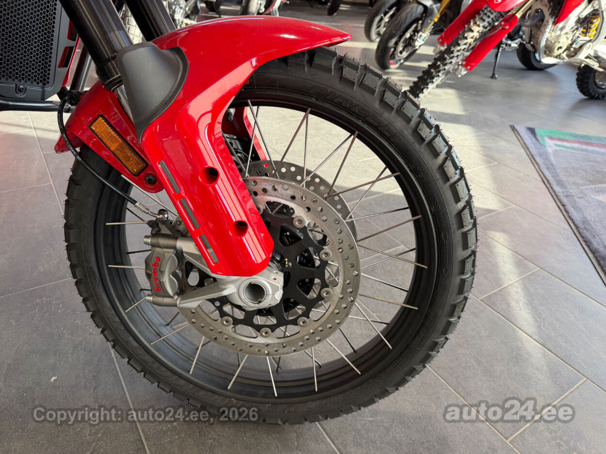 Discovery lisavarustus võrreldes tavamudeliga:, Käepidemesoojendused, Paksust alumiiniumist põhjakaitse, Keskhark, Kõrgem tuuleklaas, Kaitserauad, Lisaks korralik standardvarustuse pakett, mis sisaldab:, Seadistatavad sõidurezhiimid Rally, Enduro, Touring, Sport, Urban, Wet, Enduro, Kõikidel sõidurezhiimidel erinevad mootori võimsuse, mootori pidurdusjõu, wheelie, veojõukontrolli, ABS, QS seadistuse võimalused, Tagaratta ABS väljalülitatav, Elekrooniline gaas RbW, Ducati Safety Pack sis. Bosch kurvi-ABS ja veojõukontroll DTC, Ducati Wheelie Control DWC, Ducati QuickShifter DQS üles/alla, LED tuled, Püsikiirusehoidja, Automaatne suunatulede väljalülitus, Rooliamort, Ducati Brake Light äkkpidurduse hoiatus (DBL), USB voolupesa, Esiratas 21", rehvimõõt 90/90 R21, Tagaratas 18", rehvimõõt 150/70 R18, Ducati multimeediasüsteem DMS valmidus, Alarmivalmidus, "Turn by turn" navigatsioonisüsteemi valmidus, Tehasegarantii 4 aastat!!! |