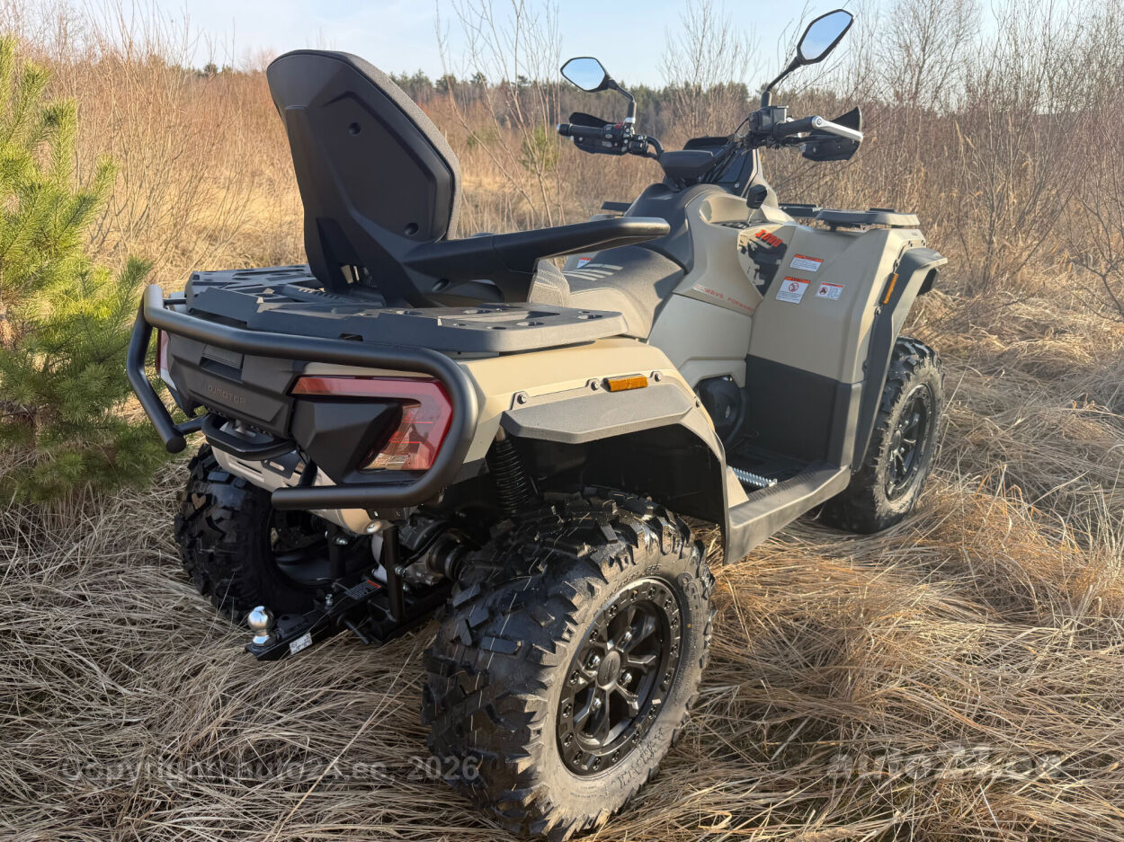 Varustus: Saadaval Camoflage värv, hall ja khaki! 976 cm3 vedelikjahutusega V2, Võimsus 65 kW, Pikkus 2371mm, Laius 1274mm, Teljevahe 1480mm, Tühikaal 485 kg, Kütusepaak 25 L, Elektriline vints, Elektriline roolivõimendi, Valgustusega nupud juhtraual, Bluetooth ühendus telefonile, Kiirkinnitused lisavarustusele, Voolupesad USB ja sigaretisüütaja, Käiguvaheti lukustus, Panipaik taga, Seljatugi ja käetoed kaasreisjale, Kaitserauad ees ja taga, Garantii 3 aastat või 5000 km, Iron Balticu kiirliitega 1500mm lumesahk kaasa soodushinnaga, vaid 600 eur! Tegemist väga lihtsasti kasutava tippmudeliga Iron Balticu tootevalikust. Letihind koos kinnitustega üle 1000eur!,