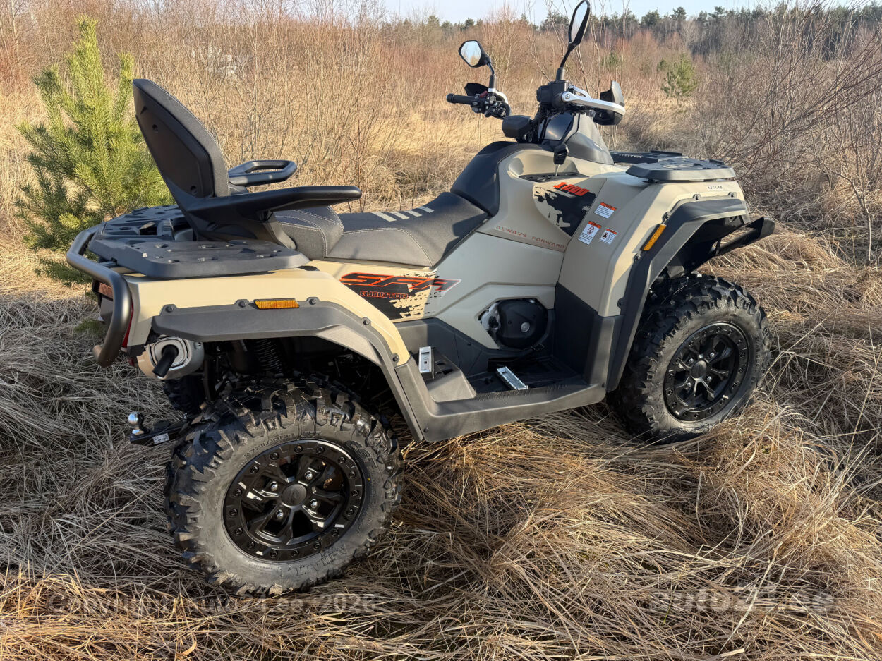 Kõik mootorrattad tehniliselt kontrollitud! Anname garantii meilt ostetud mototehnikale! Vahetusvõimalus - too oma vana ratas meile vahetusse! Vaata lisa www.bikepoint.ee! QJMOTOR SFA 1000 EFI EPS on QJMOTORi tippklassi neljarattaline ATV, mis on loodud nõudlikeks maastikutingimusteks ja professionaalseks kasutuseks. Masinat veab võimas 1000 cm3 V2 EFI mootor, mille maksimaalne võimsus on 92,5 hj (65 kW). CVT-automaatkast, elektriline 2WD/4WD lõlitus ja lukustatav diferentsiaal tagavad sujuva ja kindla liikumise. Raam on valmistatud tugevast terastoruprofiilist (põhi 32 mm / 25 mm, ülaosa 100x40 mm), mis tagab maksimaalse jäikuse ja vastupidavuse. Vedrustus on sõltumatu – ees topelt õõtshoovad, taga sepistatud õõtshoovad, kõik liigendpunktid on määrdeniplitega. Esi- ja tagasillal on stabilisaatorvardad, mis parandavad stabiilsust. Sõidumugavuse tagavad reguleeritavad Yuani gaasiamortisaatorid (õlisurve ja vedrupinge seadistus). SFA 1000-l on 14-tollised alumiiniumveljed beadlock-süsteemiga, mis võimaldab madala rehvirõhuga sõitu ilma rehvi veljelt lahkumise riskita. 1480 mm teljevahe, mugav kaassõitjaiste käepidemete ja seljatoega ning lisavarustuse paigaldust võimaldavad kiirkinnitid loovad eeldused nii reisiks kui tööks. Kõrge kliirens, elektrooniline roolivõimendi (EPS) ja optimeeritud mõõtmed teevad sellest masinast ühe oma klassi konkurentsivõimelisema valiku. Iron Balticu kiirliitega 1500mm lumesahk kaasa soodushinnaga, vaid 600 eur! ATV hind luhesahaga 9190.-. Tegemist väga lihtsasti kasutava tippmudeliga Iron Balticu tootevalikust. Letihind koos kinnitustega üle 1000eur! ATV asub Bikepoint kaupluses, proovisõidu võimalus. Tehasegarantii 3 aastat. T3b laiend mudeli nime lõpus tähendab, et sõiduk on tänavalegaalne ning registreeritav väiketraktorina. Väiketraktorina (T3b) registreeritud ATV juhtimiseks on vajalik kehtiv B-kategooria juhtimisõigus Kõikidel sõidukitel on tootja garantii 3 aastat või kuni läbisõiduni 5000km.
