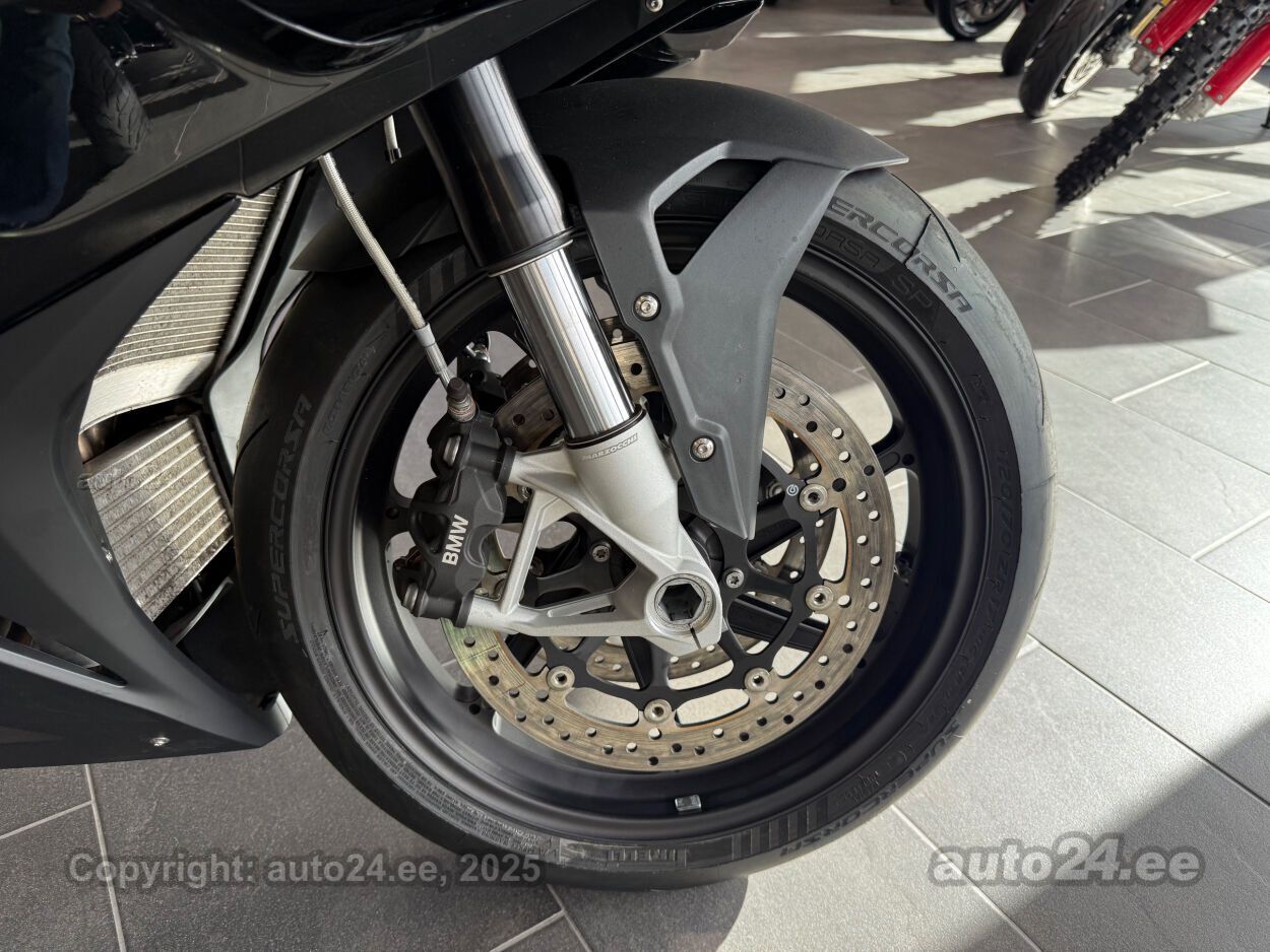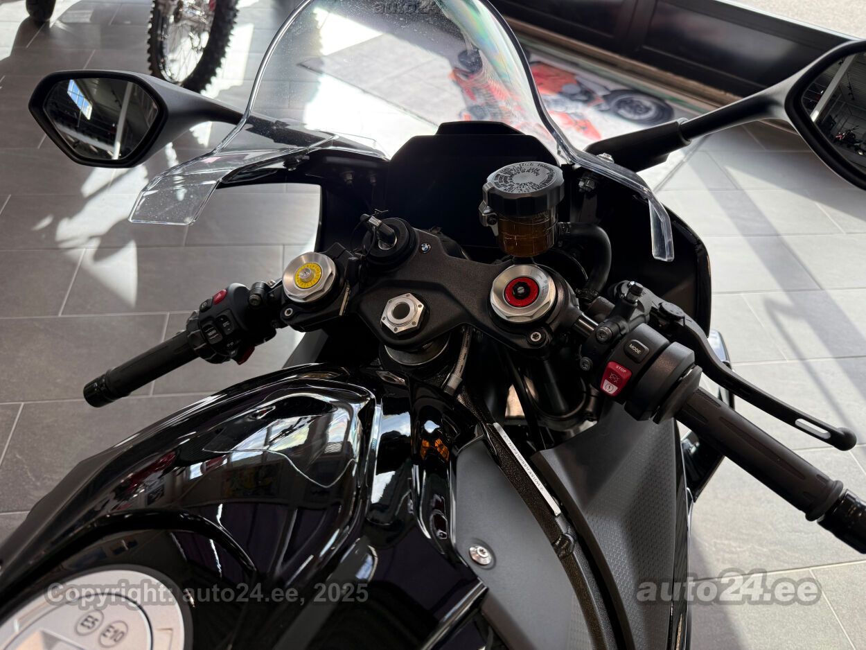 Varustus: Mootor: 999 cm3 R4, varustatud BMW ShiftCam variatiivse nukkvõlli juhtimisega, 205 hj @ 13 000 p/min, 113 Nm (~ 83 lb-ft) @ ~ 11 000 p/min, Quickshifter üles alla, Slippersidur Elektroonika: Dynamic Traction Control (DTC), ABS pidurid, Slide Control ja Brake Slide Assist (stabiilsuse lisatuge kurvides ja pidurdamisel), Nelji sõidurezhiimi: Rain, Road, Dynamic, Race, 6,5-tolline TFT-värvinäidik, Winglet’id aerodünaamilise downforce’i loomiseks suurel kiirusel, Mootori variatiivne nukkvõlli juhtimine (ShiftCam) tagab parema pöördemomendi ala- ja keskpöördel ning samas säilitab tipuvõimsuse, biplane winglet’id parandavad stabiilsust ülikiirustel, vähendades esiratast tõusmist ja suurendades allapoole suunatud jõudu, võimas suhe kaalu ja võimsuse vahel, BMW S1000RR on tehnoloogiliselt tipptasemel superbike, mis ühendab kõrge võimsuse elegantse elektroonikaga, Eestist uuena ostetud, 1 omaniku ratas, kehtiva tehasegarantiiga, Paigaldatud GB racingu mootorikaitsmed,