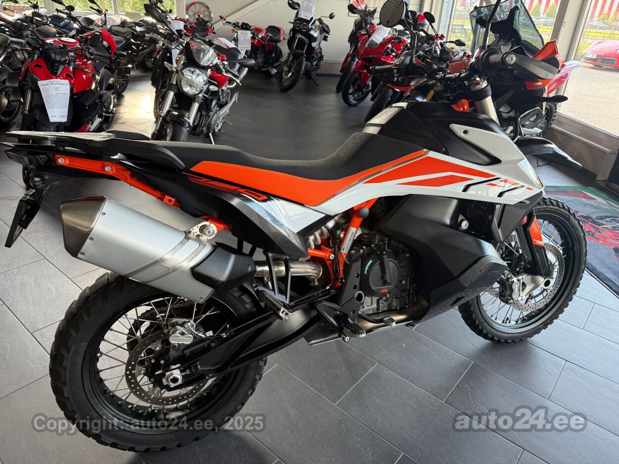 Varustus: 799 cm3 vedel­jahutusega R2, 95 hj @ 8 000 p/min, 88 Nm @ 6 600 p/min, 6-käiguline manuaal, Ride-by-wire gaas, Rain, Street, Offroad ja Rally sõidurezhiimid, Traction control, Rally pakett, Kurvi ABS koos võimalusega tagumist ABS-i osaliselt välja lülitada offroad-sõiduks, TFT näidik, Mootori kompaktne konstruktsioon ja tasakaalustatud võimsus-pöördemoment annavad sujuva, kuid jõulise reaktsiooni nii asfalt- kui raskeoludes, KTM 790 Adventure paistab silma kui mitmekülgne masin, mis ühendab tõsise maastikuvõimekuse ning tänavasõidu mugavuse, see on tehniliselt võimekas ja täis nutikaid lahendusi, mis teevad sõidu nii pingevabaks kui ka nauditavaks igas olukorras,