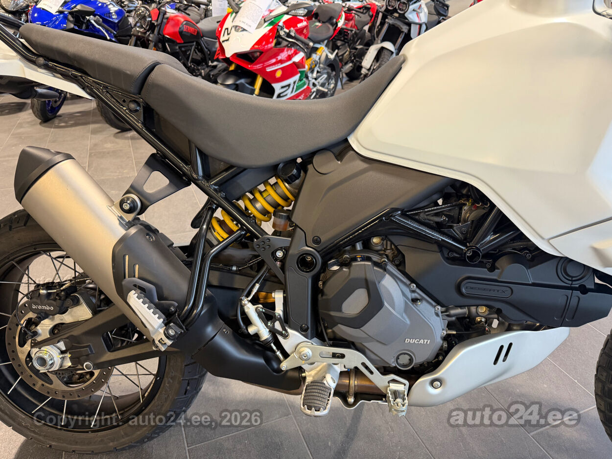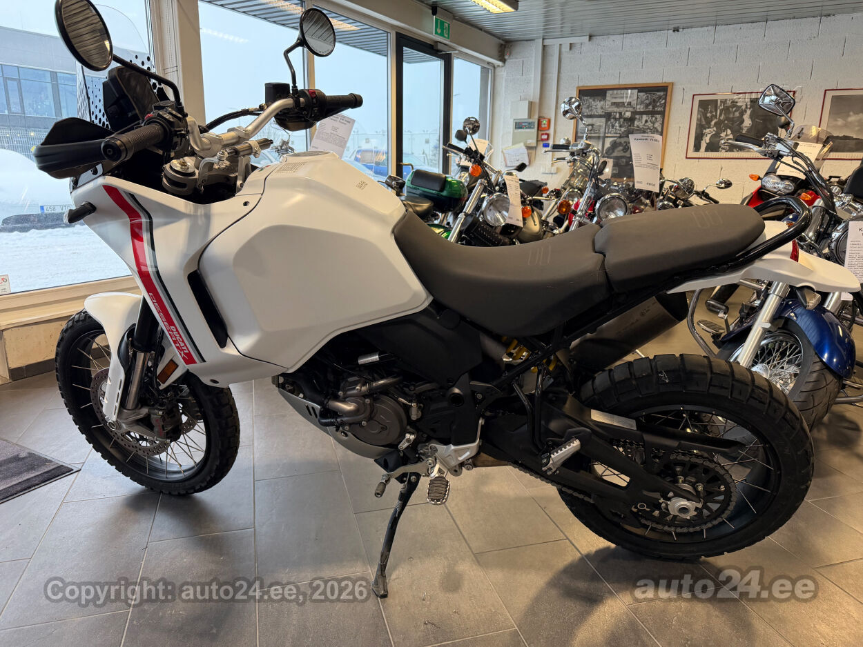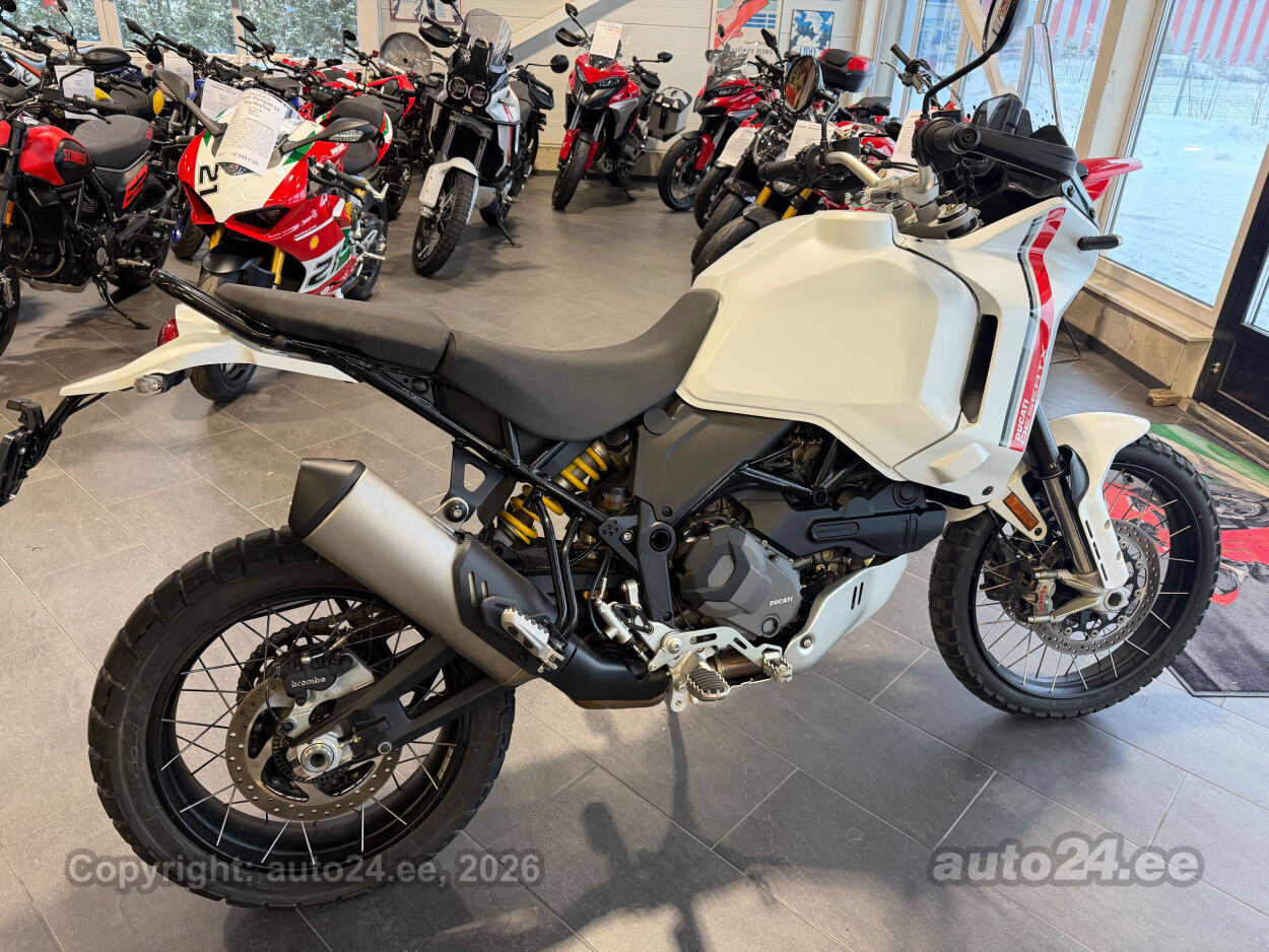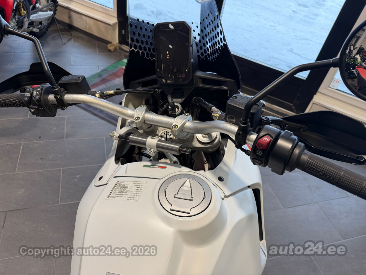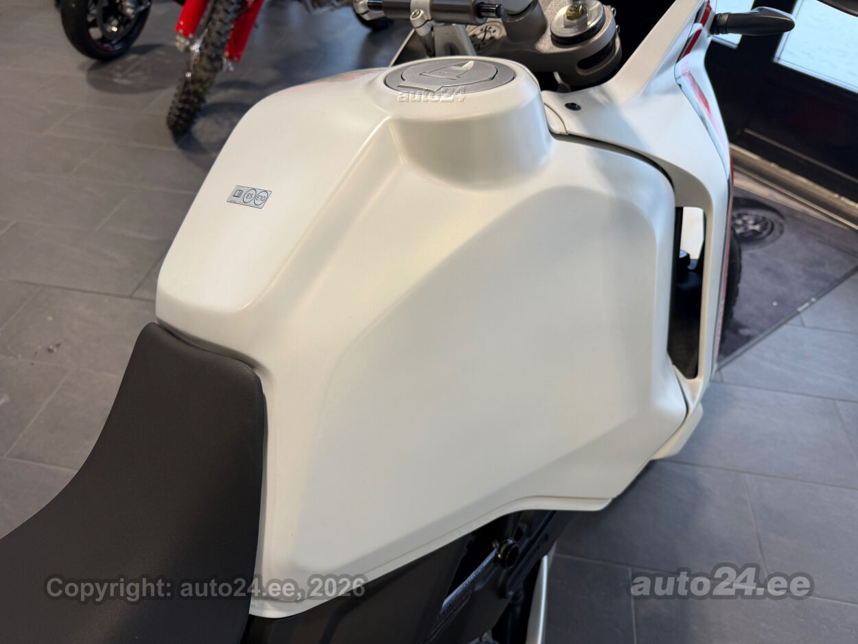 Korraliku standardvarustuse paketiga, mis sisaldab:, Seadistatavad sõidurezhiimid Rally, Enduro, Touring, Sport, Urban, Wet, Enduro, Kõikidel sõidurezhiimidel erinevad mootori võimsuse, mootori pidurdusjõu, wheelie, veojõukontrolli, ABS, QS seadistuse võimalused, Tagaratta ABS väljalülitatav, Elekrooniline gaas RbW, Ducati Safety Pack sis. Bosch kurvi-ABS ja veojõukontroll DTC, Ducati Wheelie Control DWC, Ducati QuickShifter DQS üles/alla, LED tuled, Püsikiirusehoidja, Automaatne suunatulede väljalülitus, Rooliamort, Ducati Brake Light äkkpidurduse hoiatus (DBL), USB voolupesa, Esiratas 21", rehvimõõt 90/90 R21, Tagaratas 18", rehvimõõt 150/70 R18, Ducati multimeediasüsteem DMS valmidus, Alarmivalmidus, "Turn by turn" navigatsioonisüsteemi valmidus, Värskelt hooldatud, kehtiv tehasegarantii!!!! |