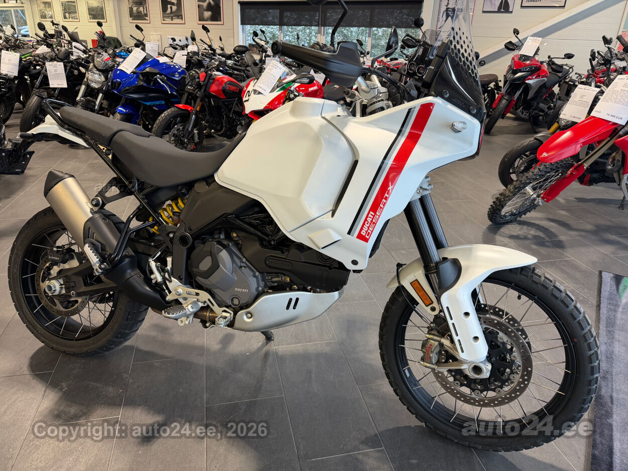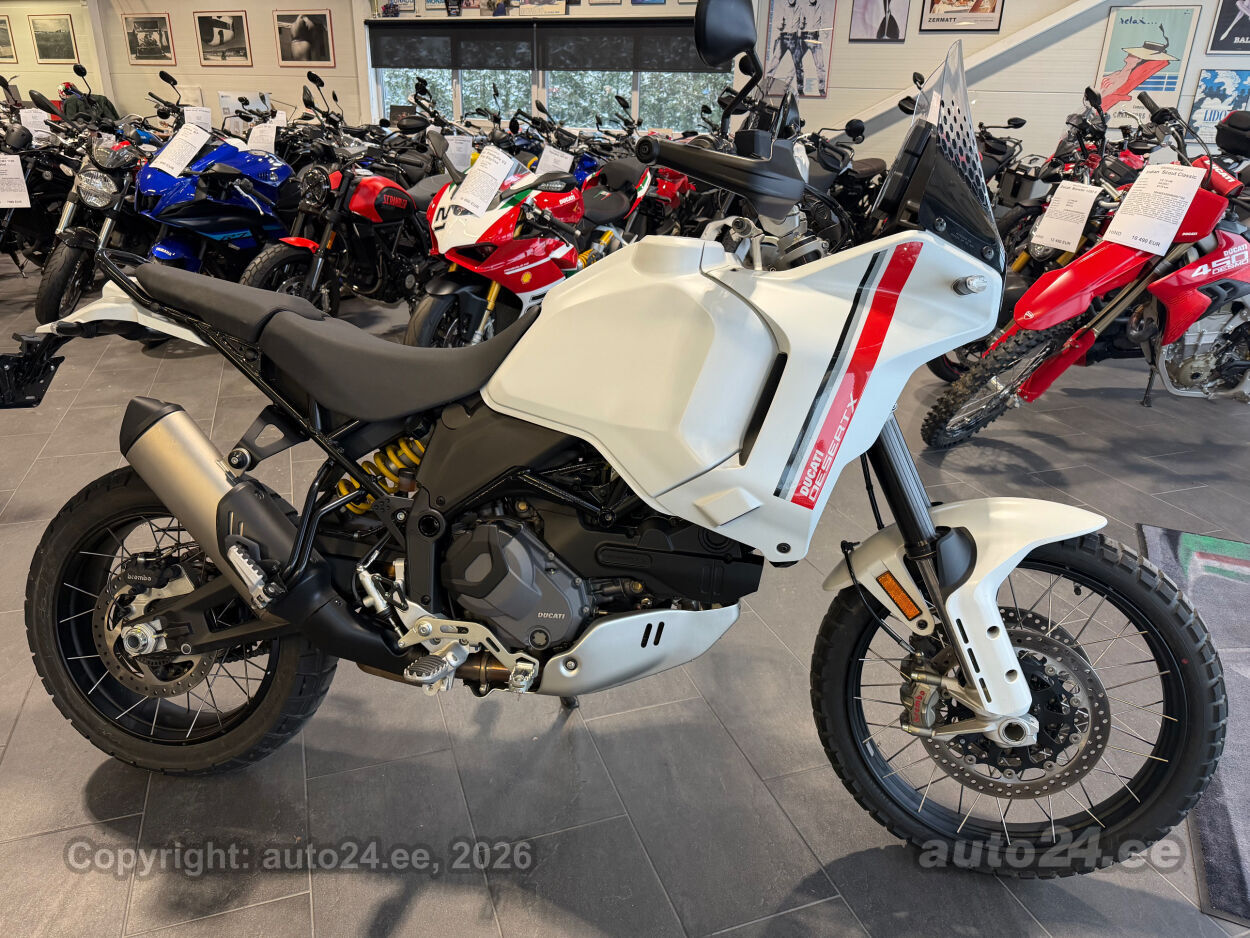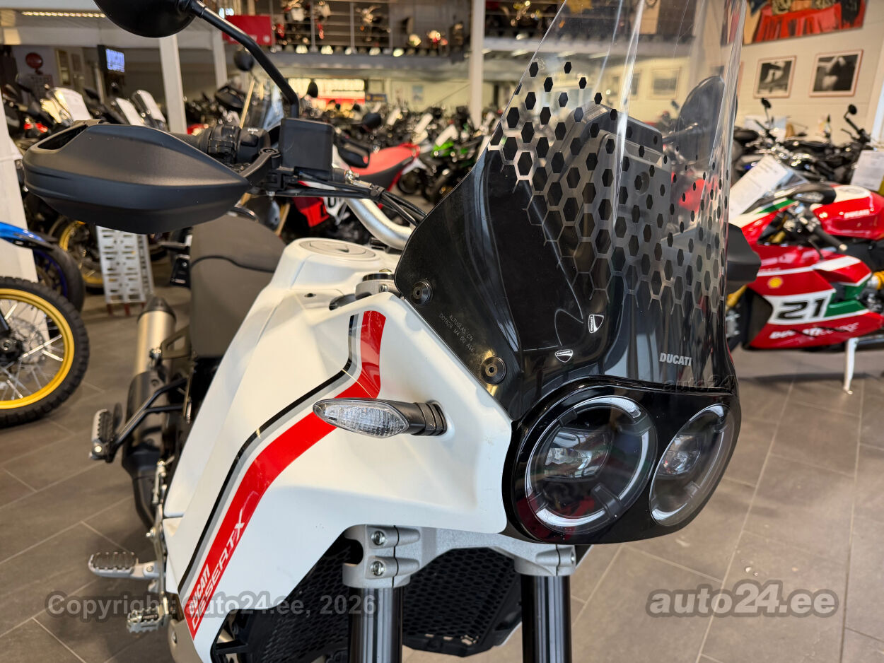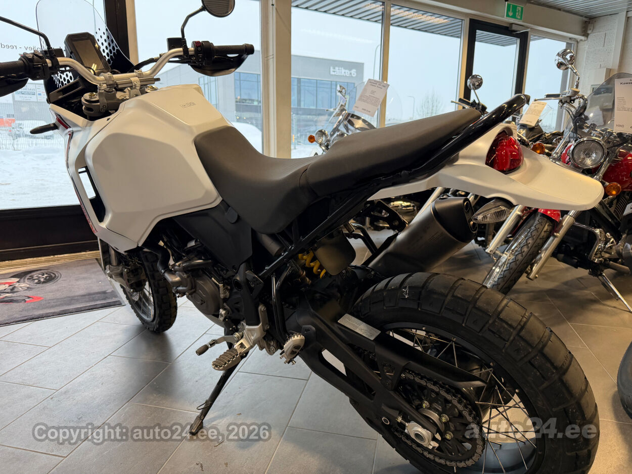 Korraliku standardvarustuse paketiga, mis sisaldab:, Seadistatavad sõidurezhiimid Rally, Enduro, Touring, Sport, Urban, Wet, Enduro, Kõikidel sõidurezhiimidel erinevad mootori võimsuse, mootori pidurdusjõu, wheelie, veojõukontrolli, ABS, QS seadistuse võimalused, Tagaratta ABS väljalülitatav, Elekrooniline gaas RbW, Ducati Safety Pack sis. Bosch kurvi-ABS ja veojõukontroll DTC, Ducati Wheelie Control DWC, Ducati QuickShifter DQS üles/alla, LED tuled, Püsikiirusehoidja, Automaatne suunatulede väljalülitus, Rooliamort, Ducati Brake Light äkkpidurduse hoiatus (DBL), USB voolupesa, Esiratas 21", rehvimõõt 90/90 R21, Tagaratas 18", rehvimõõt 150/70 R18, Ducati multimeediasüsteem DMS valmidus, Alarmivalmidus, "Turn by turn" navigatsioonisüsteemi valmidus, Värskelt hooldatud, kehtiv tehasegarantii!!!! |
