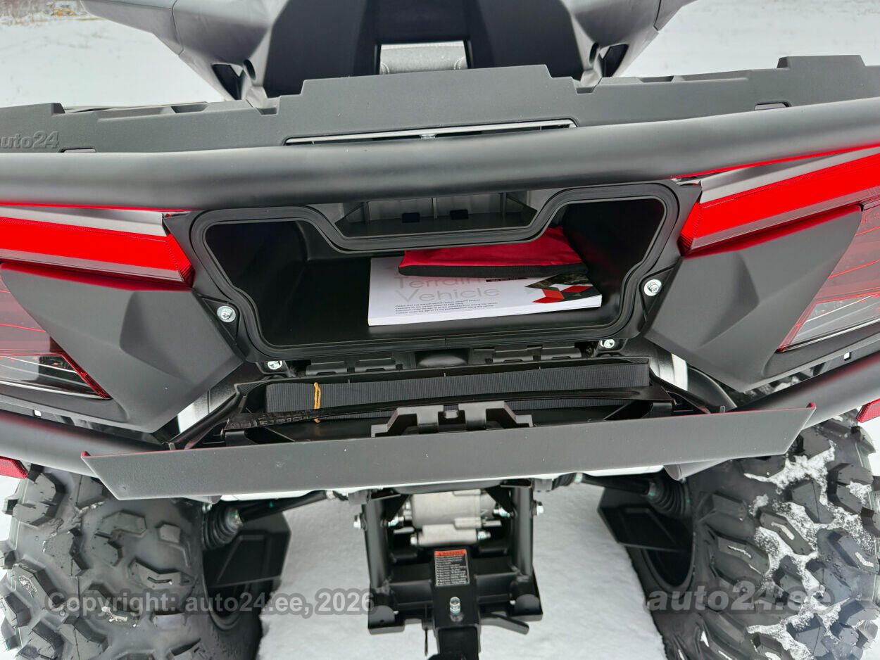 577 cm3 vedelikjahutusega ühesilindriline mootor, Võimsus 33 kW, Elektriline vints, Elektriline roolivõimendi, Pikkus 2330mm, Laius 1274mm, Teljevahe 1480mm, Tühikaal 450 kg, Kütusepaak 25 L, Valgustusega nupud juhtraual, Bluetooth ühendus telefonile, Kiirkinnitused lisavarustusele, Voolupesad USB ja sigaretisüütaja, Käiguvaheti lukustus, Panipaik taga, Seljatugi ja käetoed kaasreisjale, Kaitserauad ees ja taga, Garantii 3 aastat või 5000 km, |