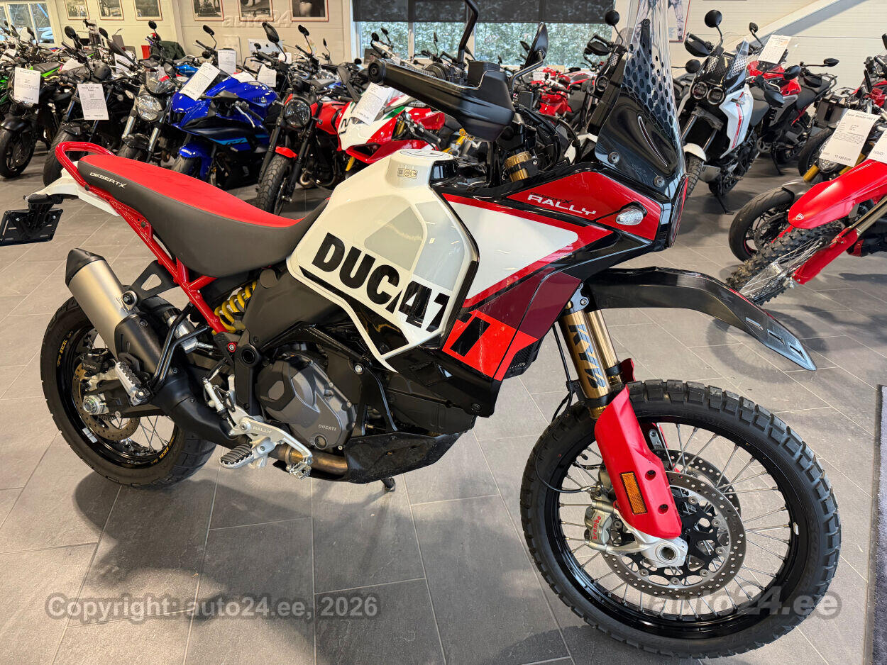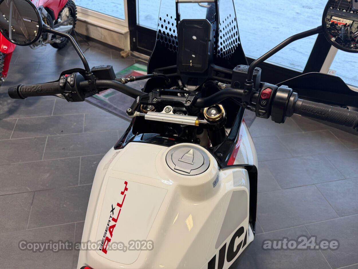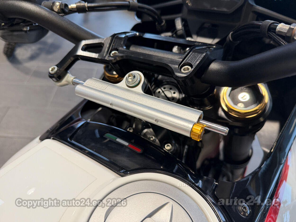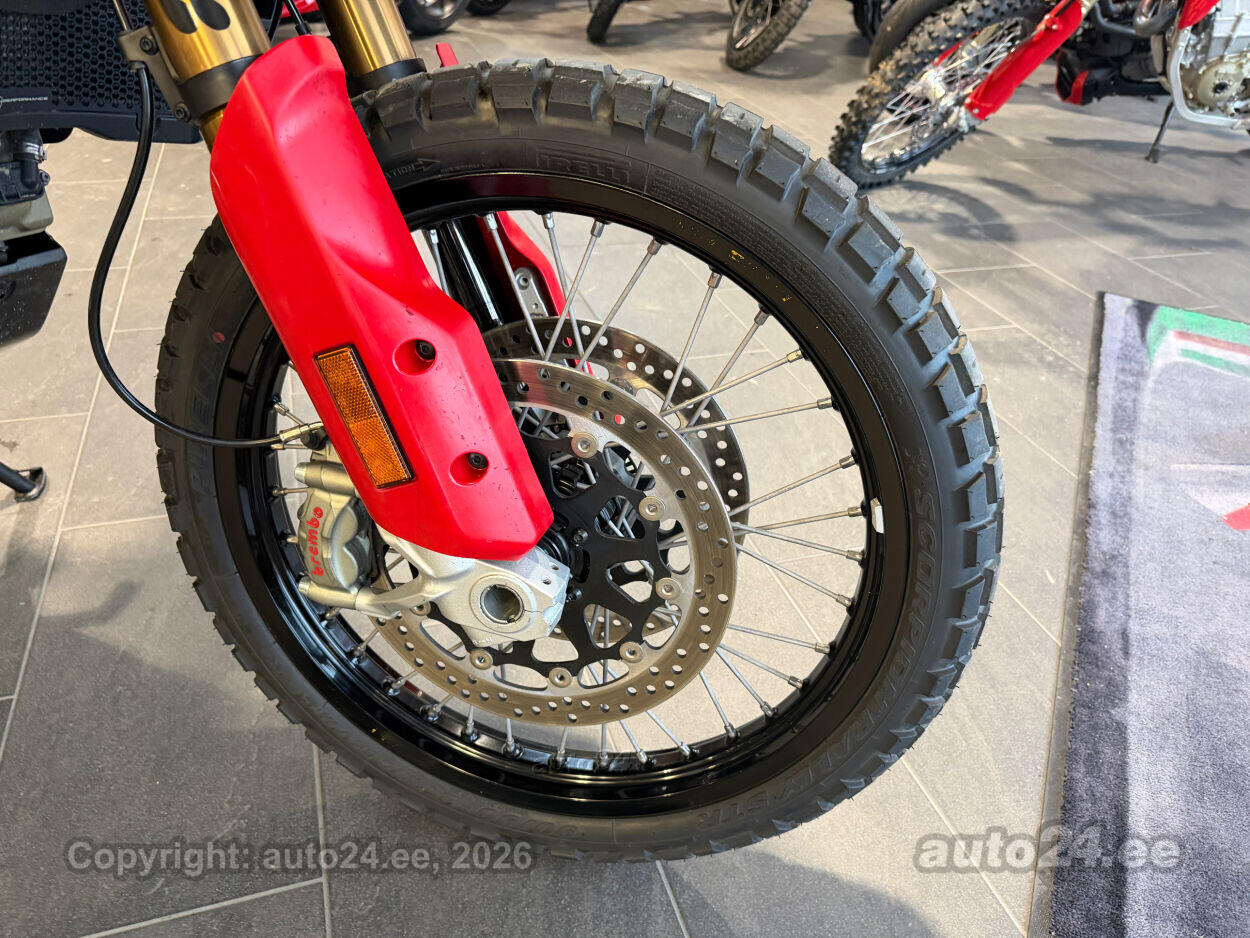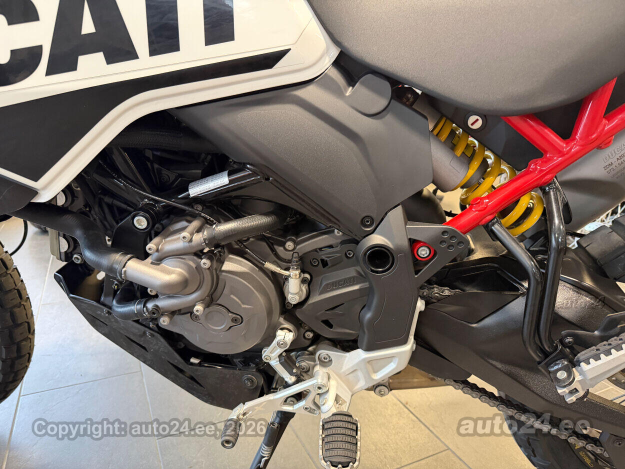 937 cm3 Ducati Testastretta 11° L-twin** mootor, 110 hj @ 9 250 p/min ja 92 Nm @ 6 500 p/min – võimas, lineaarne ja off-road-sõbralik jõuallikas, mis annab tugeva väljundi nii kruusal kui ka maanteel, 6-käiguline käigukast koos Ducati Quickhhifteriga (DQS up/down), mis võimaldab kiireid ja sujuvaid käiguvahetusi nii kiirendades kui ka aeglasel maastikusõidul, Terastoruraam koos tugeva alumiiniumist kahepoolse tagakiigega tagab optimaalse tasakaalu tugevuse ja juhitavuse vahel, Professionaalne KYB off-road vedrustus: ees 48 mm suletud kassett-fork, taga 46 mm kolviga monoshock – mõlemad täisreguleeritavad ja projekteeritud maksimaalseks rattareisideks ning hüpeteks, Ergonoomiline ja aggressiivne off-road ratas kõrge esitorniga, vaba liikumisruumiga ja spetsiaalse ralliistmega, mis võimaldab vaba liikumist ja lihtsalt kontrollitavad sõitu tehnilisematel radadel, Kerged ja tugevad Takasago Excel rattad (21” ees, 18” taga), mis taluvad karmimat sõitu ja vähendavad ratta massi, Tipptasemel elektroonika pakett koos 6 erineva sõidurezhiimiga (Sport, Touring, Urban, Wet, Enduro, Rally), kõiki rezhiime on võimalik oma käe järgi peenhäälestada, Kurvi ABS, Ducati 8 astmeline veojõukontroll DTC, Wheelie Control, mootori pidurdusjõukontroll ja püsikiirusehoidja – maksimaalne häälestusvõimalus igale maastikule, 21 liitrine kütusepaak pika sõiduulatusega + võimalus lisapaagile, selgelt loetav TFT-ekraan, nutitelefoni ühenduse ja turn-by-turn GPS iga (läbi BT), Kõik need omadused teevad Ducati DesertX Rally-st ühe kõige võimekama seiklusmootorratta, mis on praktikas valmis nii kruusa, liiva, kivise maastiku kui ka pikkadeks teekondadeks ilma kompromissideta! |