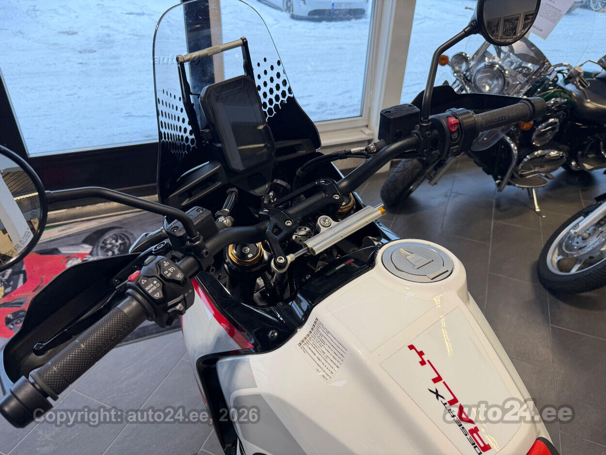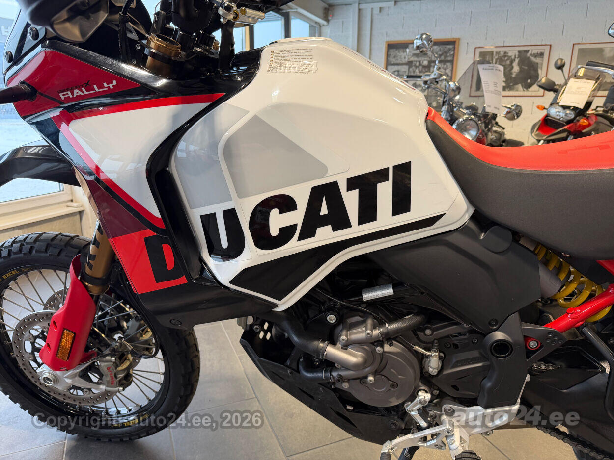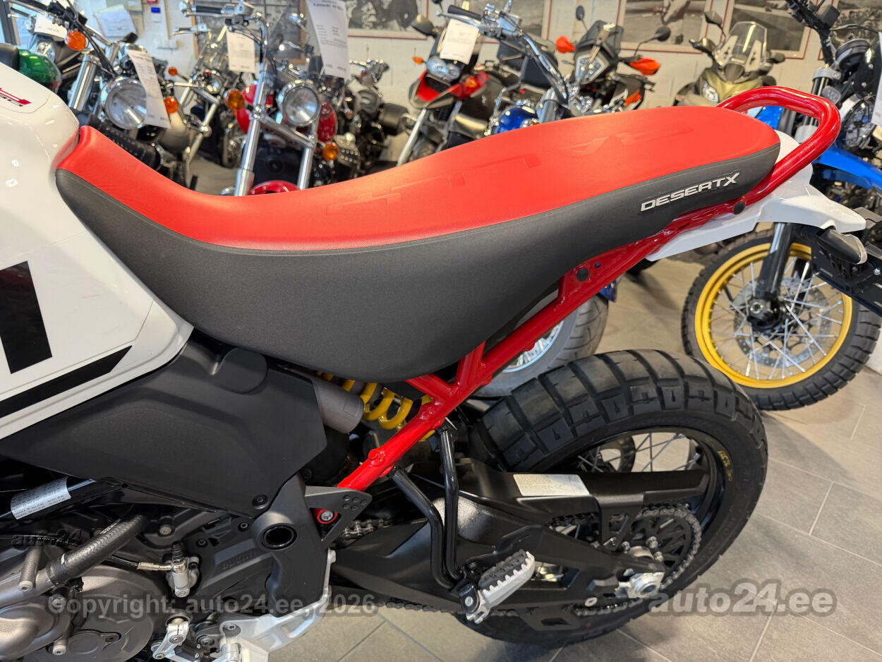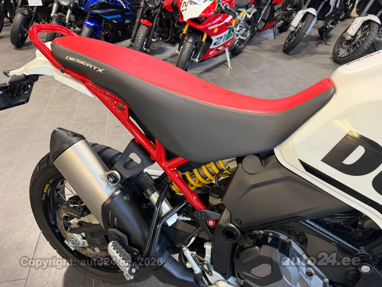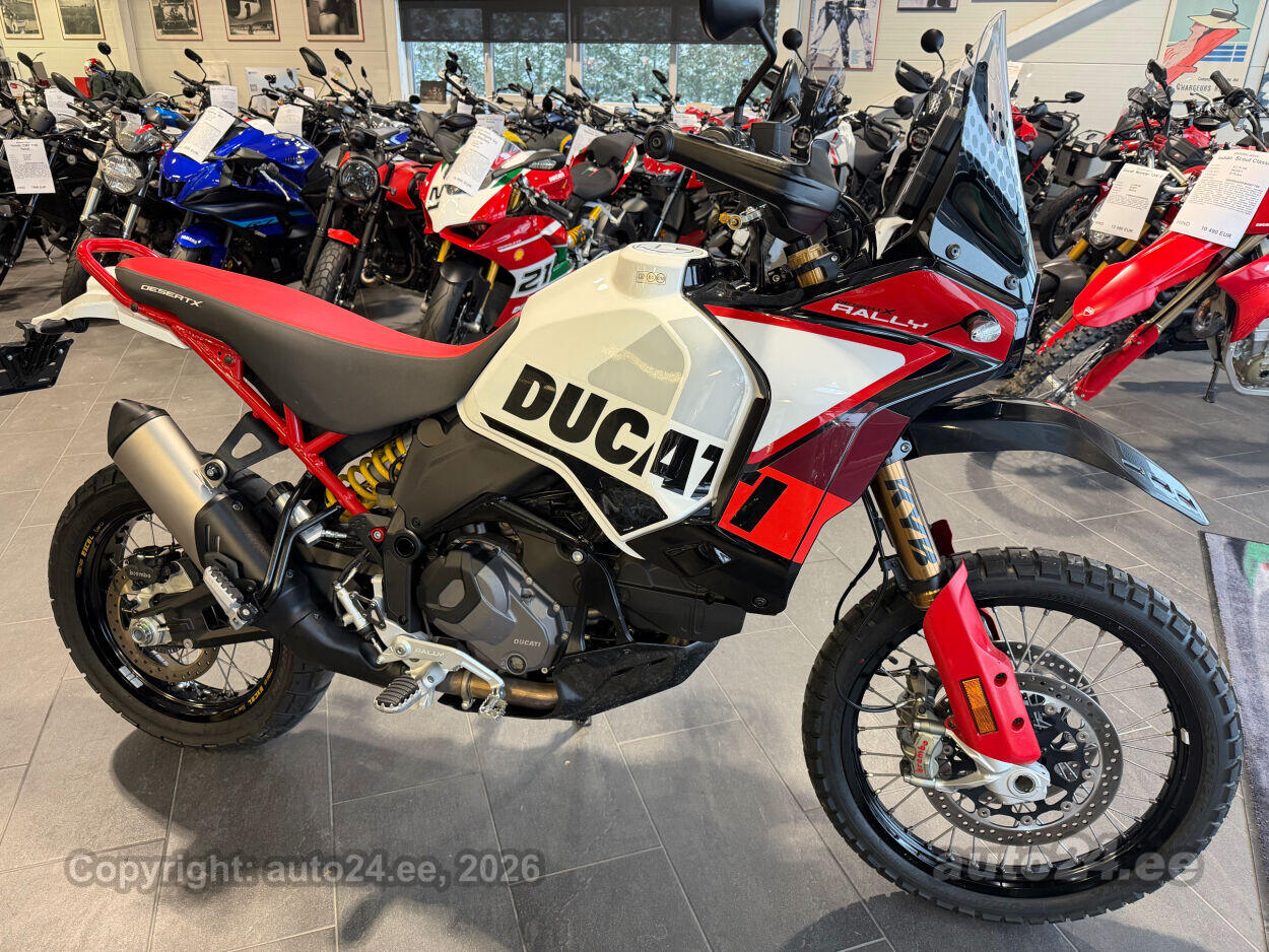 937 cm3 Ducati Testastretta 11° L-twin** mootor, 110 hj @ 9 250 p/min ja 92 Nm @ 6 500 p/min – võimas, lineaarne ja off-road-sõbralik jõuallikas, mis annab tugeva väljundi nii kruusal kui ka maanteel, 6-käiguline käigukast koos Ducati Quickhhifteriga (DQS up/down), mis võimaldab kiireid ja sujuvaid käiguvahetusi nii kiirendades kui ka aeglasel maastikusõidul, Terastoruraam koos tugeva alumiiniumist kahepoolse tagakiigega tagab optimaalse tasakaalu tugevuse ja juhitavuse vahel, Professionaalne KYB off-road vedrustus: ees 48 mm suletud kassett-fork, taga 46 mm kolviga monoshock – mõlemad täisreguleeritavad ja projekteeritud maksimaalseks rattareisideks ning hüpeteks, Ergonoomiline ja aggressiivne off-road ratas kõrge esitorniga, vaba liikumisruumiga ja spetsiaalse ralliistmega, mis võimaldab vaba liikumist ja lihtsalt kontrollitavad sõitu tehnilisematel radadel, Kerged ja tugevad Takasago Excel rattad (21” ees, 18” taga), mis taluvad karmimat sõitu ja vähendavad ratta massi, Tipptasemel elektroonika pakett koos 6 erineva sõidurezhiimiga (Sport, Touring, Urban, Wet, Enduro, Rally), kõiki rezhiime on võimalik oma käe järgi peenhäälestada, Kurvi ABS, Ducati 8 astmeline veojõukontroll DTC, Wheelie Control, mootori pidurdusjõukontroll ja püsikiirusehoidja – maksimaalne häälestusvõimalus igale maastikule, 21 liitrine kütusepaak pika sõiduulatusega + võimalus lisapaagile, selgelt loetav TFT-ekraan, nutitelefoni ühenduse ja turn-by-turn GPS iga (läbi BT), Kõik need omadused teevad Ducati DesertX Rally-st ühe kõige võimekama seiklusmootorratta, mis on praktikas valmis nii kruusa, liiva, kivise maastiku kui ka pikkadeks teekondadeks ilma kompromissideta! |