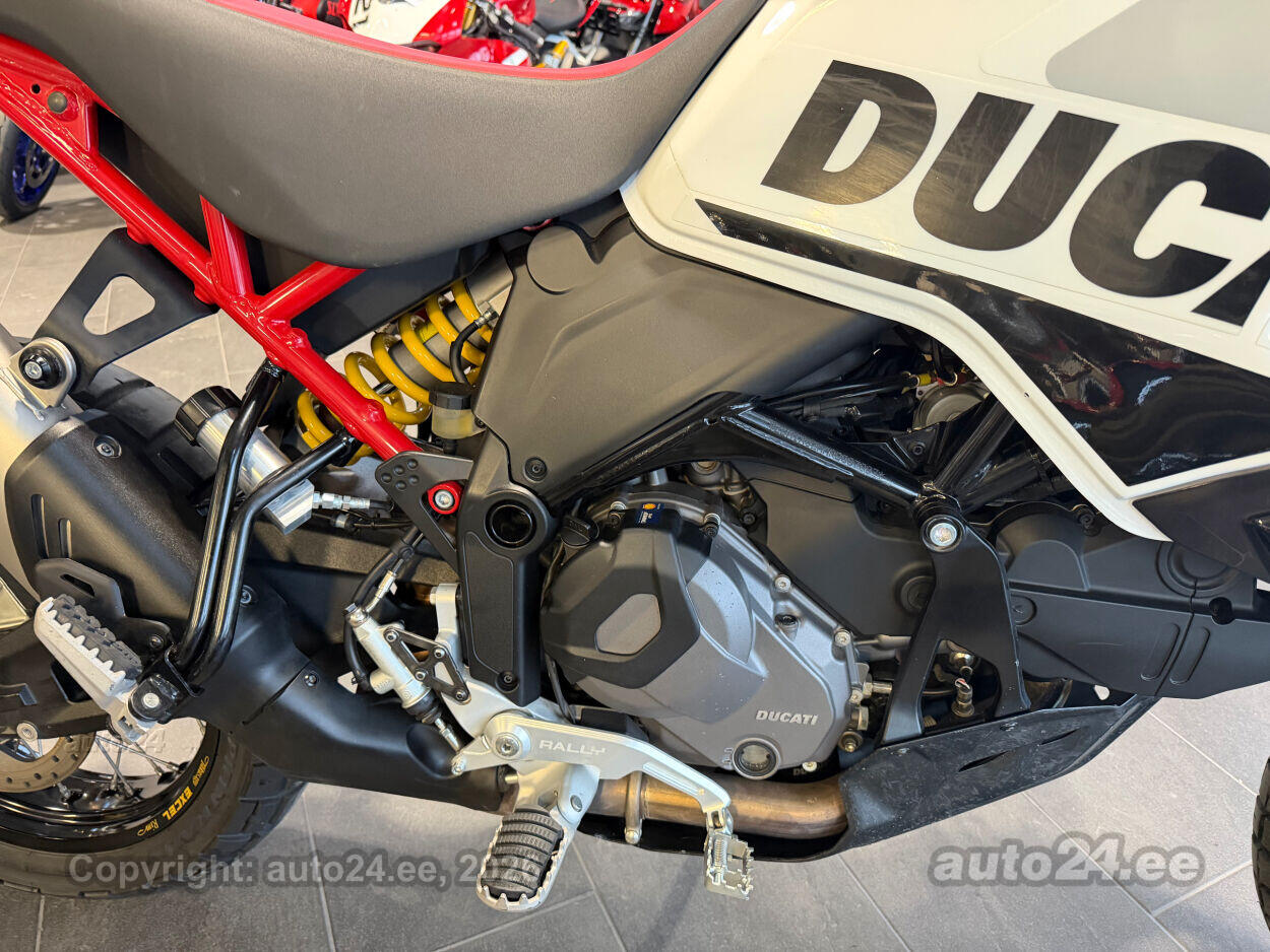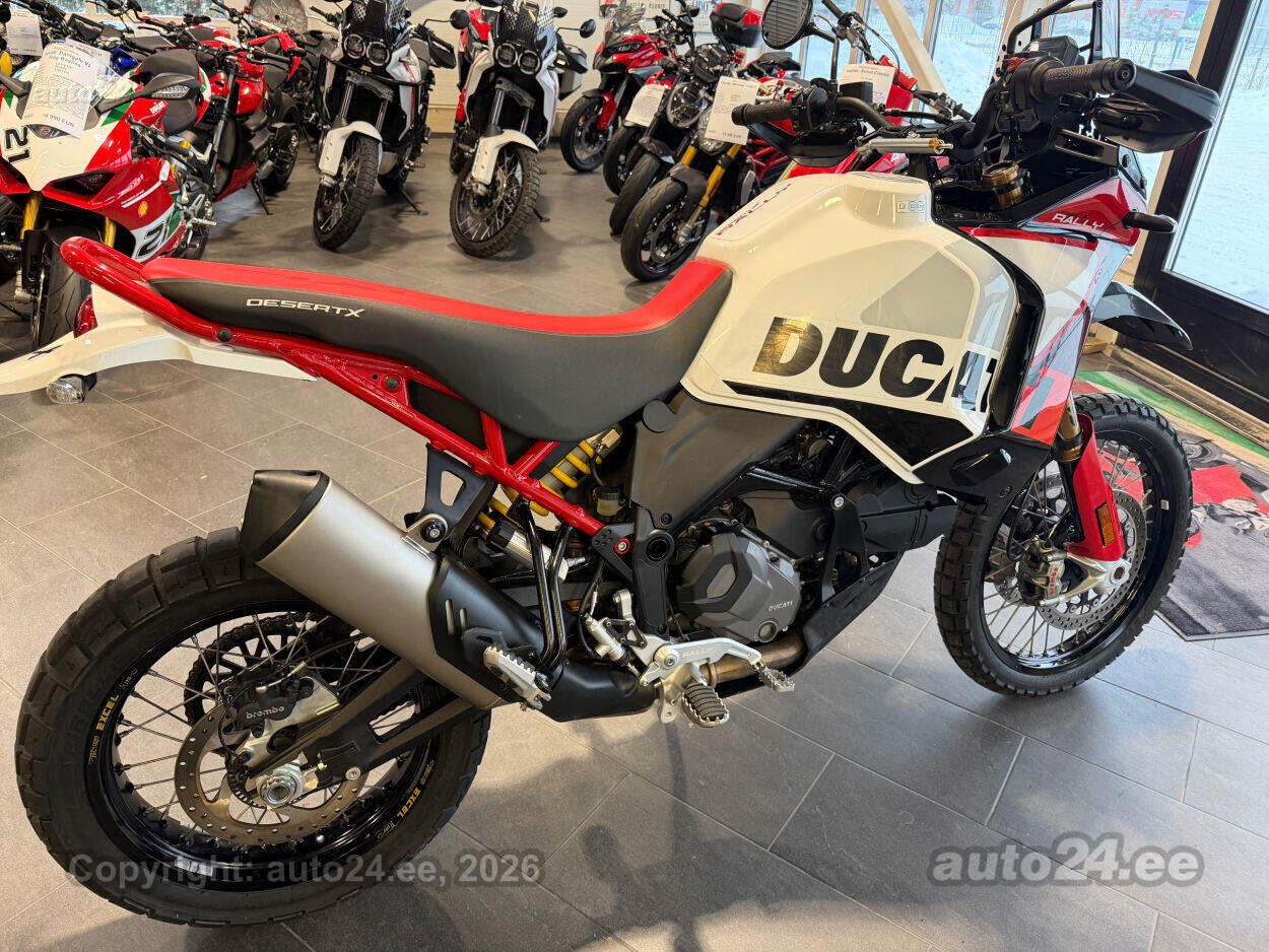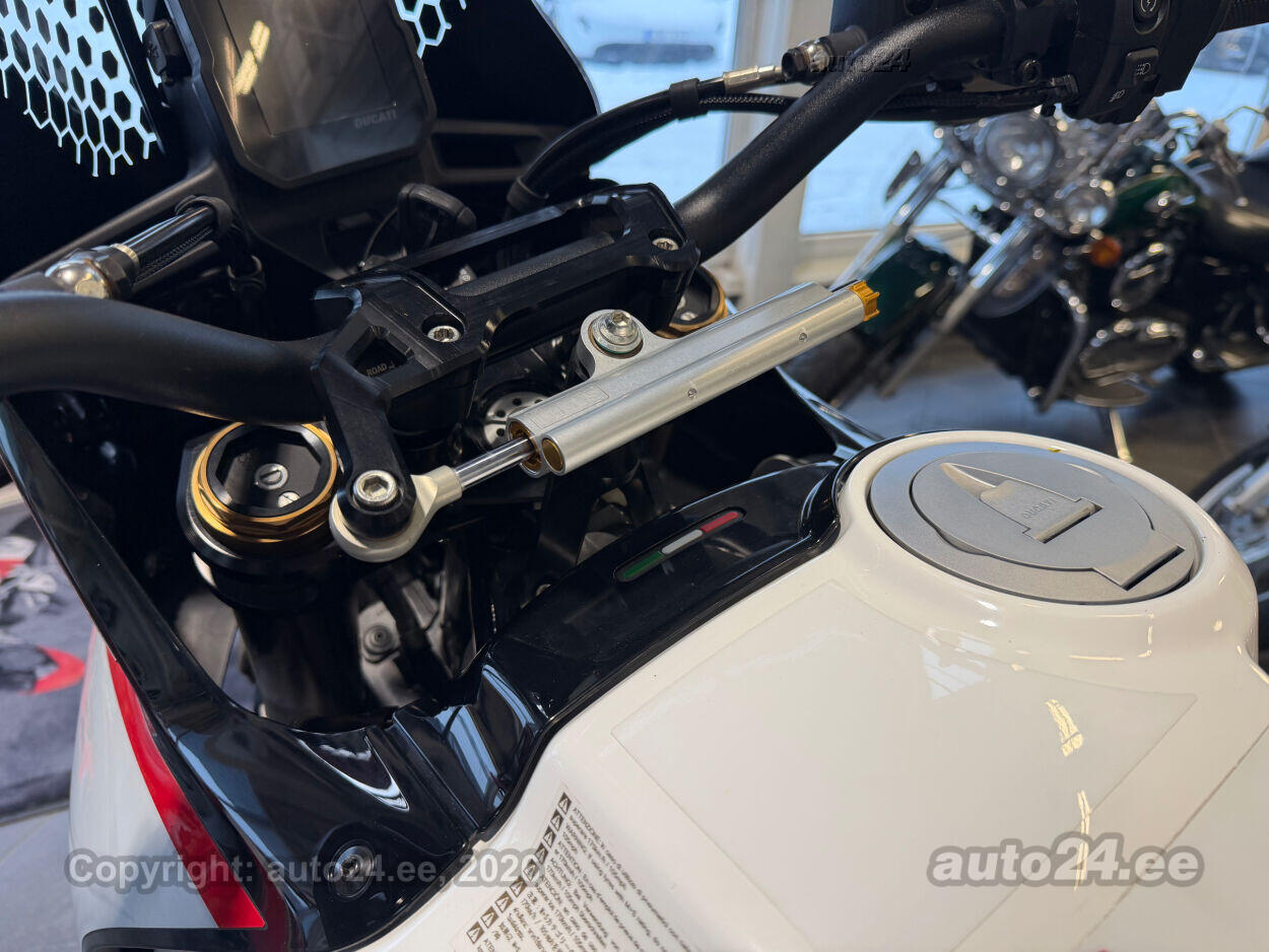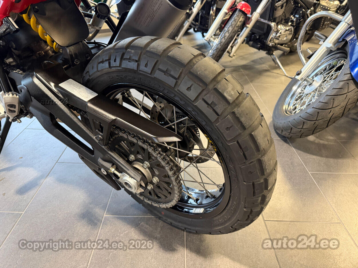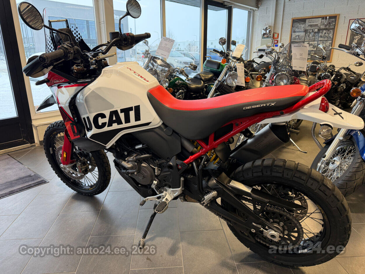 937 cm3 Ducati Testastretta 11° L-twin** mootor, 110 hj @ 9 250 p/min ja 92 Nm @ 6 500 p/min – võimas, lineaarne ja off-road-sõbralik jõuallikas, mis annab tugeva väljundi nii kruusal kui ka maanteel, 6-käiguline käigukast koos Ducati Quickhhifteriga (DQS up/down), mis võimaldab kiireid ja sujuvaid käiguvahetusi nii kiirendades kui ka aeglasel maastikusõidul, Terastoruraam koos tugeva alumiiniumist kahepoolse tagakiigega tagab optimaalse tasakaalu tugevuse ja juhitavuse vahel, Professionaalne KYB off-road vedrustus: ees 48 mm suletud kassett-fork, taga 46 mm kolviga monoshock – mõlemad täisreguleeritavad ja projekteeritud maksimaalseks rattareisideks ning hüpeteks, Ergonoomiline ja aggressiivne off-road ratas kõrge esitorniga, vaba liikumisruumiga ja spetsiaalse ralliistmega, mis võimaldab vaba liikumist ja lihtsalt kontrollitavad sõitu tehnilisematel radadel, Kerged ja tugevad Takasago Excel rattad (21” ees, 18” taga), mis taluvad karmimat sõitu ja vähendavad ratta massi, Tipptasemel elektroonika pakett koos 6 erineva sõidurezhiimiga (Sport, Touring, Urban, Wet, Enduro, Rally), kõiki rezhiime on võimalik oma käe järgi peenhäälestada, Kurvi ABS, Ducati 8 astmeline veojõukontroll DTC, Wheelie Control, mootori pidurdusjõukontroll ja püsikiirusehoidja – maksimaalne häälestusvõimalus igale maastikule, 21 liitrine kütusepaak pika sõiduulatusega + võimalus lisapaagile, selgelt loetav TFT-ekraan, nutitelefoni ühenduse ja turn-by-turn GPS iga (läbi BT), Kõik need omadused teevad Ducati DesertX Rally-st ühe kõige võimekama seiklusmootorratta, mis on praktikas valmis nii kruusa, liiva, kivise maastiku kui ka pikkadeks teekondadeks ilma kompromissideta! |
