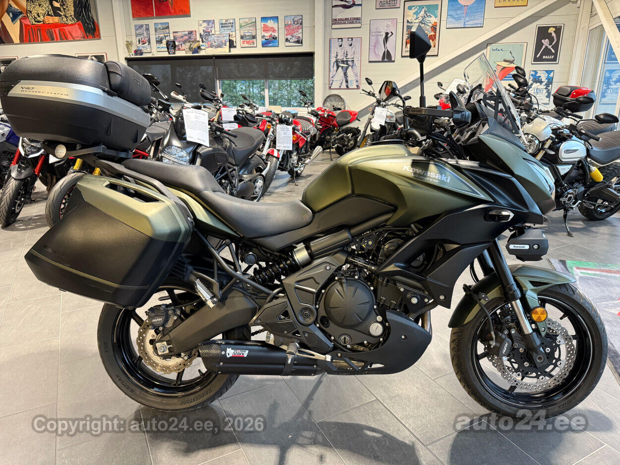 Varustus: Kawasaki Versys 650 on silmapaistev ja mitmekülgne sporttourer, mis sobib ideaalselt nii igapäevaseks linnasõiduks kui ka pikemateks maanteetuurideks tänu oma tasakaalustatud konstruktsioonile ja sportlikule karakterile, Selle 649 cc vedelikjahutusega paralleeltwin-mootor toodab ligikaudu 69 hj ja 64 Nm pöördemomenti, mis pakub tugevust ja üllatavalt sujuvat jõudlust igas olukorras, Versys 650 tugeva terasraami ja reguleeritava vedrustusega ees ja taga loob enesekindla juhitavuse, mugava istumisasendi ning usaldusväärse haarduvuse nii kurvides kui ka pikkadel teedel, Paljud sõitjad kiidavad seda mudelit kui tasakaalustatud ja sõbraliku mootorratast, mis ühendab sportliku iseloomu, praktilise võimekuse ning Kawasaki tuntud töökindluse, Ratas varustatud kolme mahuka kohvriga, Paigaldatud portsummuti, Paigaldatud praktilised lisatuled!
