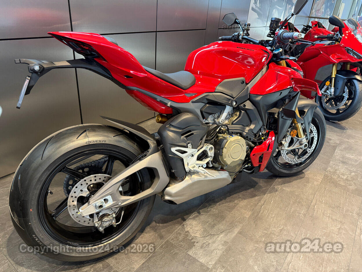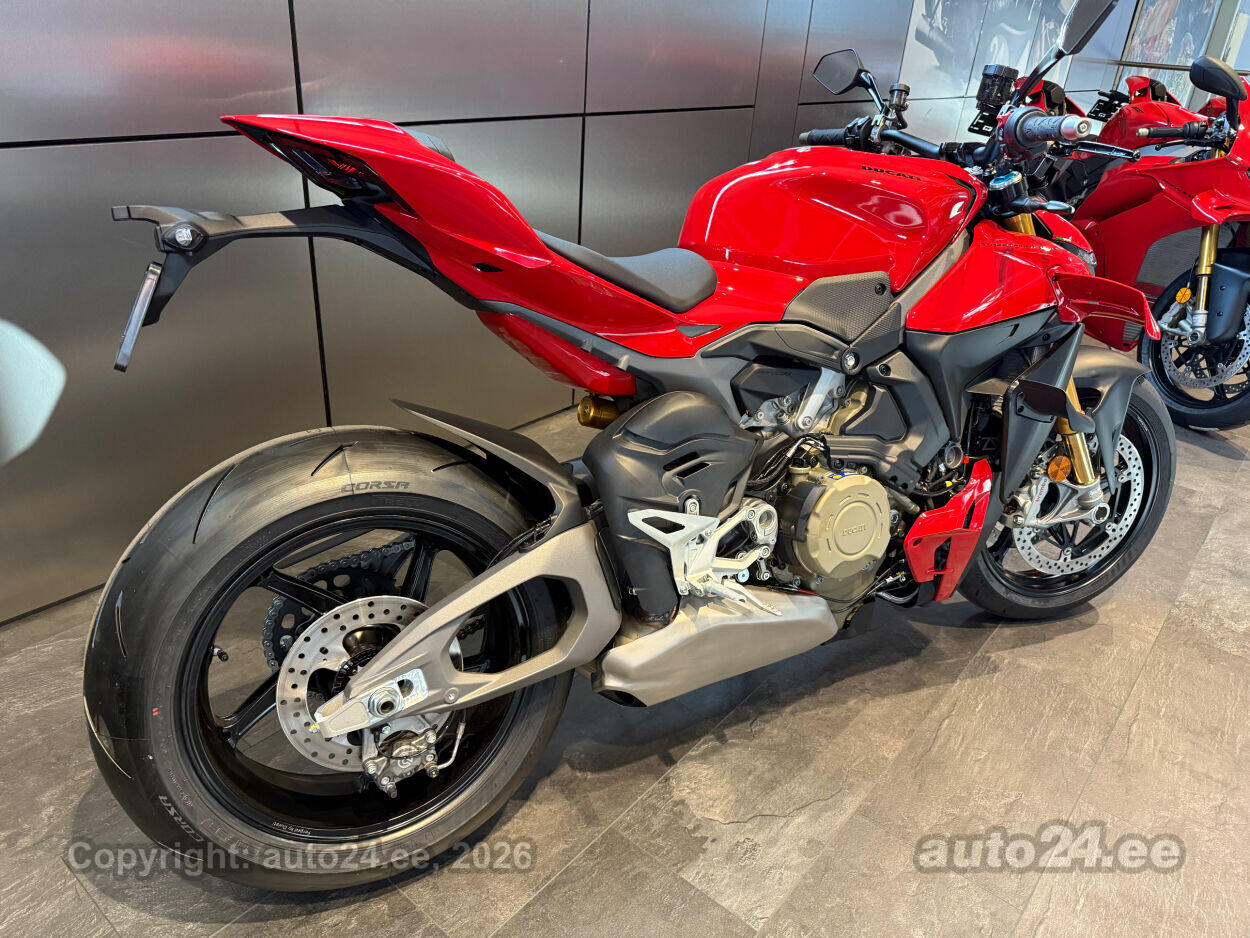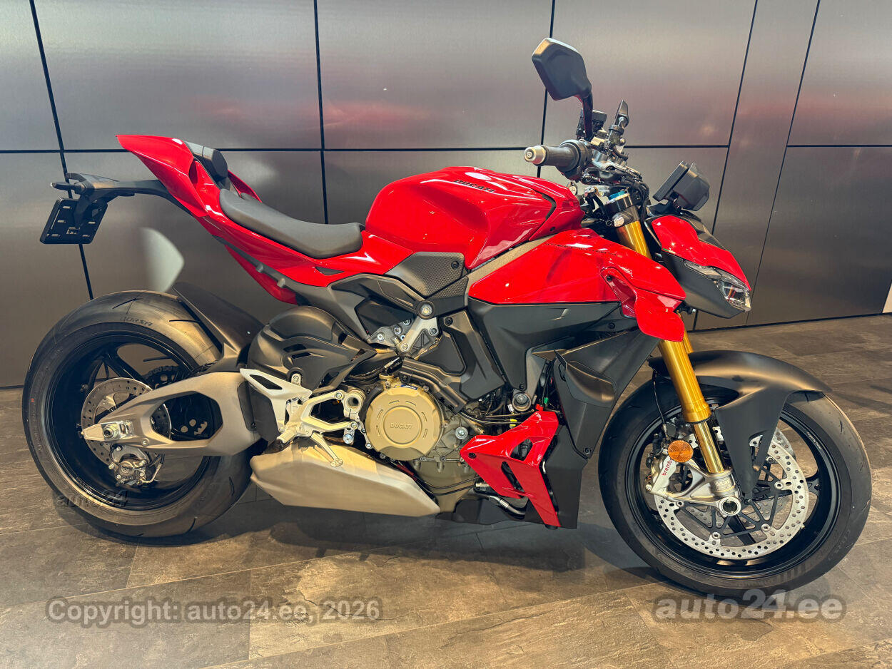 Ducati Streetfighter V4S on tippklassi "naked bike," mis pakub sõiduelamust, mida sa ei unusta. Selle 214 hj Desmosedici Stradale V4 mootor toob igale sõidule plahvatusliku kiiruse ja nauditava adrenaliini. MotoGP-st inspireeritud wingletid tagavad aerodünaamilise stabiilsuse ka kõige kiirematel kiirustel, pakkudes turvatunnet ja kindlust. Öhlinsi Smart EC 3.0 elektrooniline vedrustus kohandub reaalajas sinu sõidustiilile ja teeoludele, andes laitmatu juhitavuse. Kergemad sepistatud alumiiniumveljed ja ülikvaliteetsed uue põlvkonna Brembo Hypure pidurid tagavad erakordse kontrolli ja kiiruse.