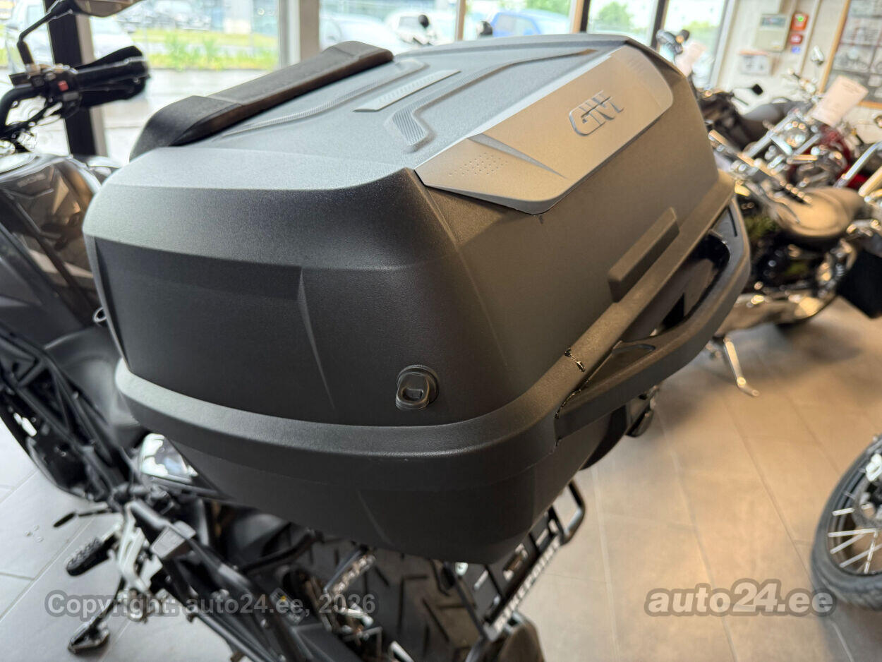 Varustus: Terasest trellis-raam – tugev ja jäik raam, mis talub hästi raskemaid koormusi ja maastikusõitu, ABS pidurid, Vedrustus pika käiguga – 50 mm USD (ümberpööratud) esikahvel ja reguleeritav tagavedrustus, sobib hästi ebatasasel maastikul sõitmiseks, 19-tolline esiratas – sobib maastikusõiduks ja parandab juhitavust ebatasasel pinnasel, Tugevad küljekaitse torud, Givi / Kappa Küljekohvrite raam, 500cc kahe silindriga ridamootor – töökindel ja piisava pöördemomendiga (47 hj / 46 Nm), sobib hästi nii teele kui kergele maastikule, Euro 5 heitmenormidele vastavus – kaasaegne ja keskkonnasõbralikum mootoriplokk, Madal kütusekulu (~3–4 l/100 km) – sobib pikemateks matkadeks ja igapäevaseks kasutamiseks, Pikk teljevahe ja kaal (~235 kg) – stabiilne suurematel kiirustel ja koormaga sõites, Dual sport rehvid – sobilikud nii asfalt- kui kruusateele, Madal hoolduskulu, Suhteliselt madal sadulakõrgus (800–840 mm) – sobib ka lühema kasvuga sõitjatele, USB ja 12V pesad – kaasaegse elektroonika laadimiseks,