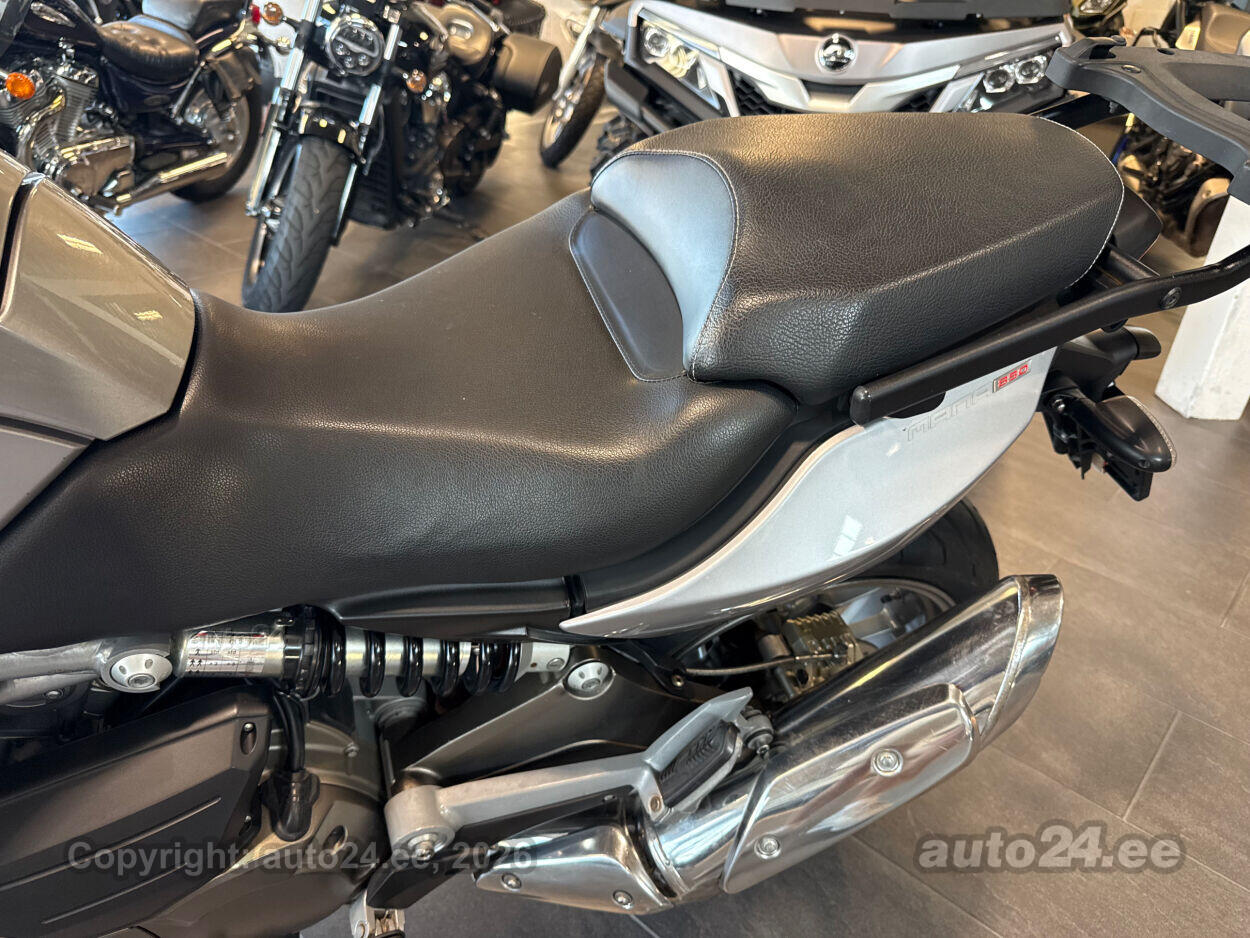 649 cm3 vedeljahutusega V2, sujuv ja reageeriv, CVT-automaatkäigukast (Continuously Variable Transmission), võimaldab käigust käiku ümberlülitumist ilma sidurita, lihtne ja mugav, Kolm sõidurežiimi — Sport, Touring ja Rain — võimaldavad kohandada võimsust vastavalt tingimustele, Kompaktne, kuid stabiilne terasraam ning V2 mootor annab tasakaalustatud massijaotuse, LCD-instrumentide paneel – selge info ja selge disain koos režiimide ja mõõdikute kuvamisega, Ergonoomiline, istumisel mugav asend—sobib nii linnaliikluseks kui pikemateks sõitudeks, Mahukas kütusepaak umbes 15 l, hea sõiduulatus, Kommuteerimisele või linnaliiklusele ideaalne tänu automaatkäigukastile ja kergesti juhitavale raamikonstruktsioonile, Atraktiivne, futuristlik disain, mis paistab silma tänaval, Vaikne ja sile sõit ilma käiguvahetusvibratsioonita, Madal hooldusvajadus tänu CVT-lihtsusele ja vastupidavale konstruktsioonile, Lisavarustusest kõrge tuuleklaas ja GIVI pakiraam, Eestis arvel, kehtiv tehnoülevaatus! |