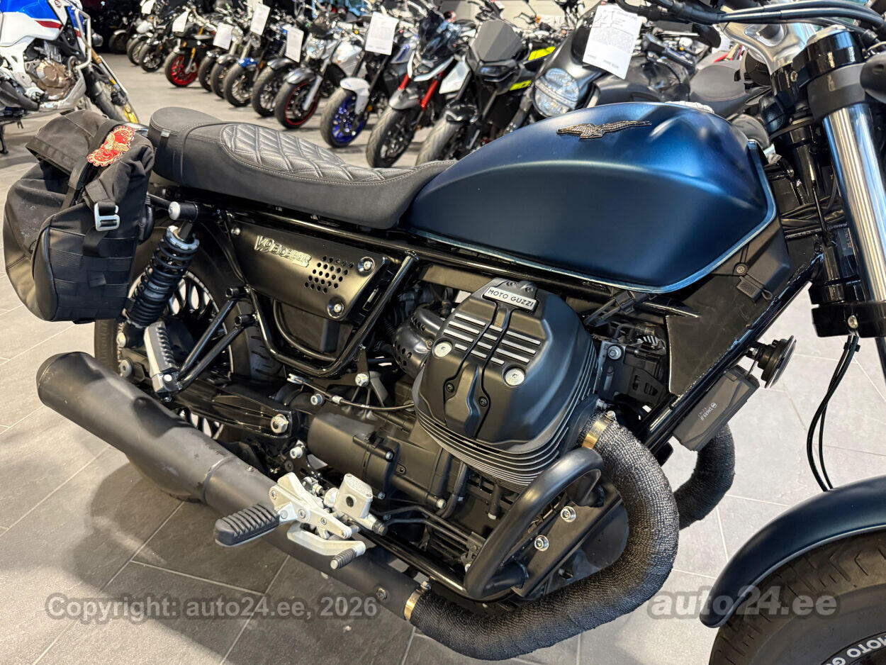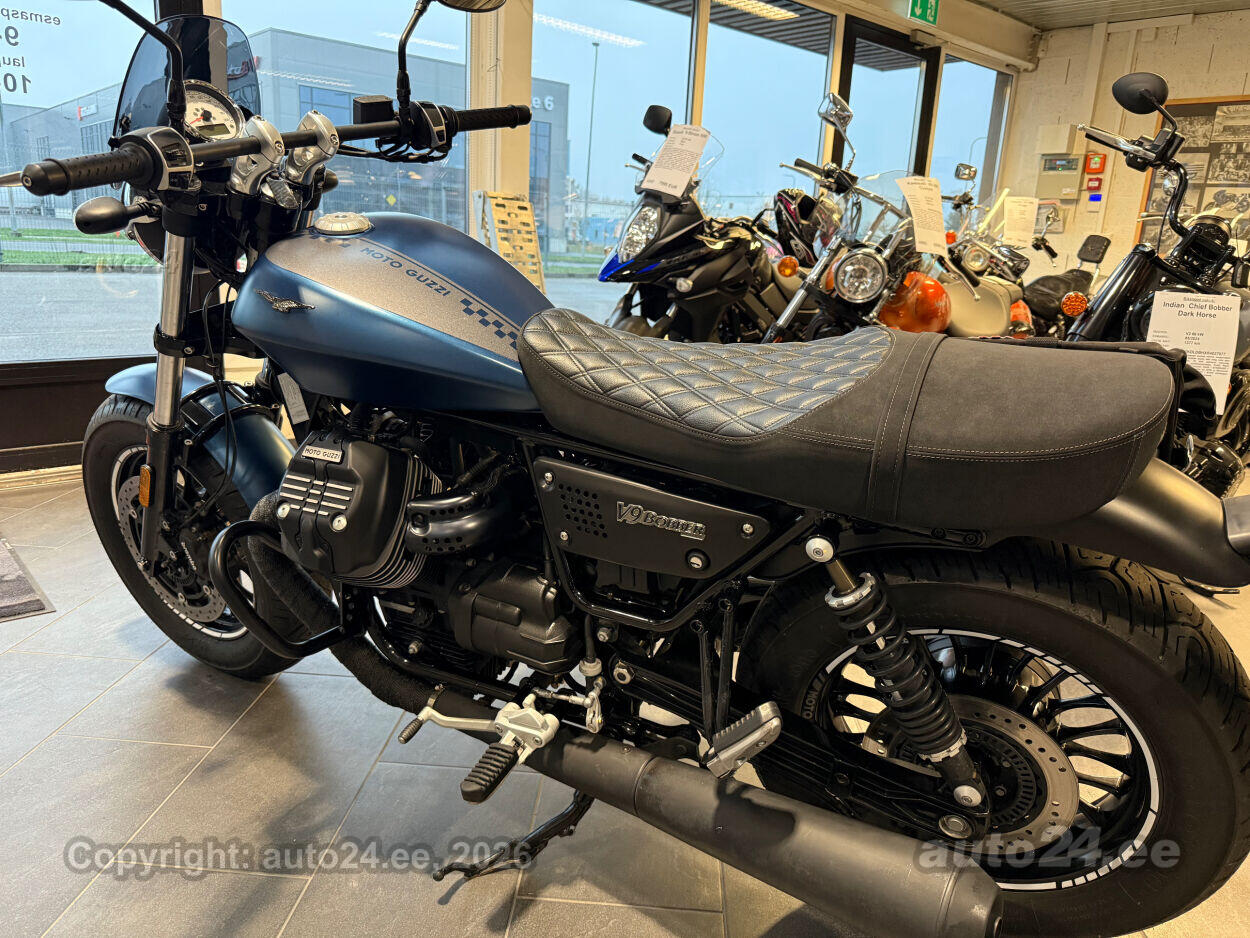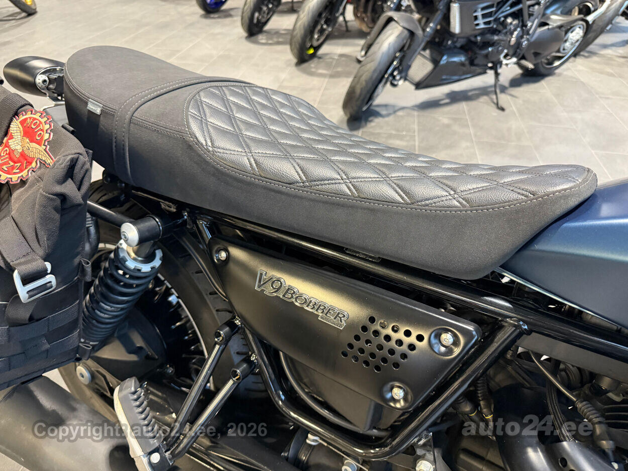 Moto Guzzi V9 Bobber on julge iseloomuga mootorratas, mis paistab silma oma madala profiili ja matistatud detailidega. 850cc V-Twin mootor pakub sujuvat jõudlust koos klassikalise Guzzi vibratsiooniga. See on ideaalne valik neile, kes otsivad stiili, autentsust ja ainulaadset sõiduelamust! Paigaldatud mootori kaitserauad, tuuleklaas, küljekotike ja esitule kaitsevõru. |