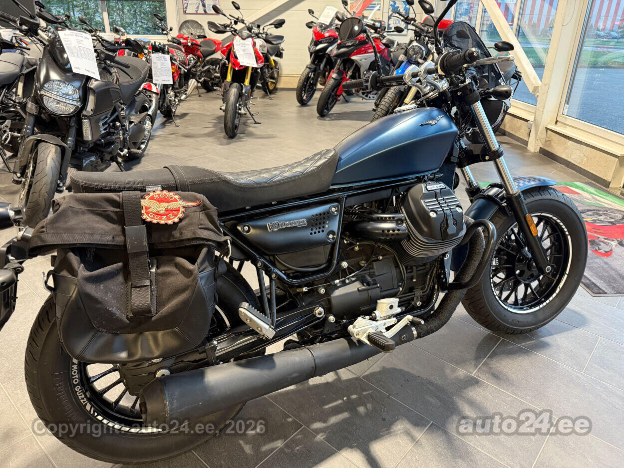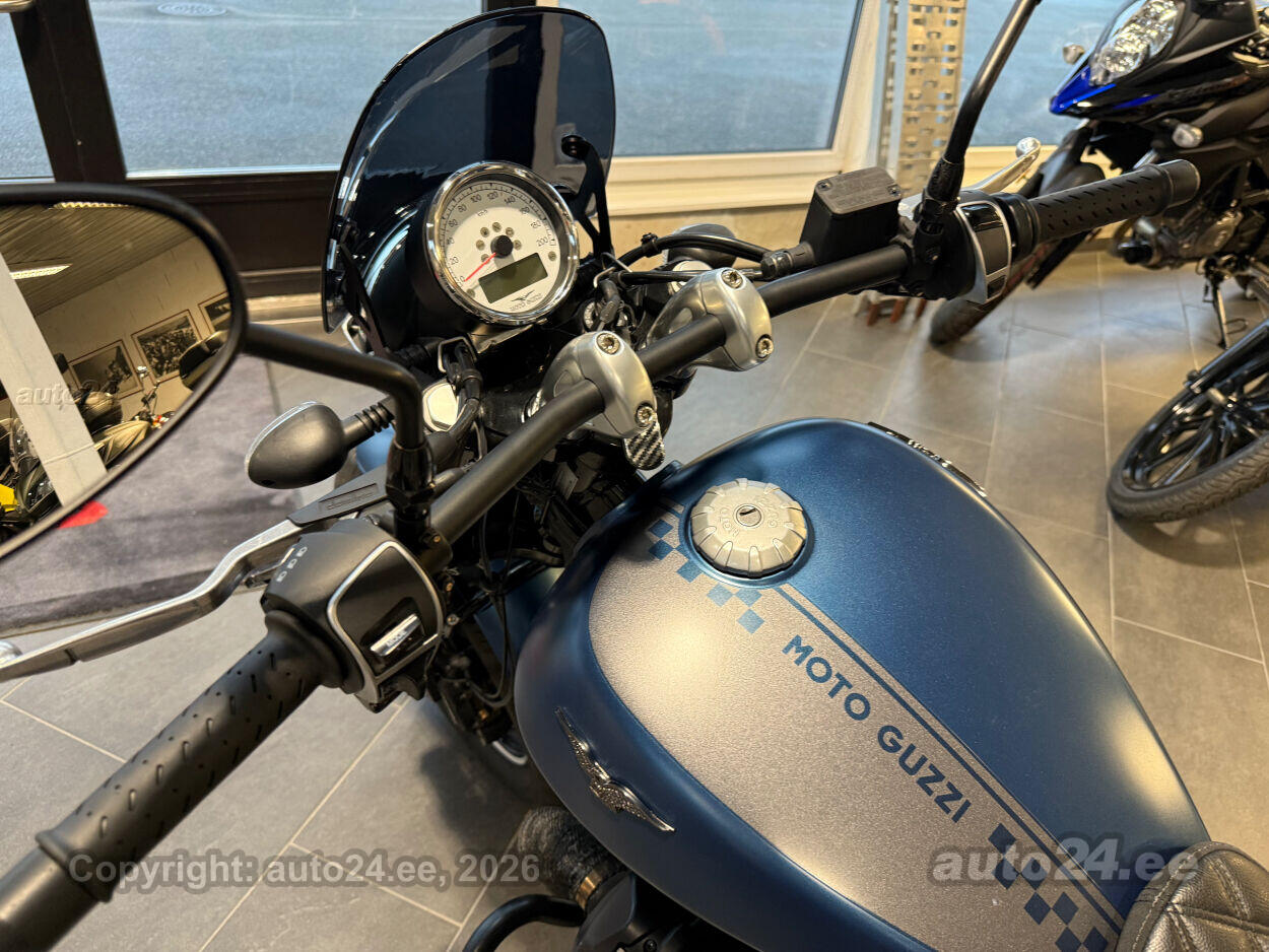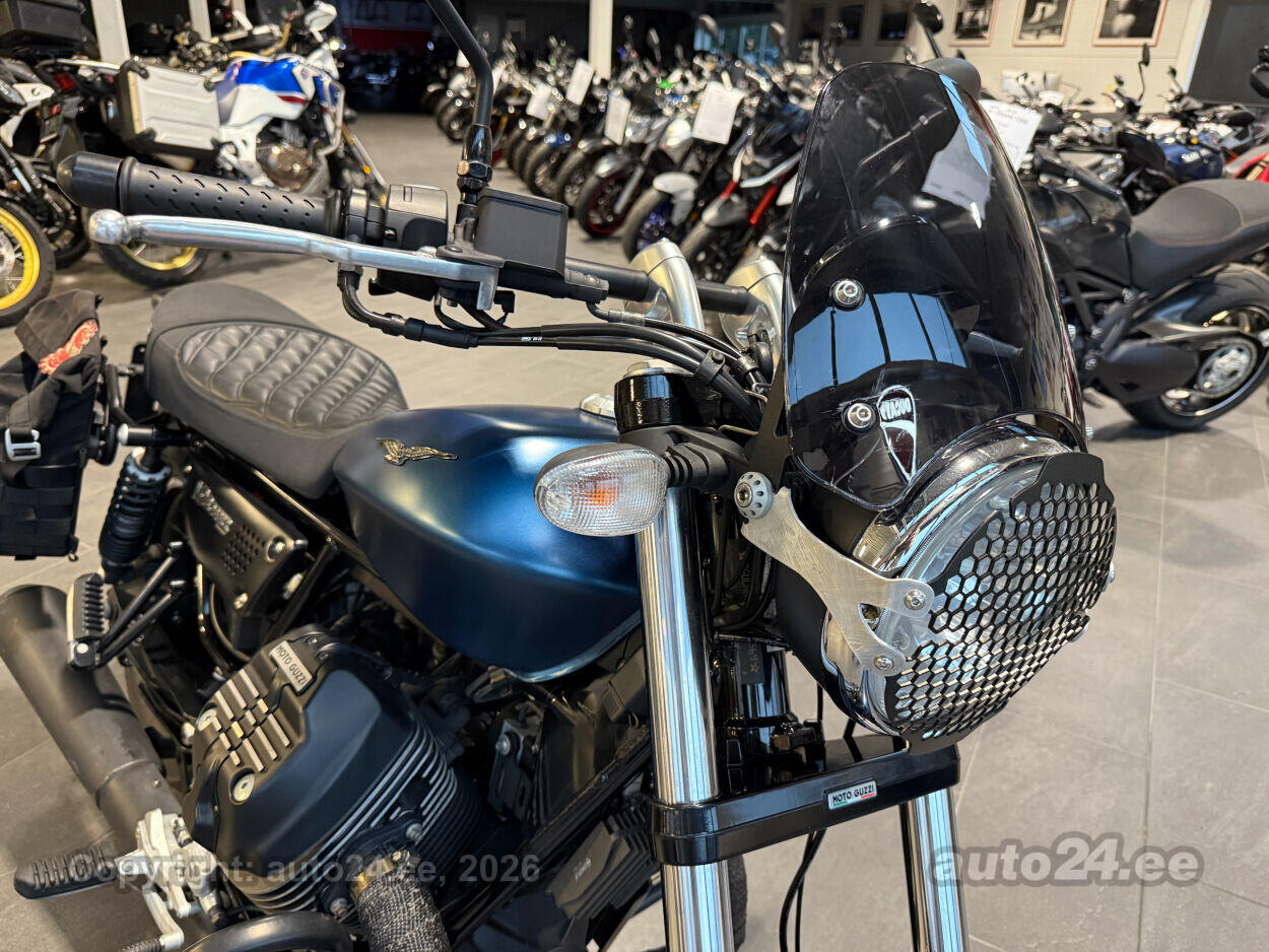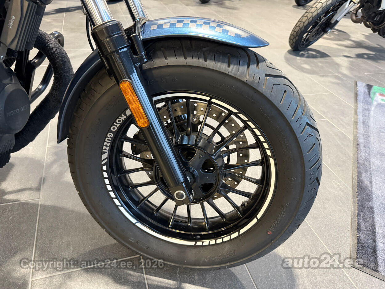Moto Guzzi V9 Bobber on julge iseloomuga mootorratas, mis paistab silma oma madala profiili ja matistatud detailidega. 850cc V-Twin mootor pakub sujuvat jõudlust koos klassikalise Guzzi vibratsiooniga. See on ideaalne valik neile, kes otsivad stiili, autentsust ja ainulaadset sõiduelamust! Paigaldatud mootori kaitserauad, tuuleklaas, küljekotike ja esitule kaitsevõru. |