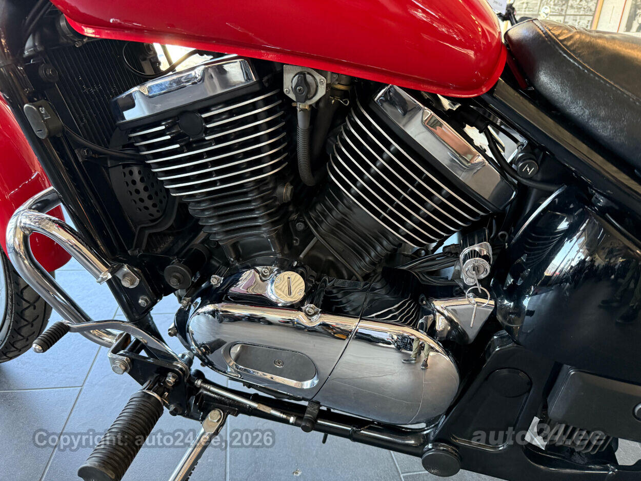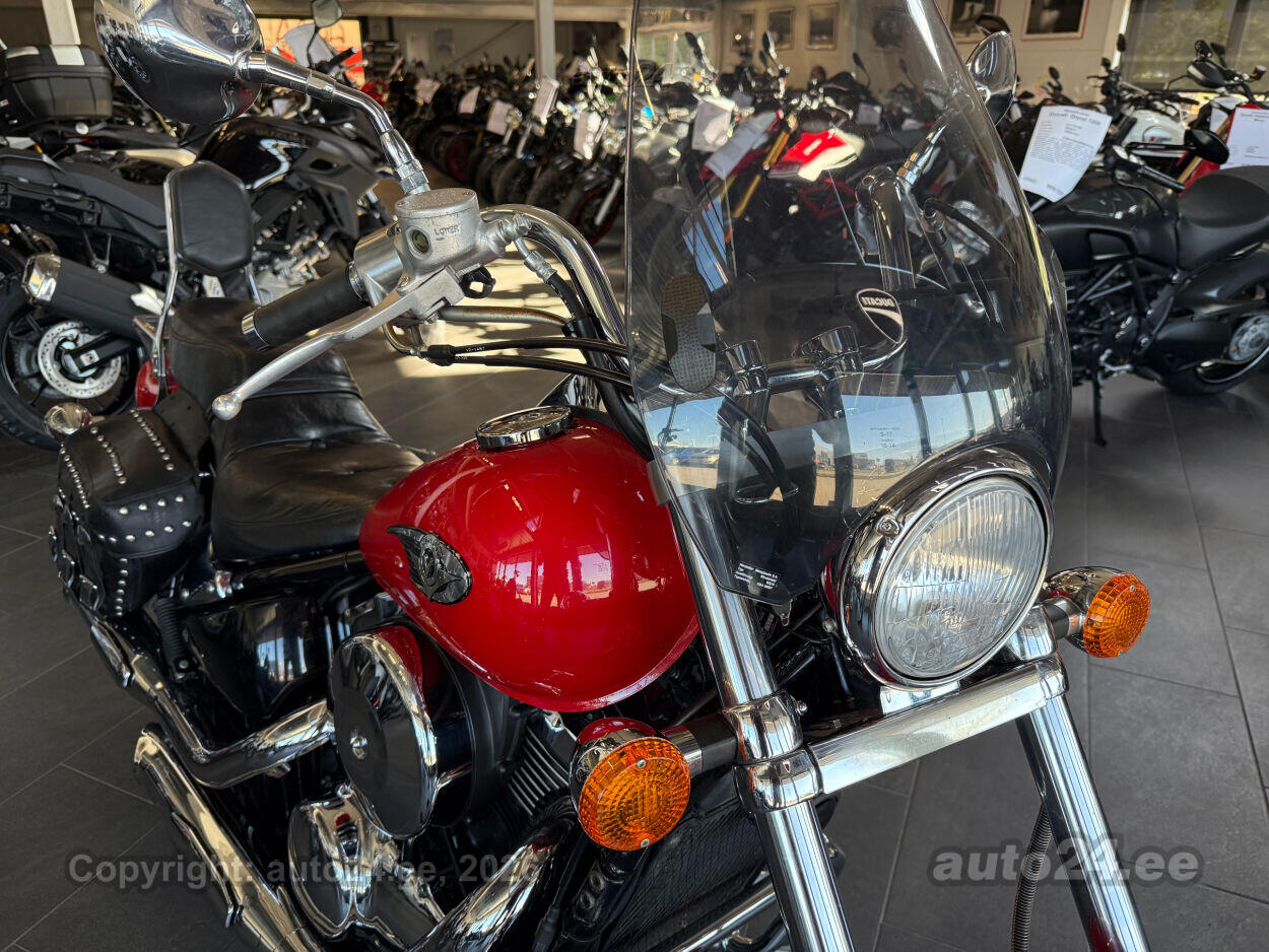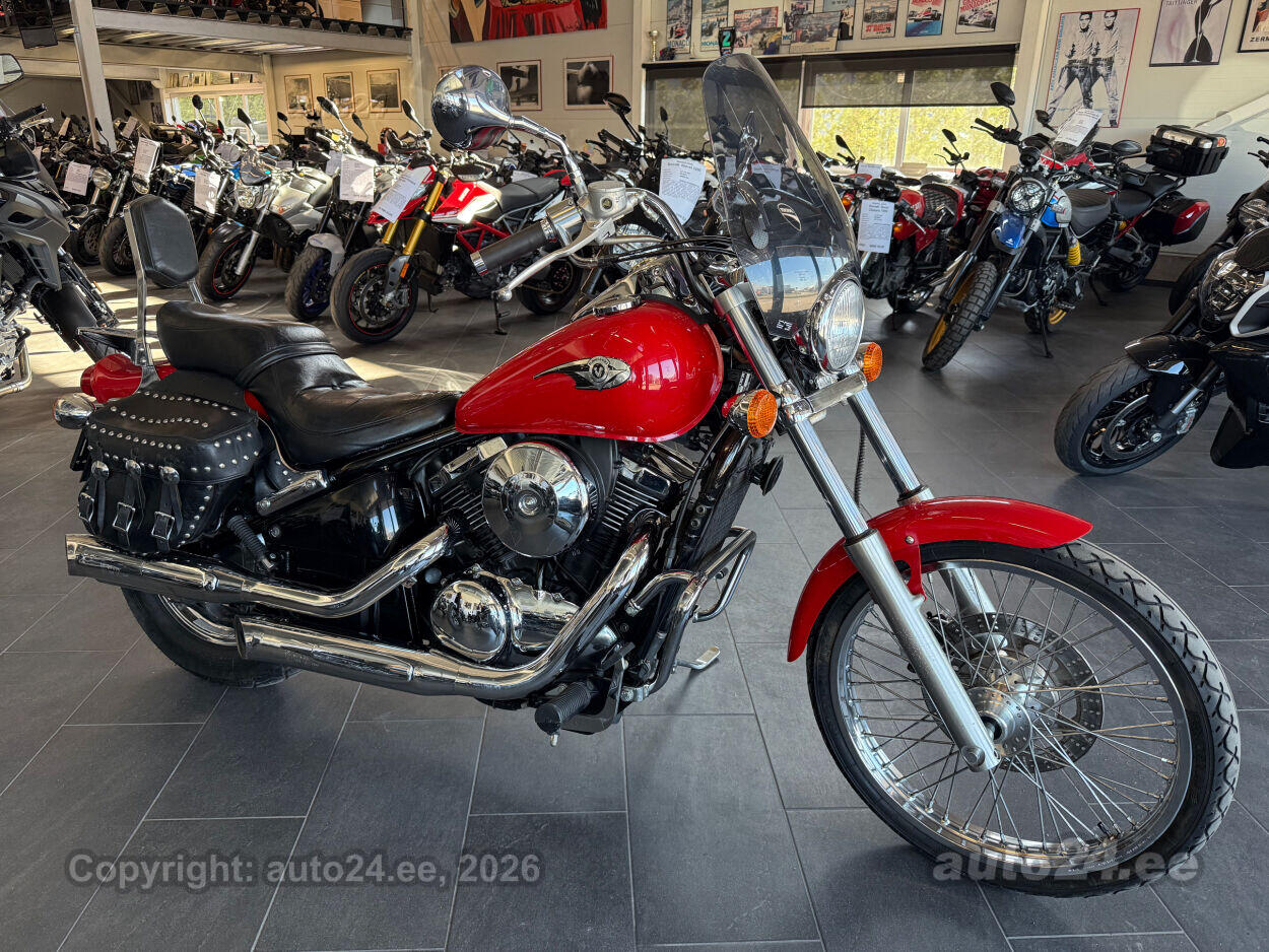 Kena Kawasaki kruiser. Suure efektse esirattaga, hea väändega V2 mootor. Korralik ratas, rehvid head, sõidab töötab kenasti. Lisadest paigaldatud kaasreisija seljatugi, küljekotid, tuuleklaas. |