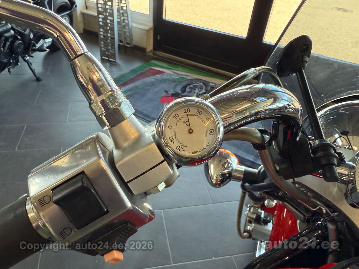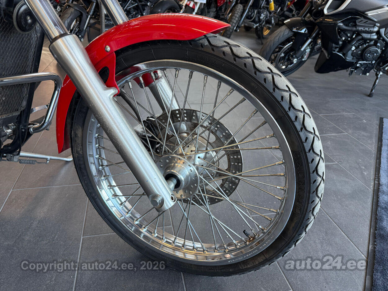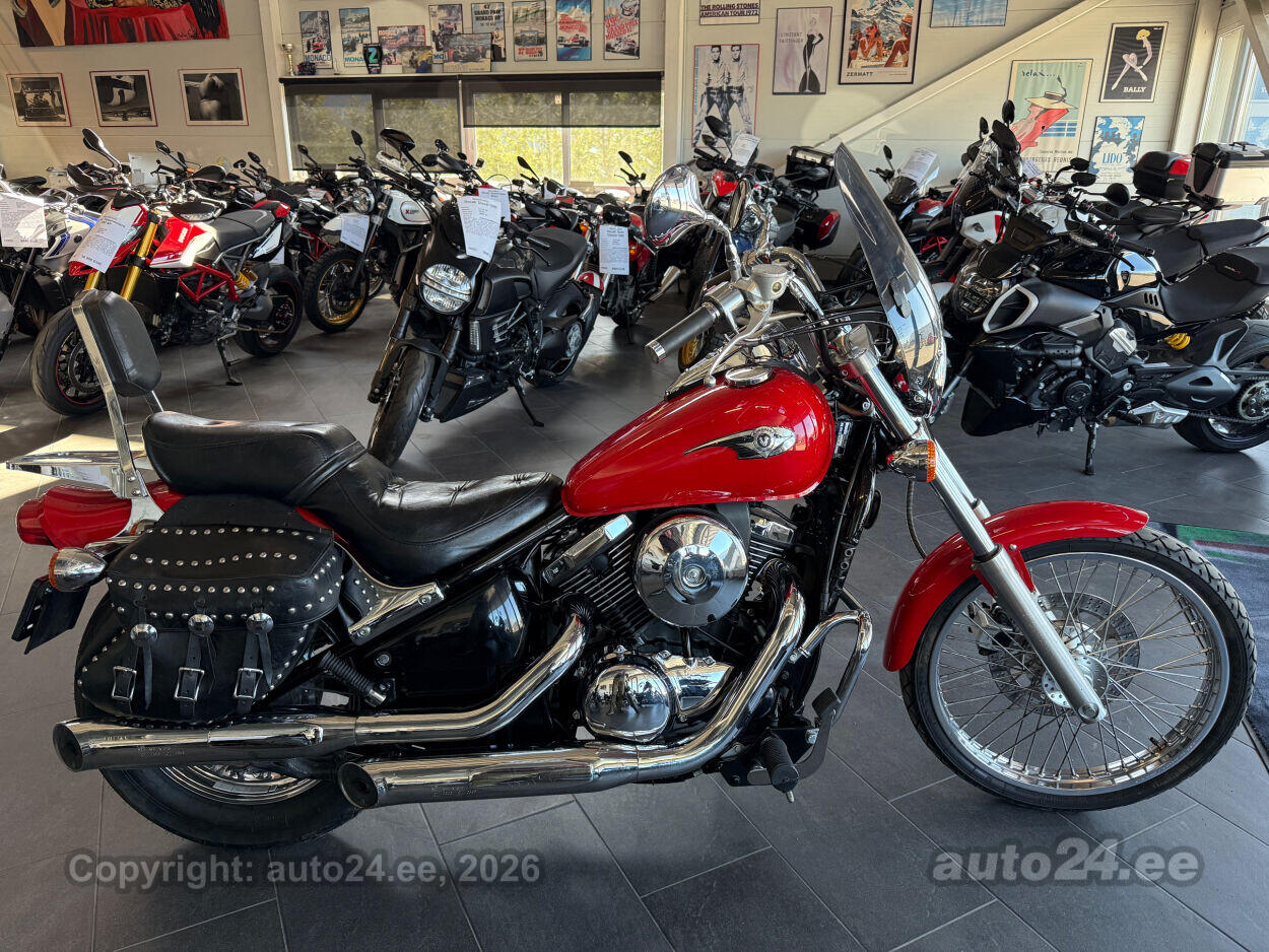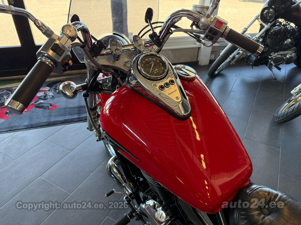 Kena Kawasaki kruiser. Suure efektse esirattaga, hea väändega V2 mootor. Korralik ratas, rehvid head, sõidab töötab kenasti. Lisadest paigaldatud kaasreisija seljatugi, küljekotid, tuuleklaas. |