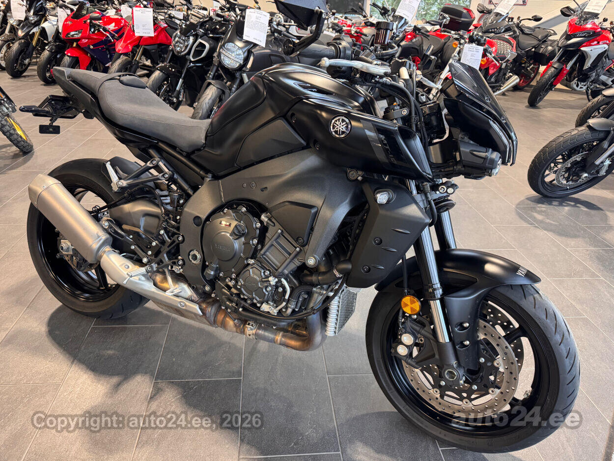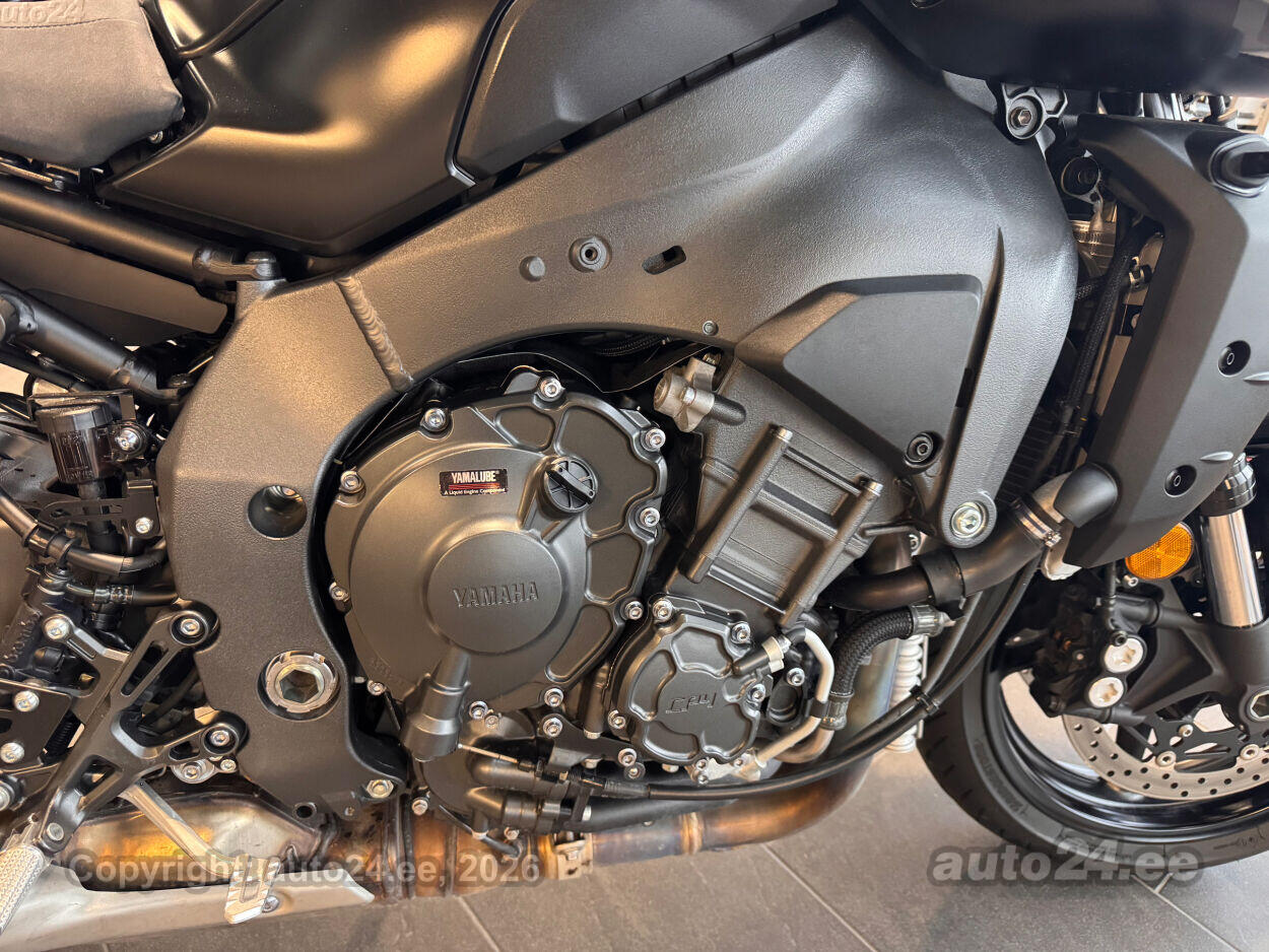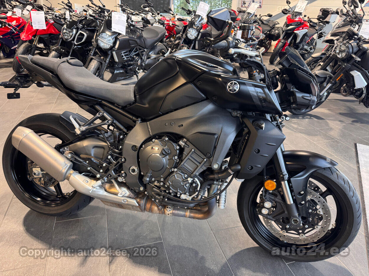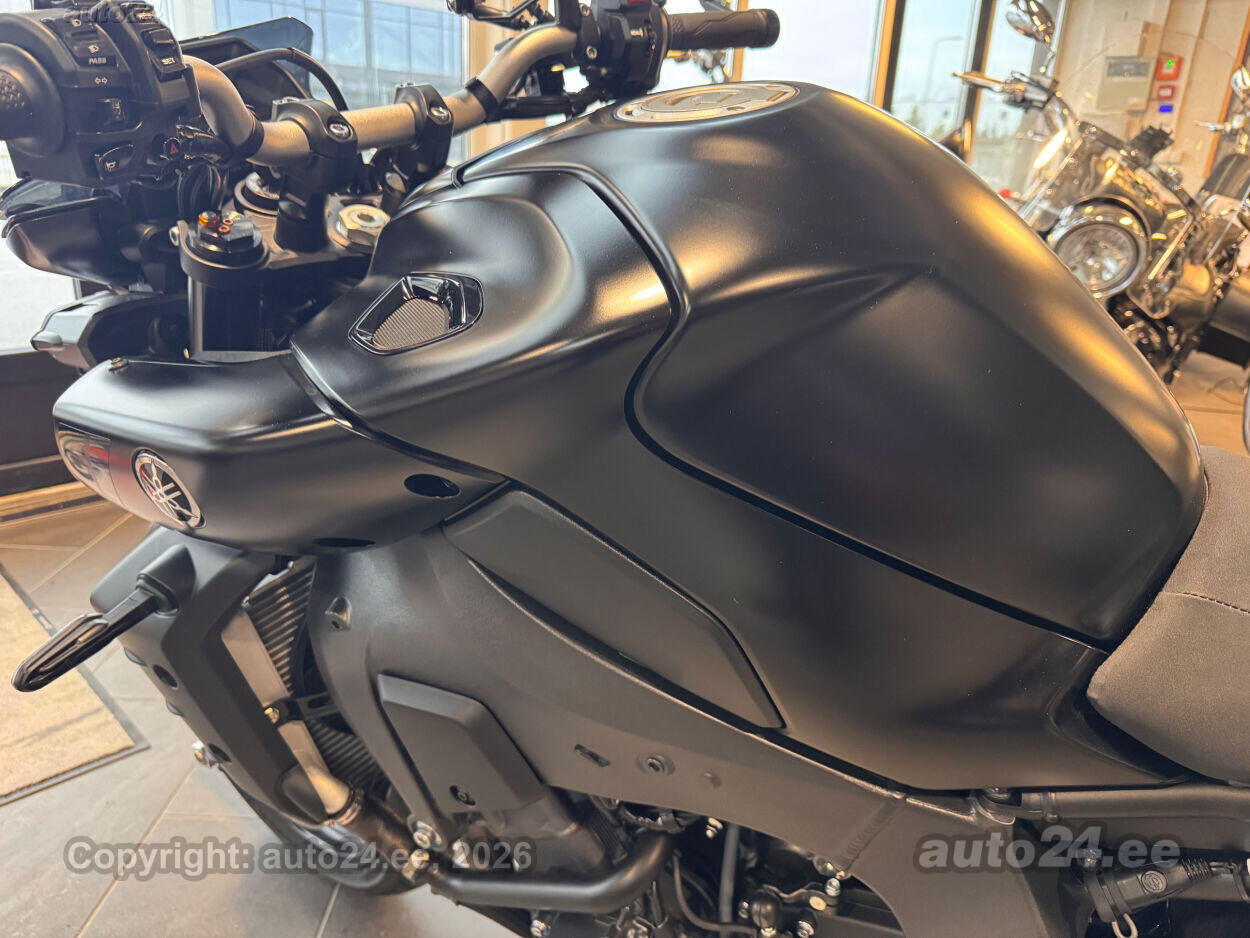 Varustus: Yamaha MT-10 – jõuline ja agressiivne naked-mootorratas, mis toob supersportlikud elamused tänavale. Võimas 998 cm3 R1-st tuletatud crossplane mootor pakub plahvatuslikku kiirendust ja erakordset juhitavust. Tipptasemel elektroonika, sealhulgas erinevad sõidurežiimid, veojõukontroll ja quickshifter, tagavad sujuva ja kontrollitud sõidu. Tugev raam ja sportlik reguleeritav vedrustus pakuvad kindlust nii kurvides kui ka sirgetel lõikudel. Mattmust viimistlus rõhutab mootorratta metsikut ja jõulist iseloomu. Püsikiirusehoidja annab mugavuse pikematel sõitudel. Yamaha MT-10 on ideaalne valik kui otsid adrenaliini ja kompromissitut jõudlust!