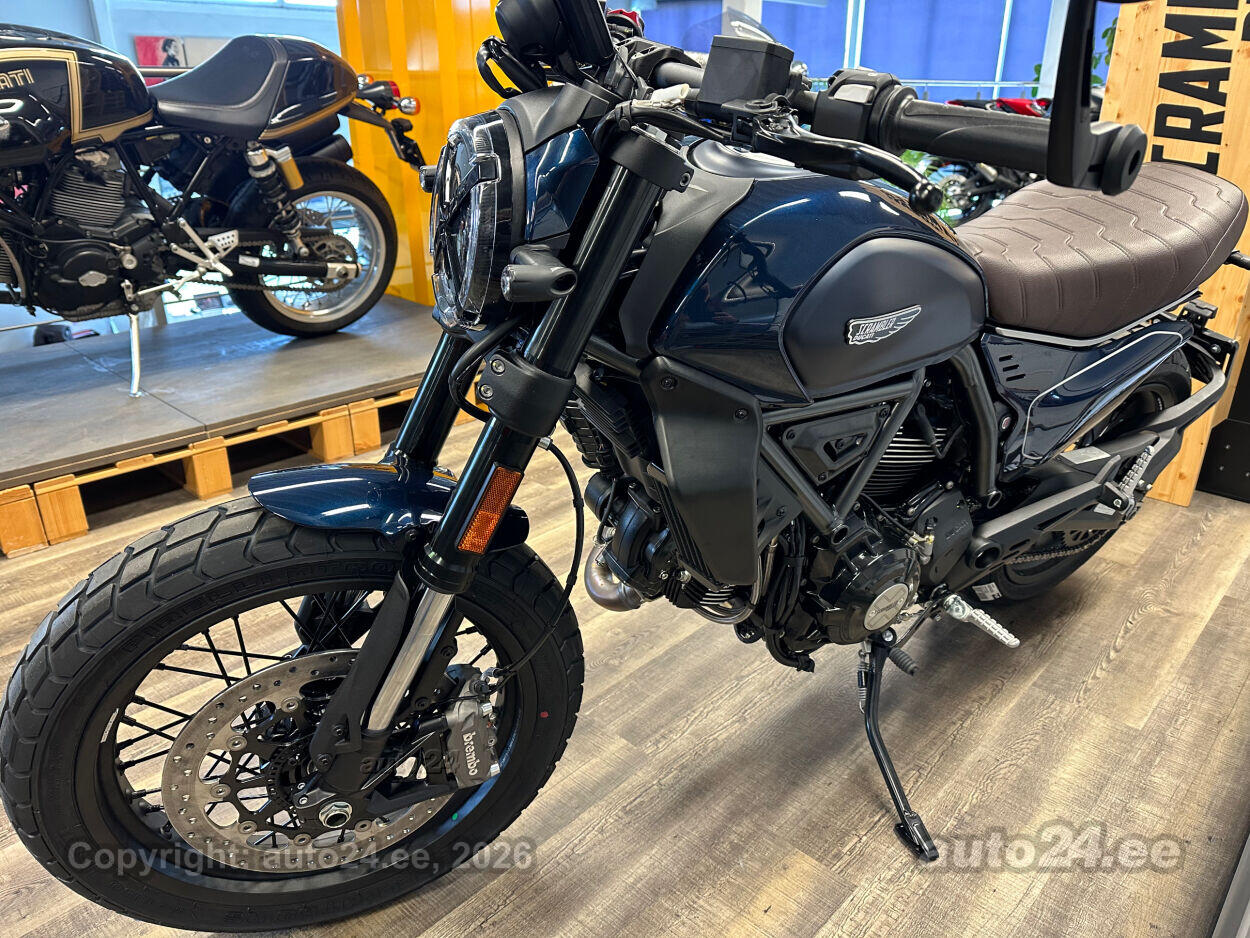 Vahetuse võimalus Uus 2 generatsiooni Scrambler! Väga hea standardvarustusega - Kurvi ABS pidurid, veojõukontroll, erinevad sõidurezhiimid, 4,3 tolline TFT displei, Led tuled, ühenduvus telefoniga jne. Eelmisest mudelist 4 kilo saledam, kerge ja lihtne ratas sõita! |