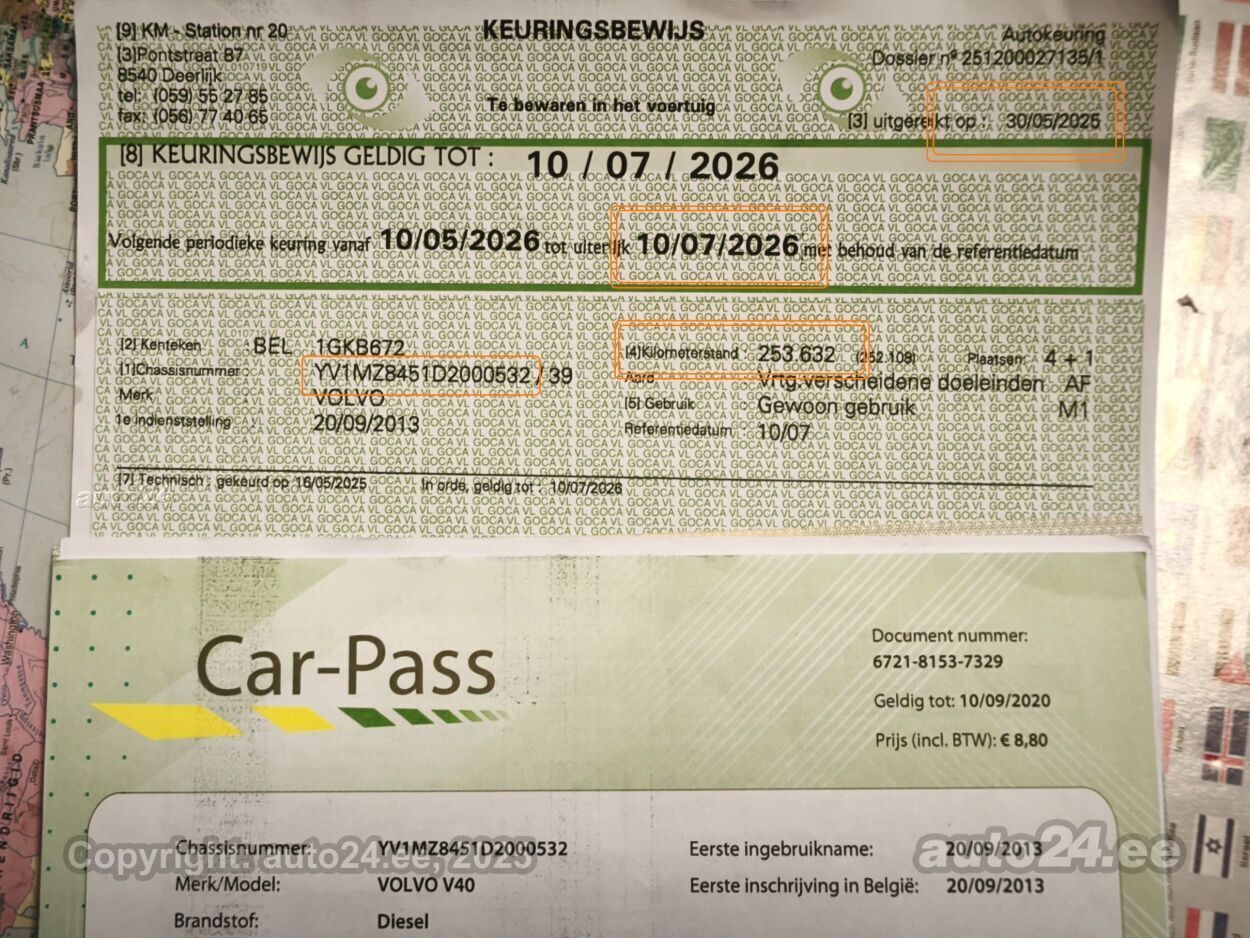 | Оборудование: | система автоматического торможения, клима-автоматик, усилитель руля, центральный замок (с пультом), тормоза с АБС, воздушная подушка, шторы безопасности, иммобилайзер, доп.стоп сигнал, ESP система контроля стабильного положения, натяжители ремней безопасности спереди, датчик дождя, ISOFIX крепитель детских сидений (сзади), возможность выключит воздушную подушку переднего пассажира, светопакет, противотуманные фонари (задний), регулятор положения фар по высоте, LED (задние фары, фары дневного света), автоматическое включение фар, MICHELIN зимняя резина (ламельная резина), литые диски (17, VOLVO orig.), вместе с автомобилем впридачу (MICHELIN летняя резина), регулируемый руль (по высоте и глубине), многофункциональный руль, руль обшитый кожей, PERFORMANCE Sound+ BLUETOOTH audio стерео (CD, MP3, гнездо для USB, оригинальное), звуковые колонки, экран (спереди), система навигации (с картой), компьютер, BLUETOOTH система "hands free", декоративные накладки в салоне, карманы в спинках передних сидений, коврики (текстильные), держатели стаканов (спереди, сзади), рукоятка переключения передач обшитая кожей, текстильная обивка, регулируемые по высоте сидения (пассажирское сидение, водительское сидение), подлокотник спереди (с ящиком), подлокотник сзади, складная спинка пассажирского сиденья, складывающаяся спинка заднего сиденья, электрические зеркала заднего вида (с подогревом, складывающиеся), 4x электрические стеклоподъемники, тонированные стекла, круиз контроль, местная подсветка, датчики парковки (сзади), парковочная камера, Coming-/Leaving-Home функция, задний спойлер, передний спойлер, комплет спойлеров, запасное колесо, 12v электрические розетки, крышка багажного отделения, дуги на крыше, подогрев заднего стекла, показатель температуры атмосферного воздуха, очиститель заднего стекла, BELGIA TEHNOÜLEVAATUS KEHTIB:07/2026a, Kerel rooste puudub ! (Toodud Belgiast!), Sõiduki hind on 7990.-Eur, Hinna sees on:, HAMMASRIHMA VAHETUS koos sinna juurde kuuluvaga (Hammasrihm BOSCH+veepump, Soonrihmakomplekt , jahutusvedelik...), Täis filtrite vahetus BOSCH (õli,õhu, salongi, kütuse)+ CASTROL mootoriõli KÄIGUKASTIõli, PIDURIKLOTSIDE ja -kettaste vahetus, Talverehvid MICHELIN + suverehvid MICHELIN, |