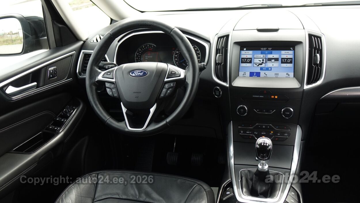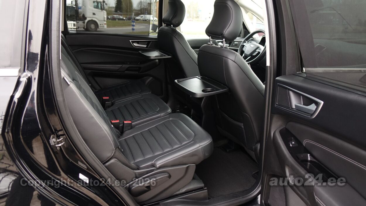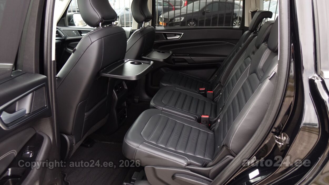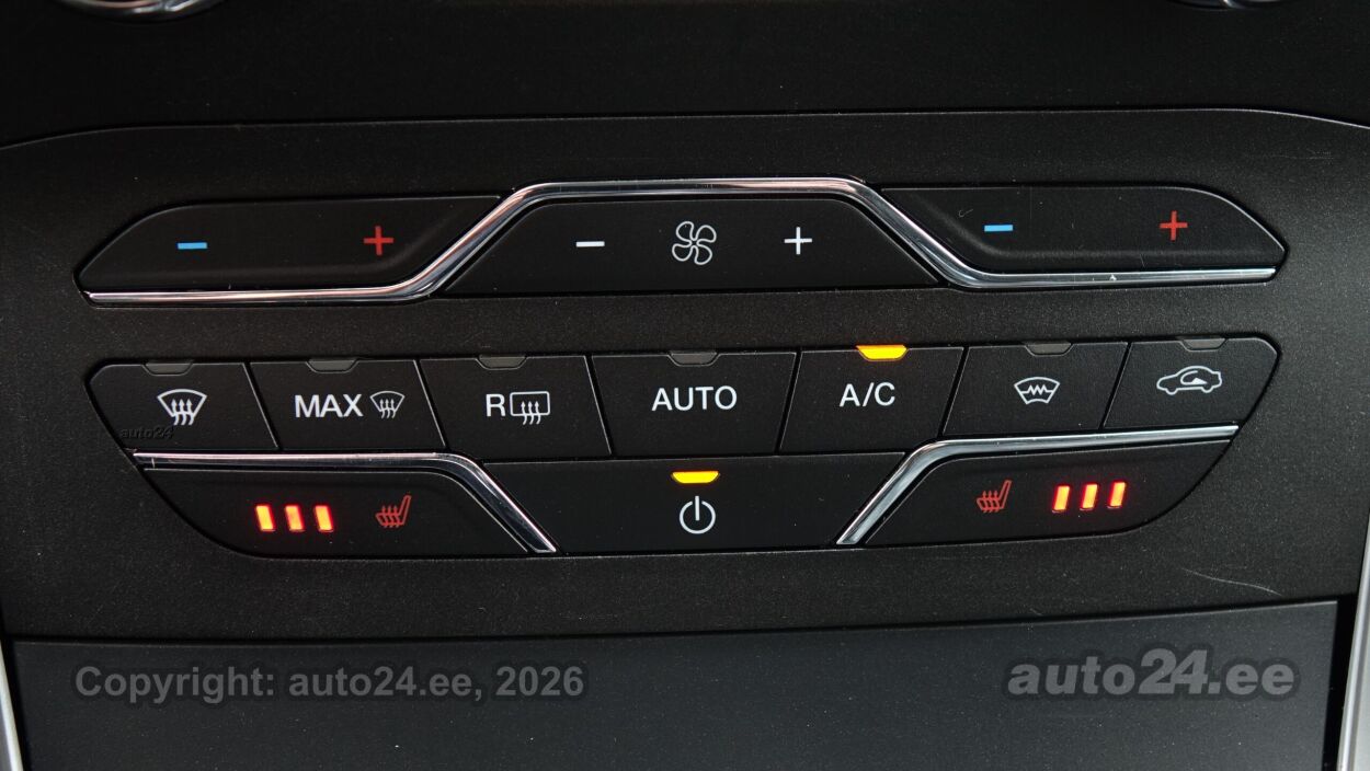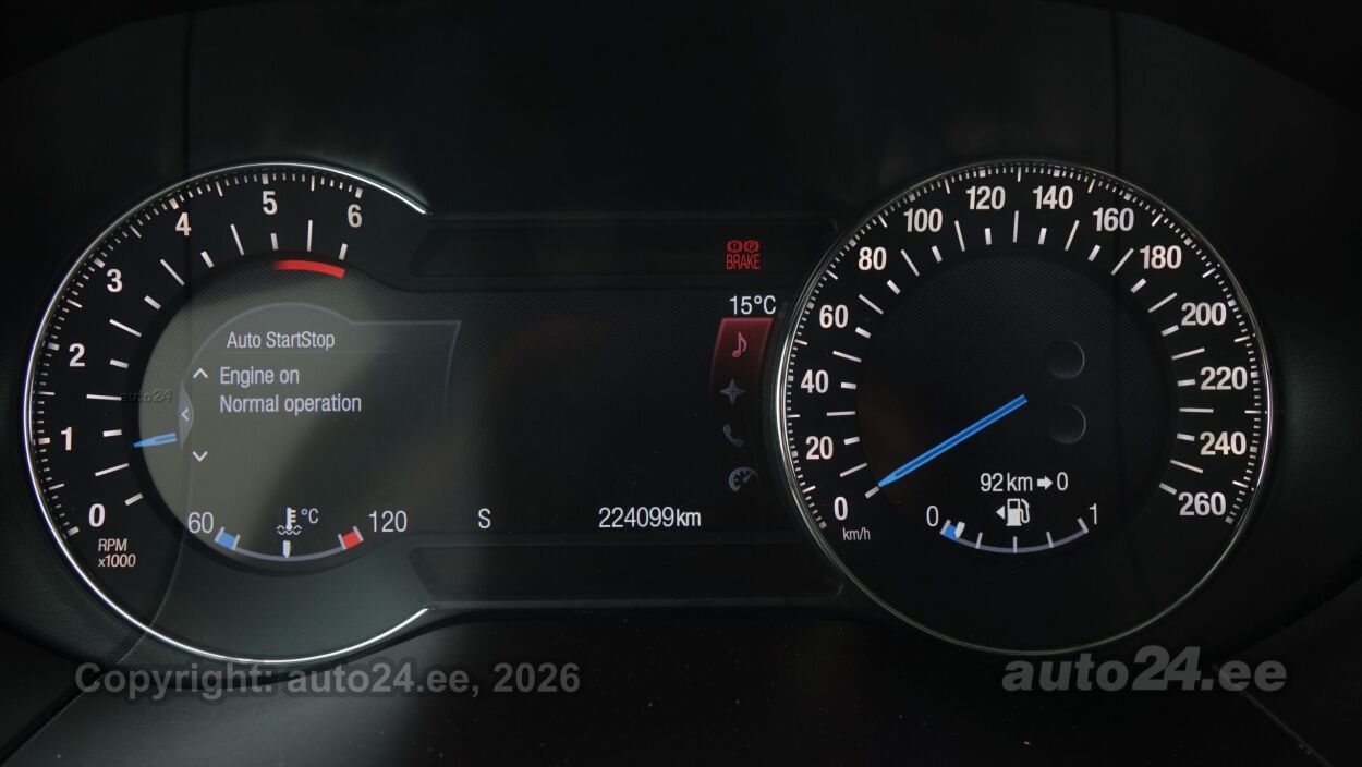 | Varustus: | kliimaautomaatik, roolivõimendi, kesklukustus (puldiga), ABS pidurid, turvapadi, elektrooniline seisupidur, immobilisaator, lisapidurituli, stabiilsuskontroll, pidurdusjõukontroll, sõiduraja vahetamise abisüsteem, liiklusmärkide tuvastus ja kuvamine, veojõukontroll, vihmasensor, ISOFIX lasteistme kinnitus (taga), kõrvalistuja turvapadja väljalülitamise võimalus, jahutusega kindalaegas, valgustuspakett, udutuled (eesmised, tagumine, kurvitule funktsiooniga), Xenon (lähituled, kaugtuled), LED (päevatuled, tagatuled), päevasõidutulede automaatne lülitus, suverehvid, valuveljed (18, originaal FORD TITANIUM), rehvirõhu kontrollsüsteem, reguleeritav roolisammas (kõrgus ja sügavus), multifunktsionaalne rool, nahkkattega rool, stereo (CD, USB pesaga, mälukaardi pesaga, originaal), kõlarid, Apple CarPlay, Android Auto, ekraan (ees), autokompuuter, käed vabad süsteem, iluliistud salongis, taskud esiistmete seljatugedes, sahtlid esiistmete all, jalamatid (tekstiilist), topsihoidjad (ees), nahkkattega käigukanginupp, must nahkpolster, 2x elektriliselt reguleeritavad istmed (1x mäludega), istmed reguleeritava kõrgusega (juhiiste, kõrvalistuja iste), 2x istmesoojendused, käetugi ees, Comfort istmed, elektrilised välispeeglid (soojendusega, kokkuklapitavad, mäluga), 4x elektrilised akende tõstukid, toonitud klaasid, püsikiiruse hoidja, 2x peeglid päikesesirmides (valgustusega), rulookardinad ustel, eraldi kliimaseade tagaistmetele, automaatselt tumenevad peeglid (sees), uste sisevalgustus, kohtvalgustid, parkimisandurid (ees, taga), Coming-/Leaving-Home funktsioon, digitaalne näidikutepaneel, võtmeta avamine, võtmeta käivitus, start-stopp süsteem, 12v pistikupesad, pakiruumi avamine elektriliselt (puldist), katusereelingud, elektrilise soojendusega esiklaas, tagaklaasi soojendus, aknapesupihustite sulatus, välistemperatuuri näidik, rehviparanduskomplekt, tagaklaasi puhasti |