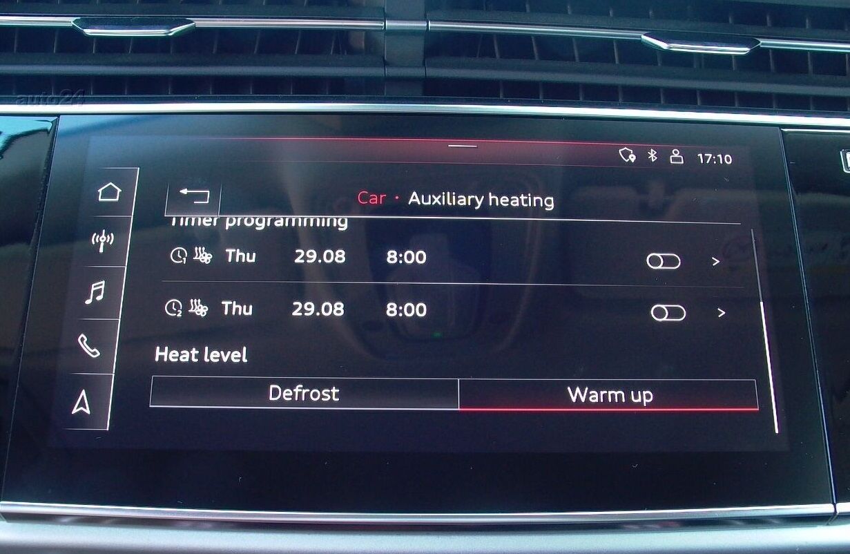 climate control, 4x power windows, electrically adjustable mirrors (heated mirrors, folding), automatic anti-dazzle mirrors (inner, outer), keyless start, cruise control (keep the distance to the vehicle in front), parking aid (front, rear), parking camera (360), electrical tailgate opening system (remote), puldiga/App ́iga programmeeritav engine pre-heating, myAudi app ́iga programmeeritav interior pre-heating, tinted windows, rear seat climate control, Coming-/Leaving-Home system, virtual cockpit, wireless charging