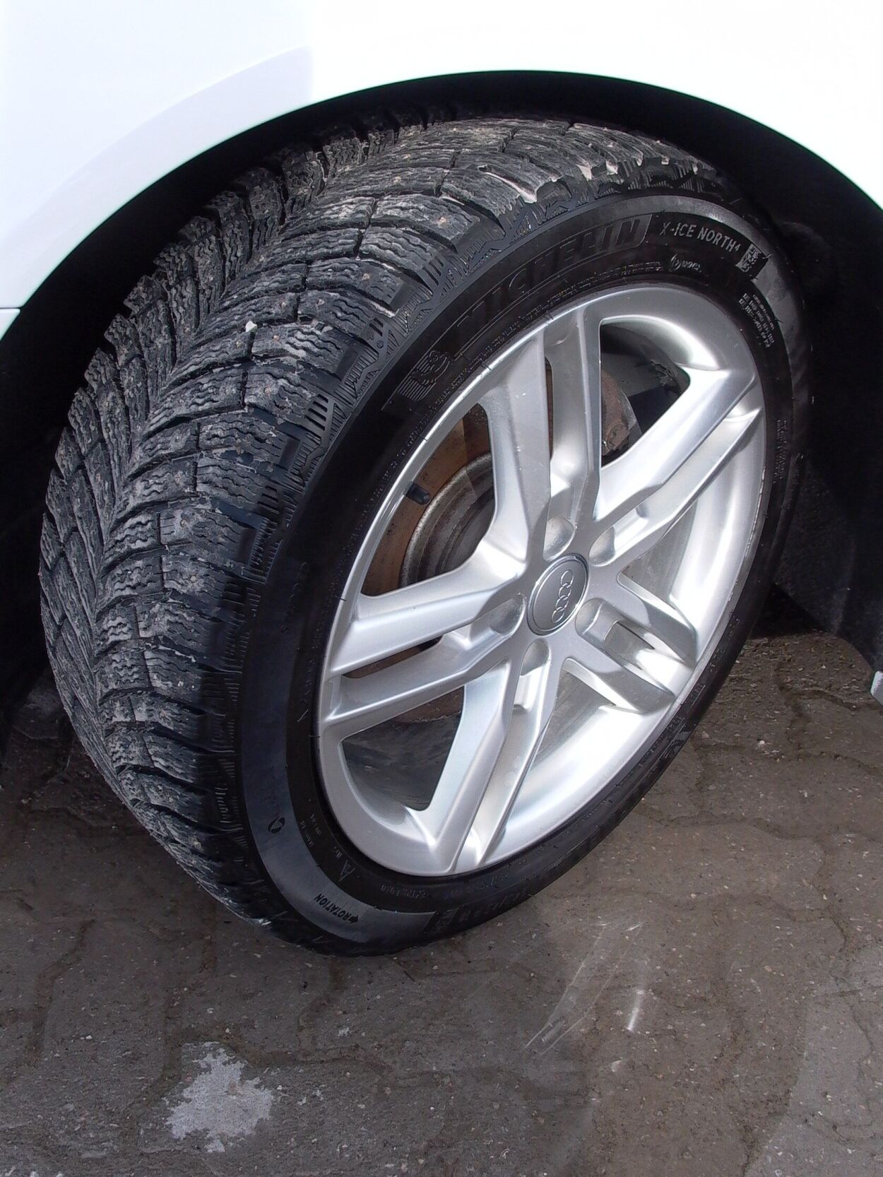 "Michelin X-Ice North 4" talverehvid (naastrehvid), valuveljed (R18, "Audi Sport/quattro GmbH wheels 5 twin-spoke design"), autoga antakse kaasa (suverehvid), rehvirõhu kontrollsüsteem