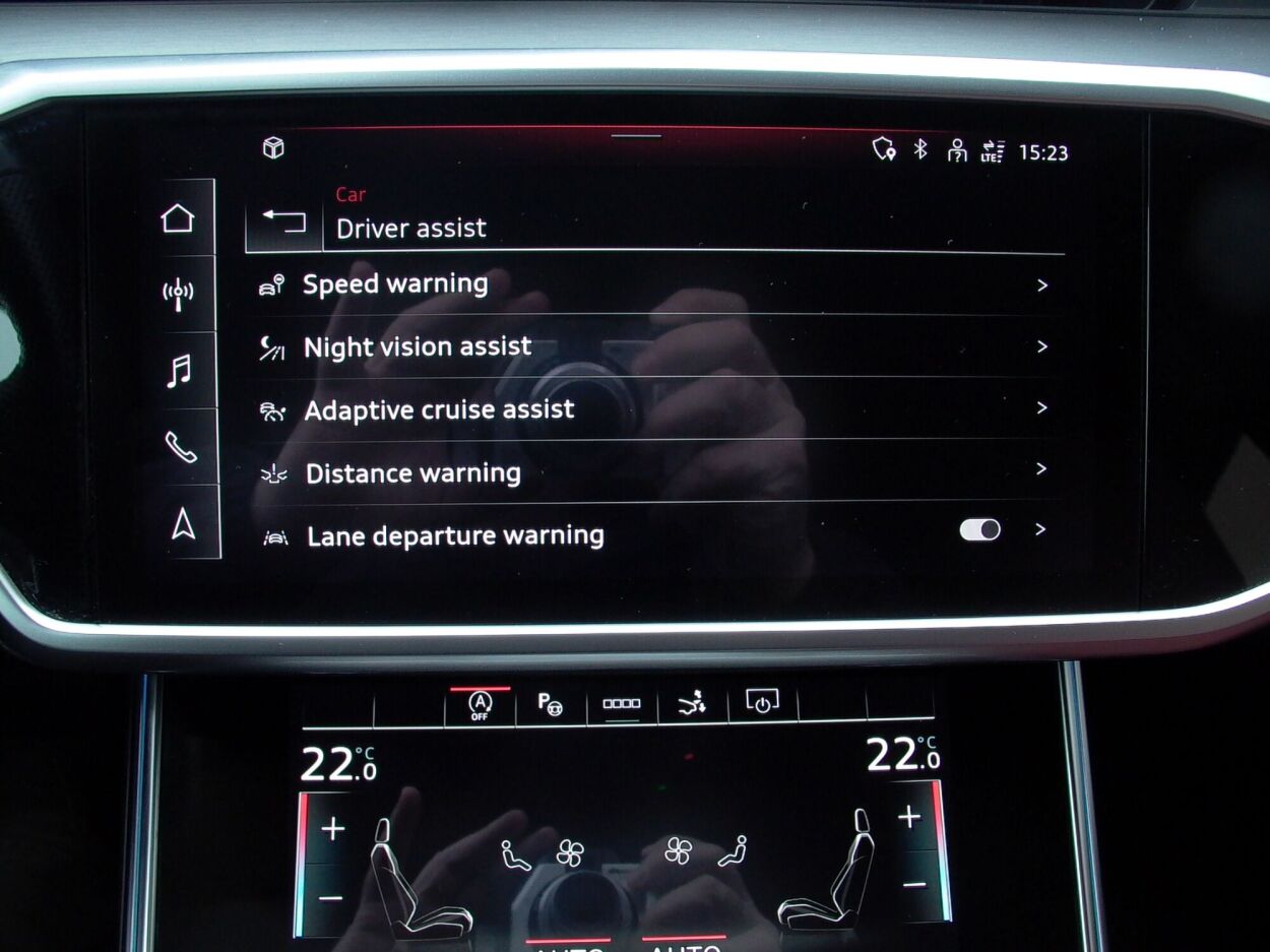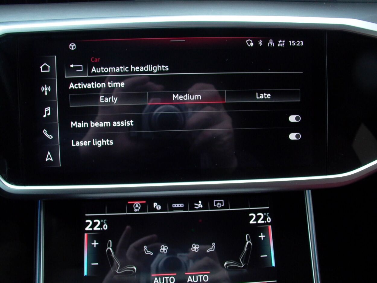 adjustable suspension, adaptive suspension, start-stop system, 12v power outlet, four wheel steering, "HD Matrix LED headlamps with Audi laser light", "Ambient Interor Lighting", "Assist package Park with remote park assist plus", "Night Vision assist" , Dynamic all-wheel steering,