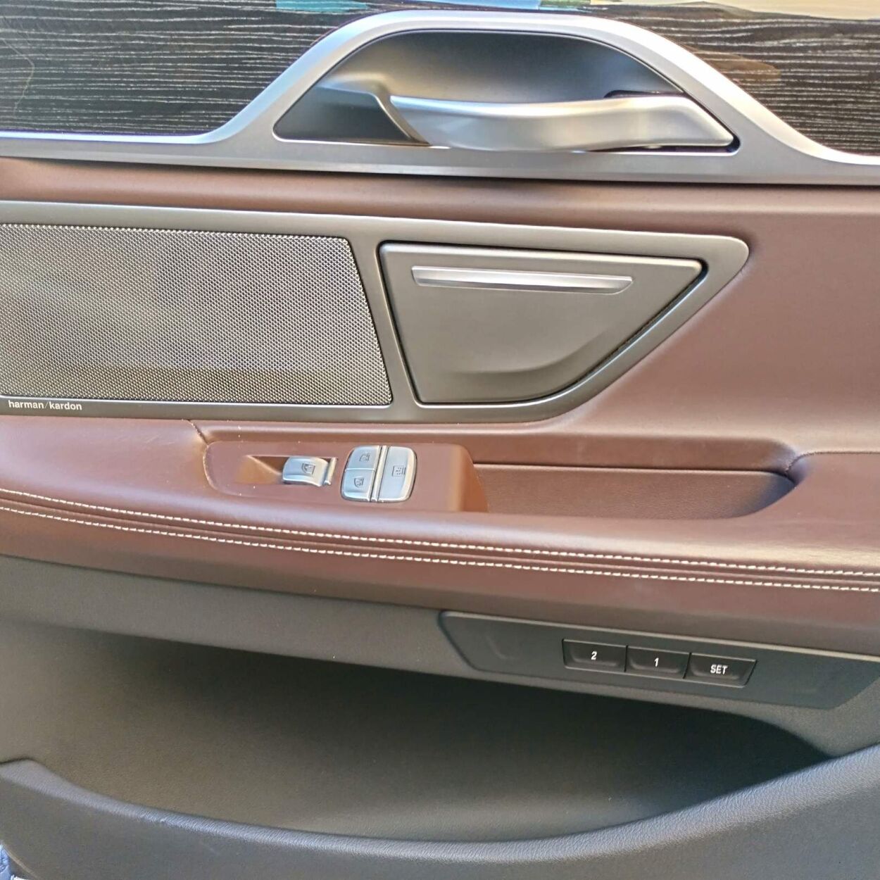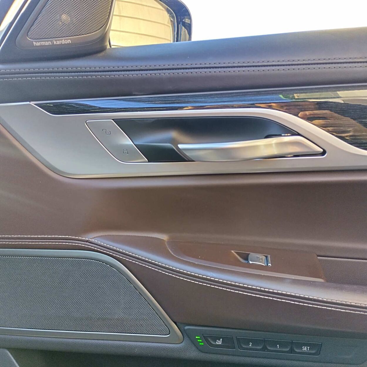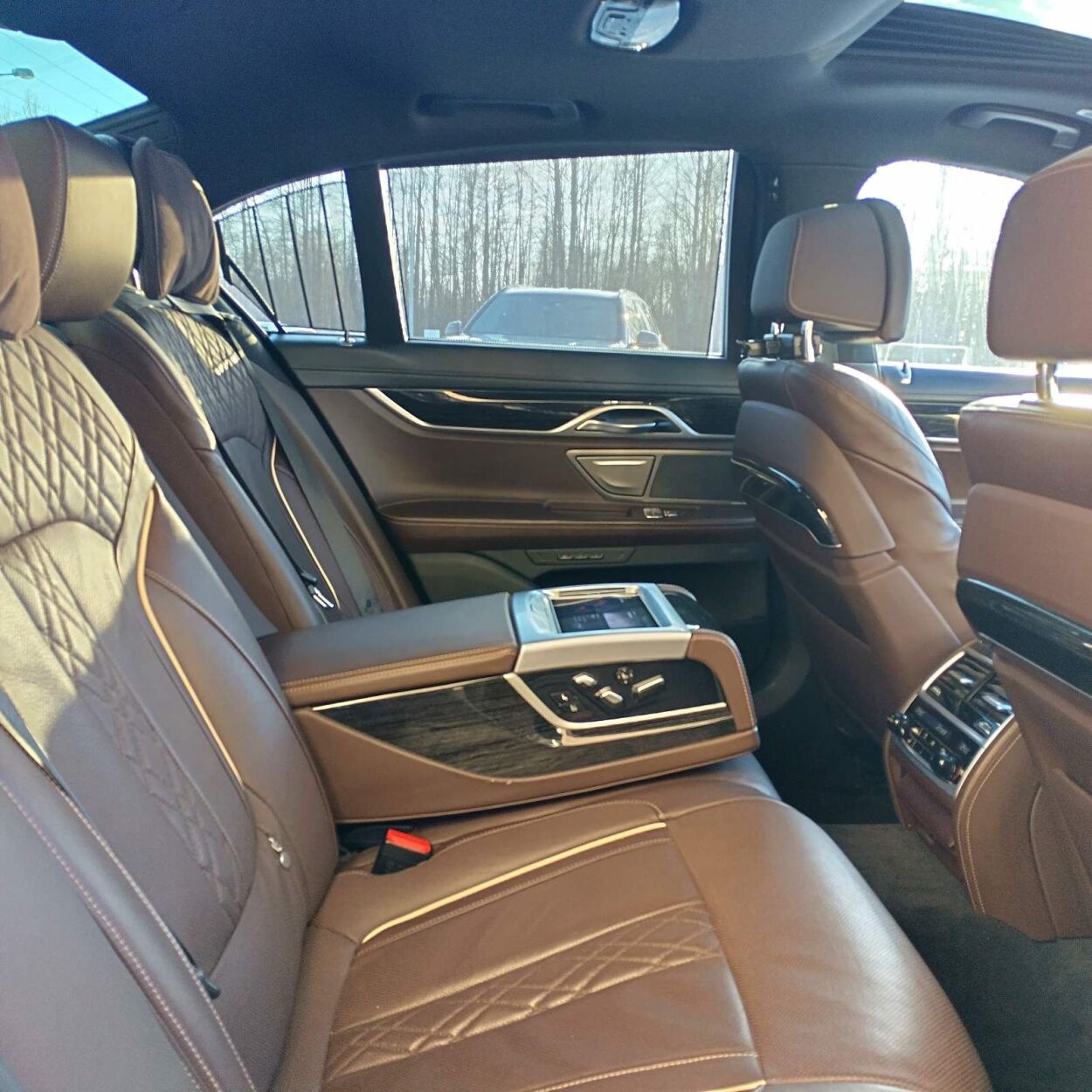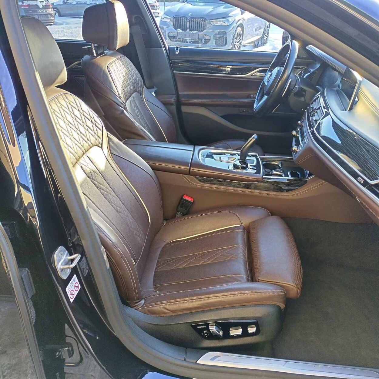 "Leather nappa enhanced/mokka" leather interior, 4x electrically adjustable seats (4x with memory), 4x seat heating, ventilated seats (on front seats), seats with massage function (on driver's seat, on passenger's seat), Comfort seats, leather steering wheel, racing steering wheel, multifunctional steering wheel, gear change from steering wheel, steering wheel adjustment (height and depth, electrical, with memory), black roof liner, front armrest (with compartment), rear armrest, cup holders, "Fine wood Fineline high gl. metal effect" fine laths inside saloon, interior mats (velour)