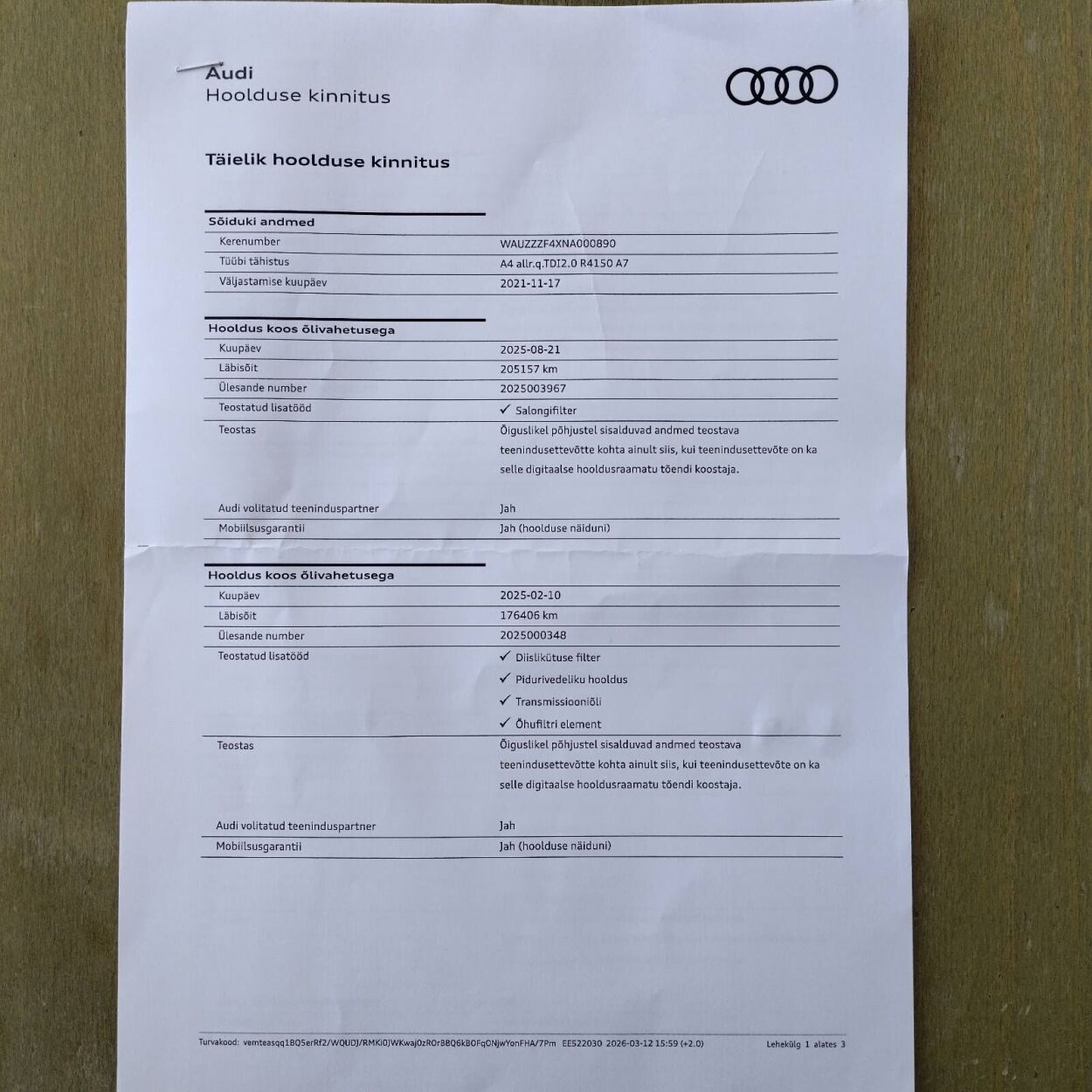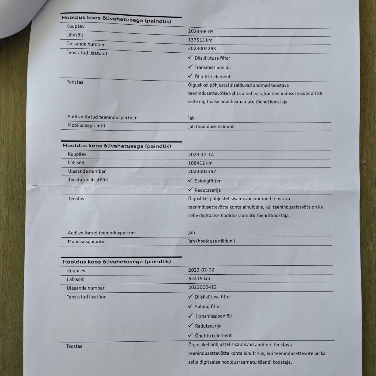 Assist package City", "Assist package Tour", Audi logo projektsioonid esiuste valgusel, Korrapärane margiesinduse ajalugu, Tesotatud tehniline kontroll ja müügieelne ettevalmistus, NB! Hooldus äsja tehtud