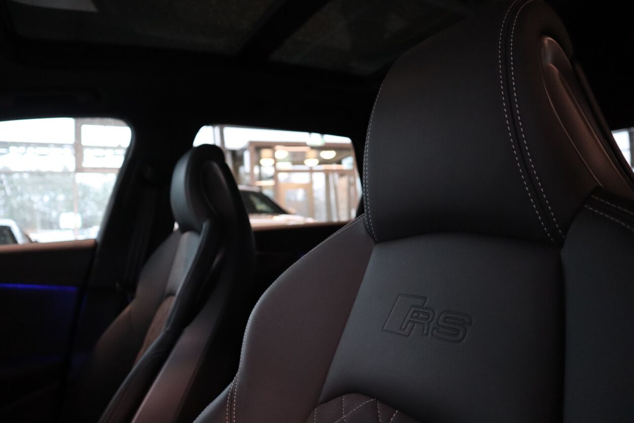 reguleeritav vedrustus (elektriliselt, jäikus), start-stopp süsteem, katusereelingud, 12v pistikupesad, rehviparanduskomplekt, välistemperatuuri näidik, tagaklaasi soojendus, pagasikate (automaatne), pagasi võrk pakiruumis, salongi ja pakiruumi eraldusvõrk, kaubakinnituse konksud, tagaklaasi puhasti, reisiarvesti, Assistentpakett - "Tour", sh "Audi active lane assist", adaptiivne püsikiirushoidja ja liiklusmärkide tuvastussüsteem, Disainipakett (eksterjöör) - "Black Appearance package Plus" - lisaks musta värvi Audi "rõngad" ning tähised auto eksterjööris, Esilaternad - "Matrix LED" tehnoloogiaga, dünaamilised suunatuled esi- ja tagalaternates, sh selektiivne kaugtulede valgusvihu reguleerimine, Valgustuspakett II "Ambient Lighting Plus" - "Ambient" ja kontuurvalgustus kogu autos (võimalik valida 30 värvitooni vahel), Klaasid alates B-piilarist tahapoole tumendatud ("Privacy Glass"), Katuseluuk "Panoramic sunroof", 2-osaline toonitud turvaklaasist, esimene osa elektriliselt juhitav, sh päikeseruloo kogu luugi ulatuses, Istmed - esiistmete elektriline reguleerimise võimalus (juhiste mäluga), sh elektriliselt reguleeritavad nimmetoed, Istmed - pneumaatiliselt reguleeritav nimmetugi koos massaažifunktisooniga, Istmed - elektrilise soojendusega esi- ja tagaistmed, Telefon ja kommunikatsioon - "Audi phone box" koos LTE-toega, universaalne telefonialus käetoes esiistmete vahel võimaldamaks telefonikõnesid läbi "Bluetooth" ühenduse, Kõlarisüsteem "Bang & Olufsen Premium Sound System 3D kõlaga" - 19 kõlarit, 16 kanaliga helivõimendi koguväljundvõimsusega 755 vatti, Tagumises keskkonsoolis kaks USB-A laadimispesa, Kliimaseade "Deluxe" - kolme tsooniline, elektroonilise reguleerimisega eraldi juhile ja kaassõitjale ning salongi tagaosale, Püsikiirushoidja - adaptiivne "Audi adaptive cruise control", Peeglid - välispeeglid elektriliselt kokkuklapitavad ja automaatselt tumenevad ning mälu-funktsiooniga, Pagasiruumi luugi elektriline avamine võtmest, salongist või luugilt ja sulgemine luugilt, Vedrustus - "RS Sports Plus" vedrustus koos vedrustuse jäikuse seadistamise võimalusega, Pikendatud tehasegarantii - 5 aastat (2 aastat + 3 aastat lisagarantiid), läbisõiduni 100 000 km
