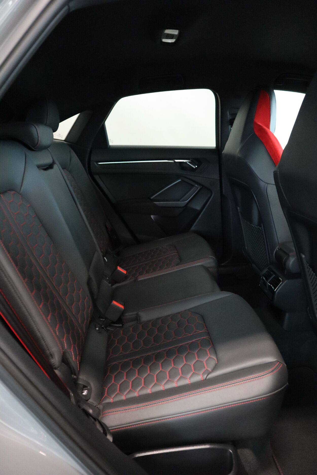 reguleeritav vedrustus (elektriliselt, jäikus), start-stopp süsteem, 12v pistikupesad, välistemperatuuri näidik, tagaklaasi soojendus, pagasi võrk pakiruumis, kaubakinnituse konksud, tagaklaasi puhasti, reisiarvesti, Istmed - RS sportistmed, koos Fine Nappa nahkpolstriga, kärjekujuliste õmblustega, sh nahkpolstriga käetugi ning RS logod seljatugedes, "Audi connect Plus" teenused - lisaks "connect" (IT2) teenustele - Google Earth navigatsioon, hääljuhtimise veebilaiendus, laiendatud 3D linnakuva, veebiraadio (kehtivus 3 aastat), "Audi virtual cockpit Plus" - täisdigitaalne 12,3 tolline näidikute paneel armatuurlauas, kolm erinevat kujundust (classic, dynamic ja sport), lisa MMI funktsioonid, "Convenience key" - võtmeta käivitamis-, lukustamis- ja autoriseerimissüsteem, Assistentsüsteemide pakett, sh "Adaptive cruise control" ja "Audi pre sense FRONT", Dekoorliistud interjööris - "Carbon Twill", Disainipakett (eksterjöör) - "Audi exclusive black" - musta värvi elemendid (iluvõre ja akende äärised) auto eksterjööris, RS Q3 katusereelingud musta värvi, Esilaternad Matrix LED-tehnoloogiaga ja LED-tehnoloogiaga tagatuled, sh dünaamilised suunatuled esi- ja tagalaternates, Kliimaseade "Deluxe" - 2-tsooniline automaatne kliimaseade koos päikesesensoriga ning eraldi reguleerimisega juhile ja kaassõitjale, Kõlarisüsteem "Bang & Olufsen Premium Sound System 3D kõlaga" (15 kõlarit, 16 kanaliga helivõimendi koguväljundvõimsusega 680 vatti), Laiendatud viimistluselementide pakett salongis - punaste õmblustega turvavöö ääred, rooliratas "Alcantara", käigukang + ümbris "Alcantara", mustad jalamatid koos RS kirjadega, Liistud - Audi rõngad ning märgid esivõres ja tagaluugil musta optikaga, Valgustuspakett II - "Contour / Ambient lighting" - "Ambient" ja kontuurvalgustus kogu autos (võimalik valida 30 värvitooni vahel), Vedrustus - vedrustuse mugavuse seadistamise võimalus (1JP) koos "Audi drive select (2H6), Väljalaskesüsteem - "RS Sports" väljalase, musta optikaga summutiotsad